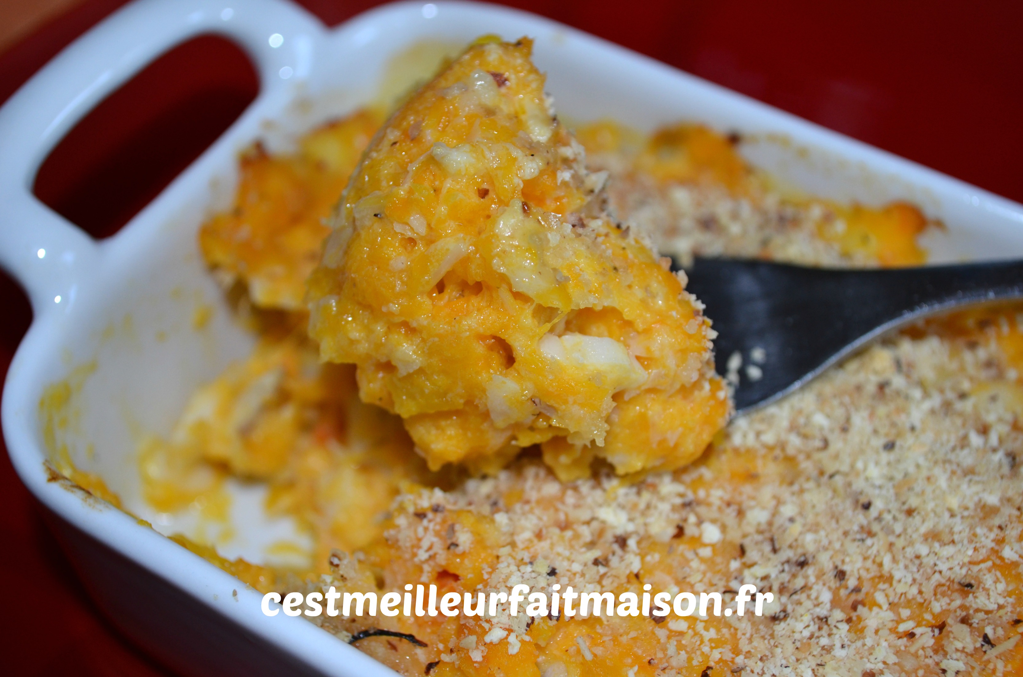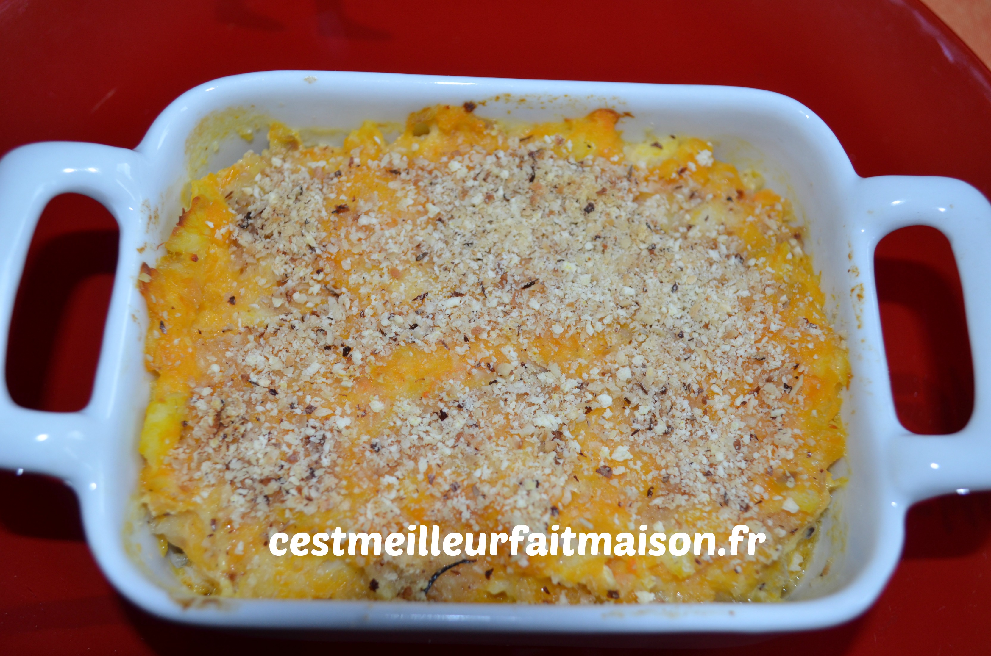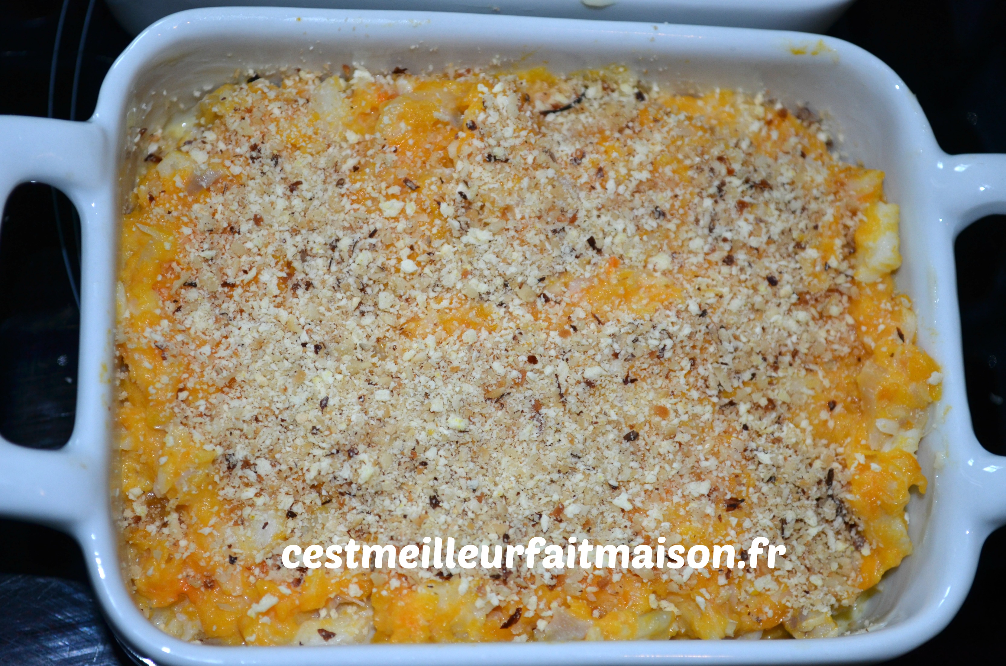Bien que je ne sois pas fana de plat de poisson, j’en cuisine tout de même de temps en temps. Alors quand je trouve une recette qui me plait je la garde 🙂 Cette brandade est une recette Picard améliorée par Valérie de C’est ma fournée! C’est une façon originale de manger du poisson. Je l’ai faite plusieurs fois et la seule chose que j’ai changé c’est la quantité de potiron. Je mets 600 g au lieu de 400 g.