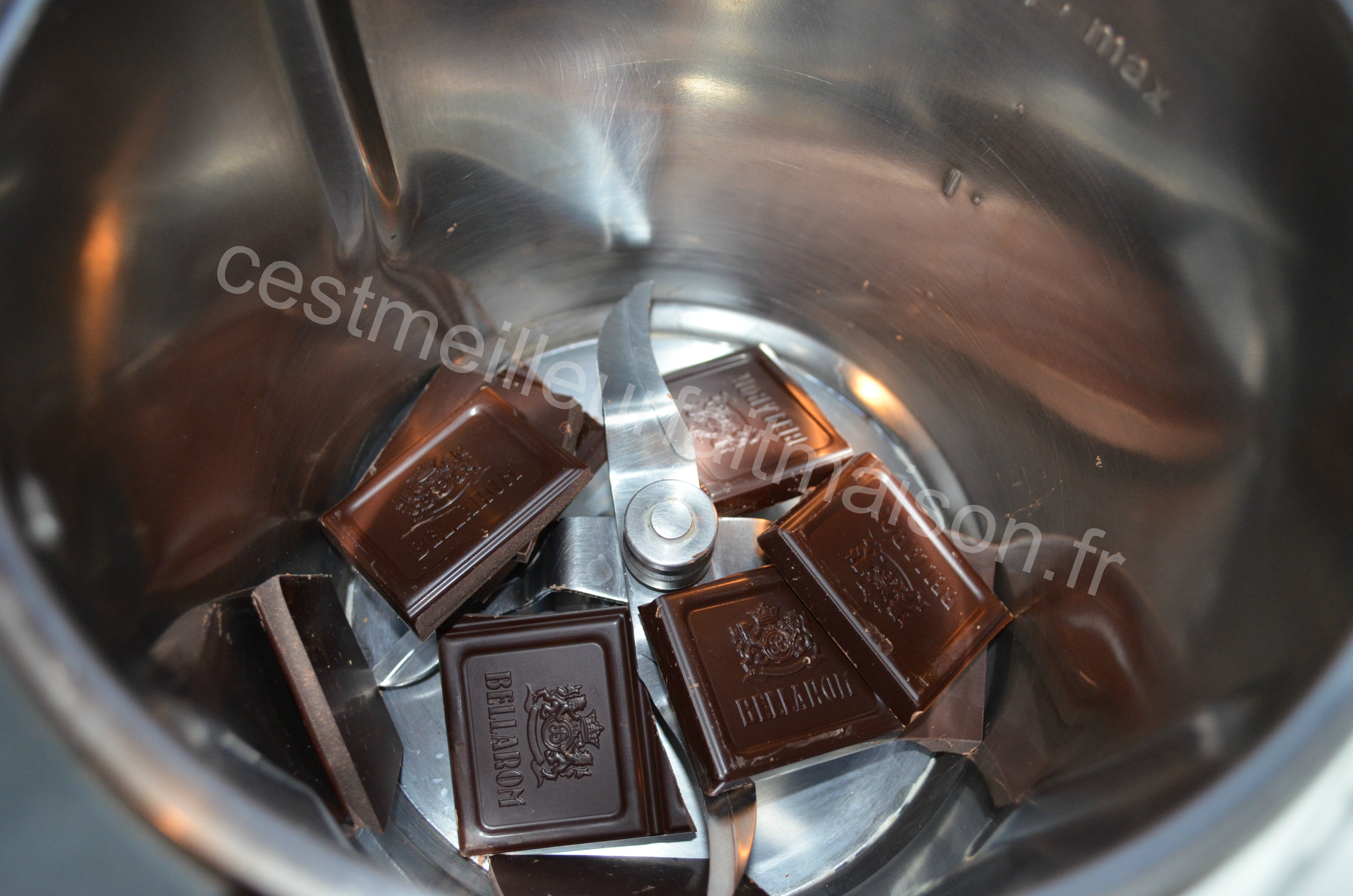 1- Mettre les morceaux de chocolat dans le bol et mixer 10 sec Vitesse 6.