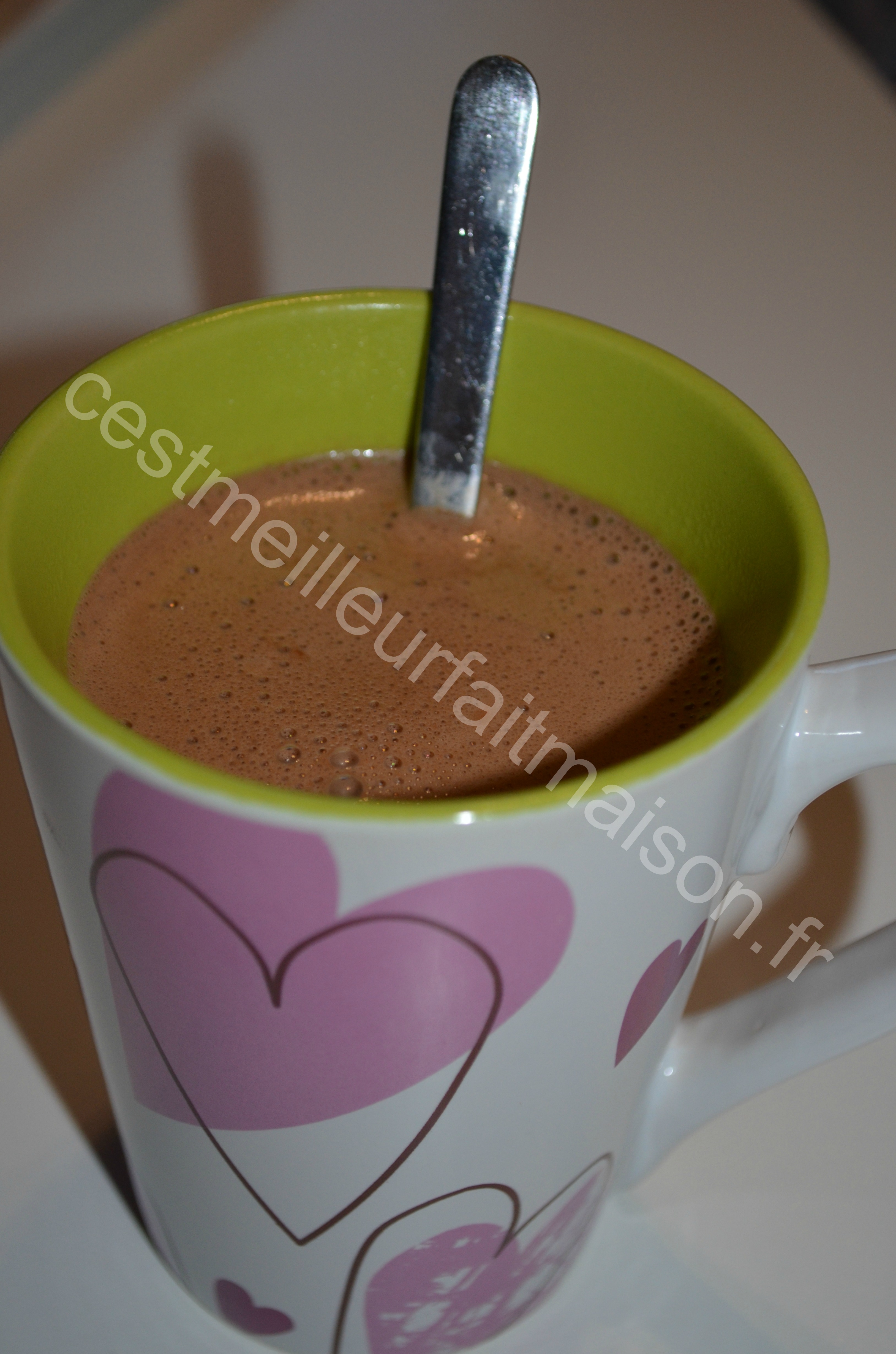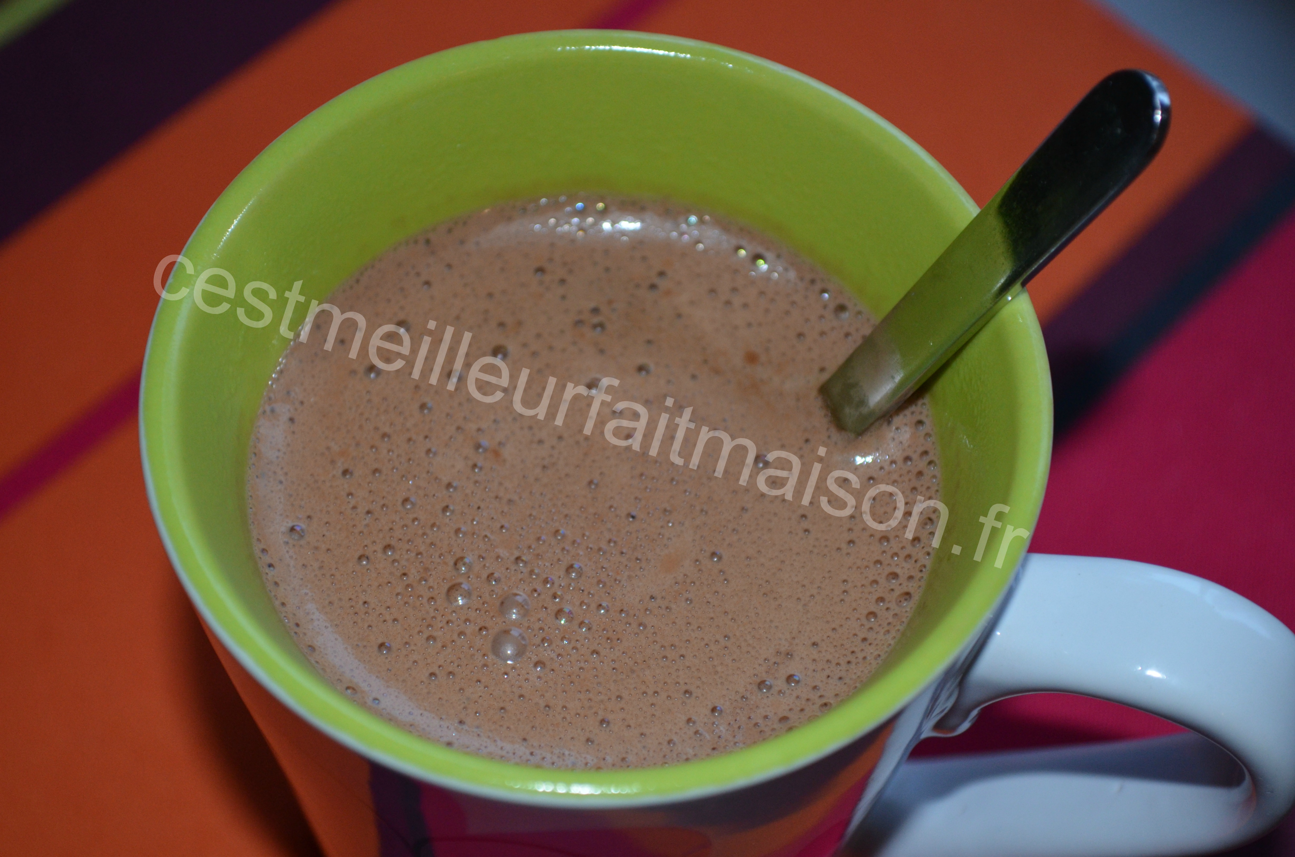 Le dimanche, pour le petit déjeuner, j’aime bien faire ce chocolat. Il est épais, un peu comme le chocolat espagnol. Je me suis inspirée d’une recette Thermomix du livre “A table avec Thermomix”. J’ai fait quelques modifications mais surtout je ne mets pas de sucre en poudre. C’est une affaire de goût. Vous verrez si vous préférez en rajouter.