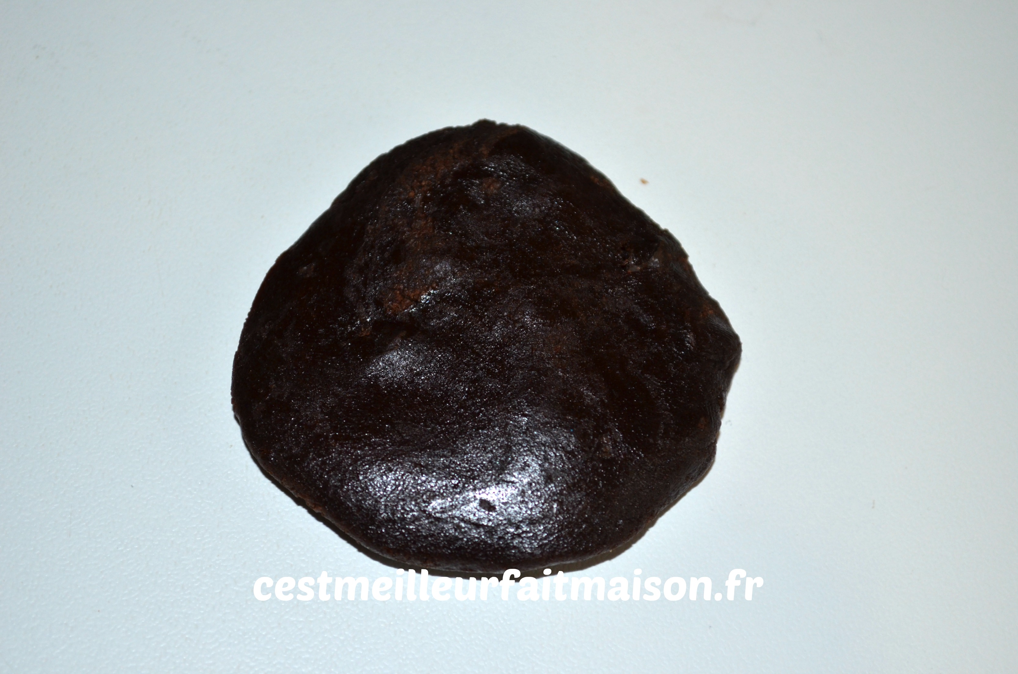 10- Aplatir les boules de 20 g et refermer les cookies. Bien sceller pour éviter que le caramel ne s’échappe mais ce n’est pas évident 🙂