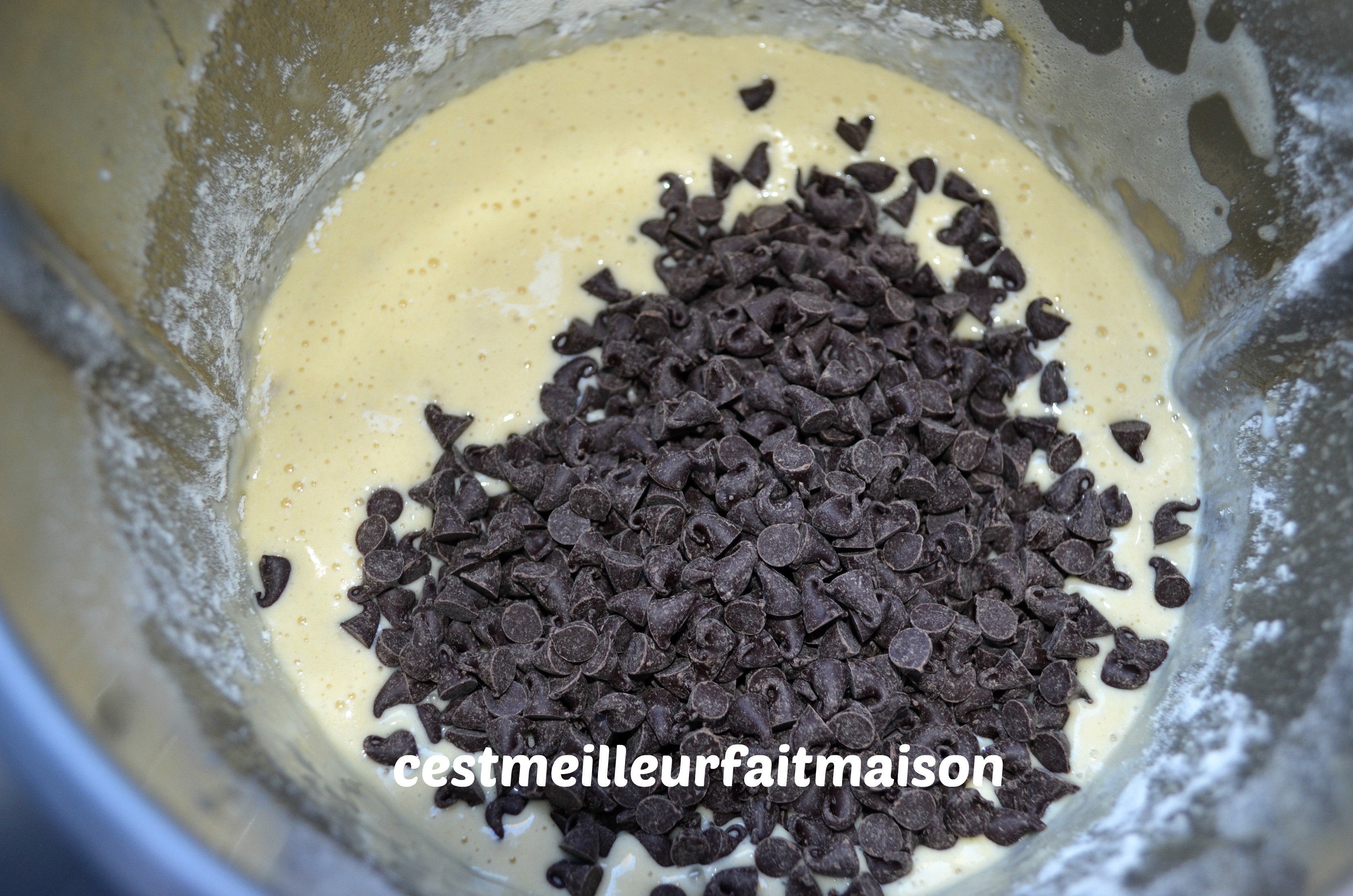 5- Ajouter les pépites de chocolat et mélanger 10 sec/Sens Inverse/Vit 3.
