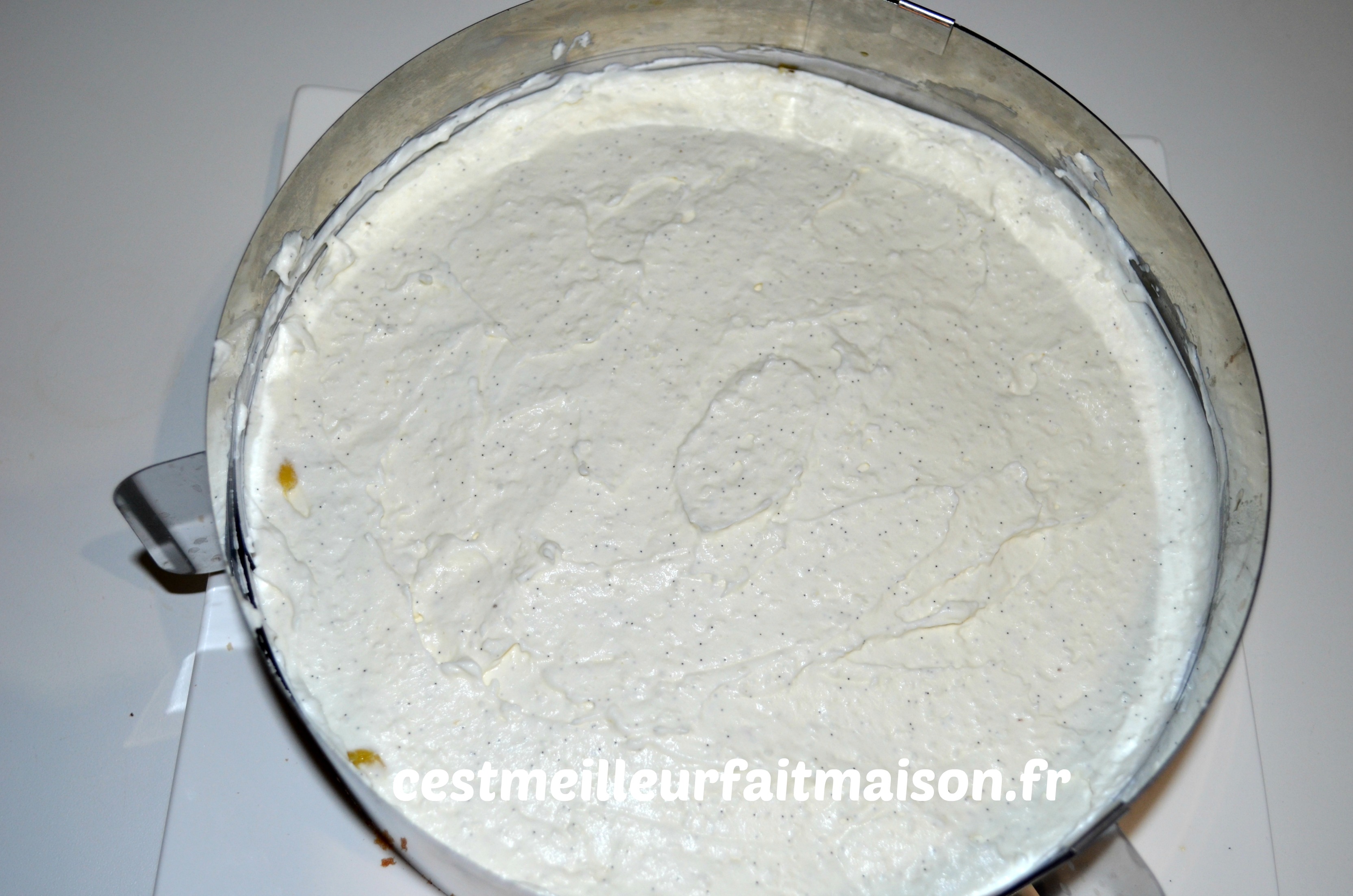 Mettre au réfrigérateur pour plusieurs heures (au moins 4 heures). A chaque fois que j’ai fait ce gâteau, il a passé la nuit au réfrigérateur.