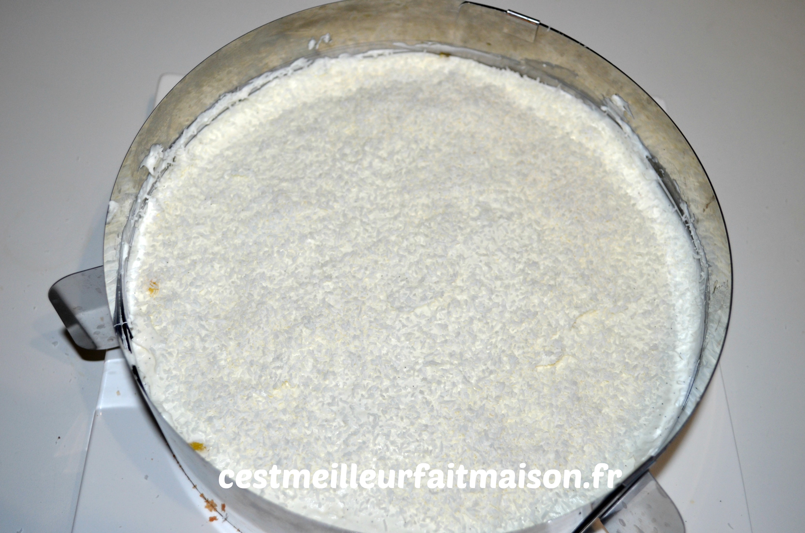 Verser la crème, lisser et saupoudrer de noix de coco.