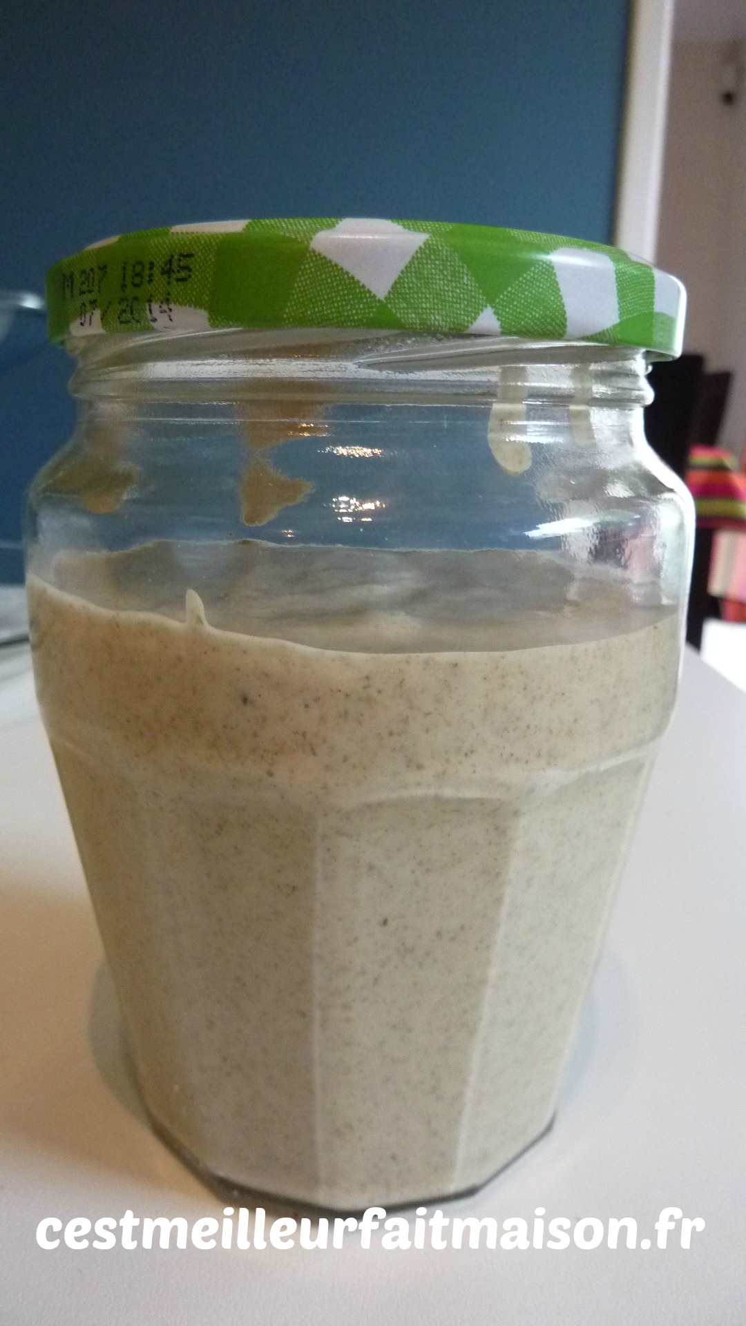 Lorsque le levain est prêt, on le conserve dans un bocal sur lequel on pose le couvercle sans le fermer et on laisse le bocal à température ambiante. On le ferme hermétiquement si on ne s’en sert pas pendant longtemps et on le met au réfrigérateur.