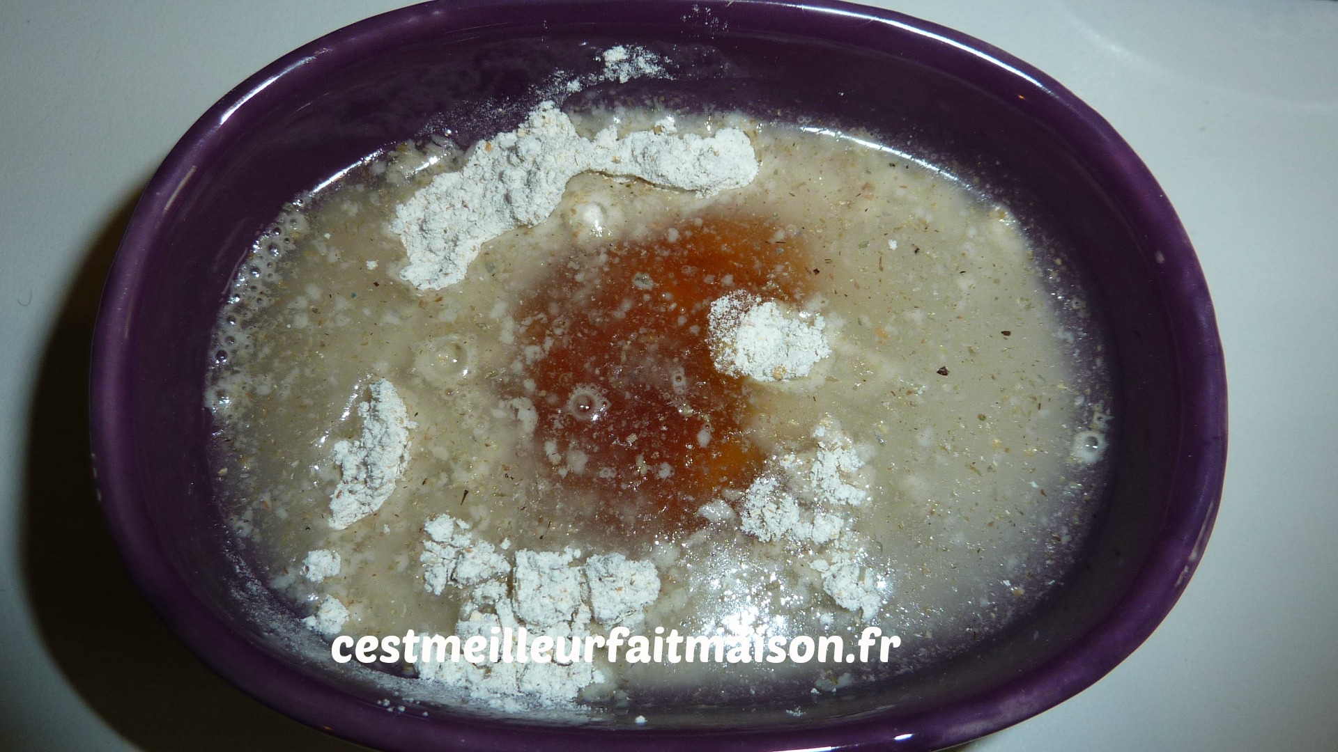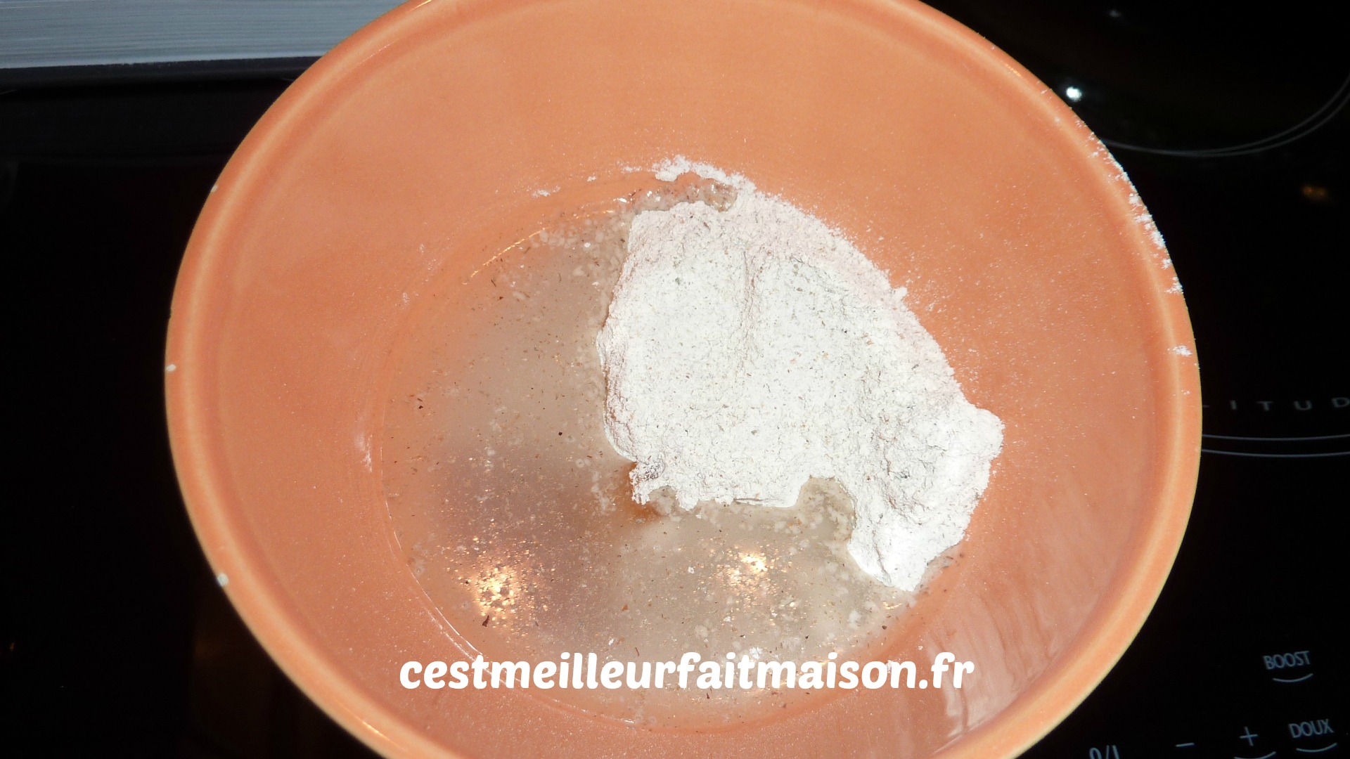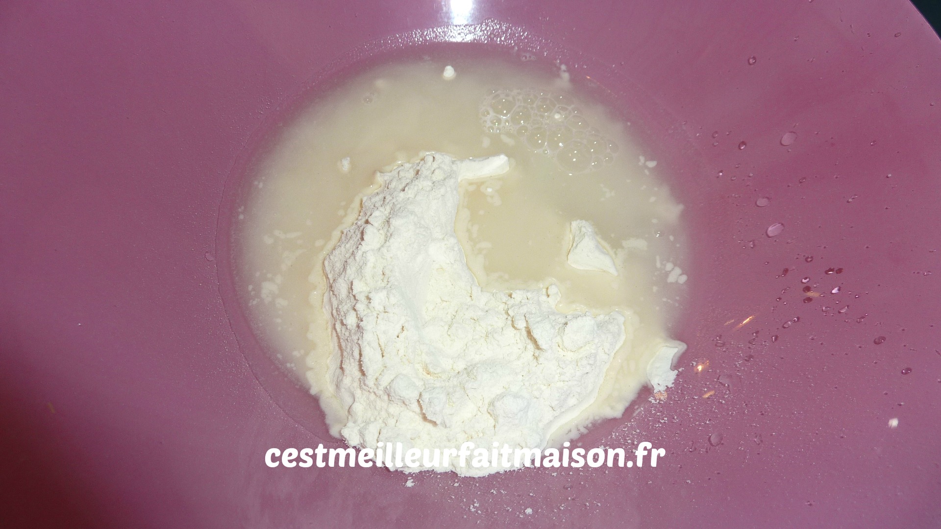 4ème jour: Mélanger 100 g de farine et 100 g d’eau. Ajouter à la préparation et laisser encore 24 heures.