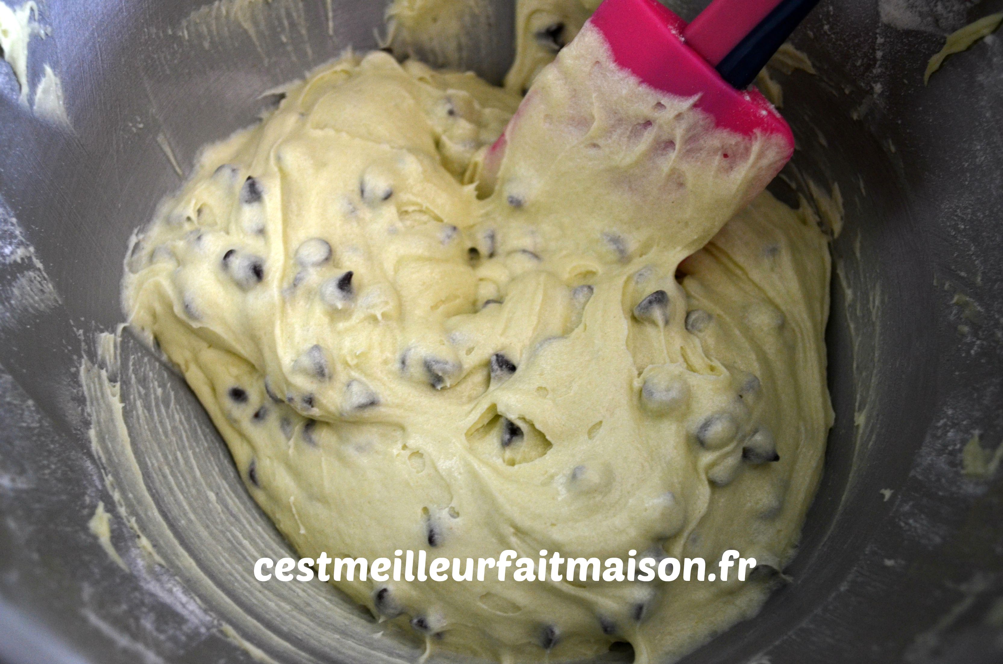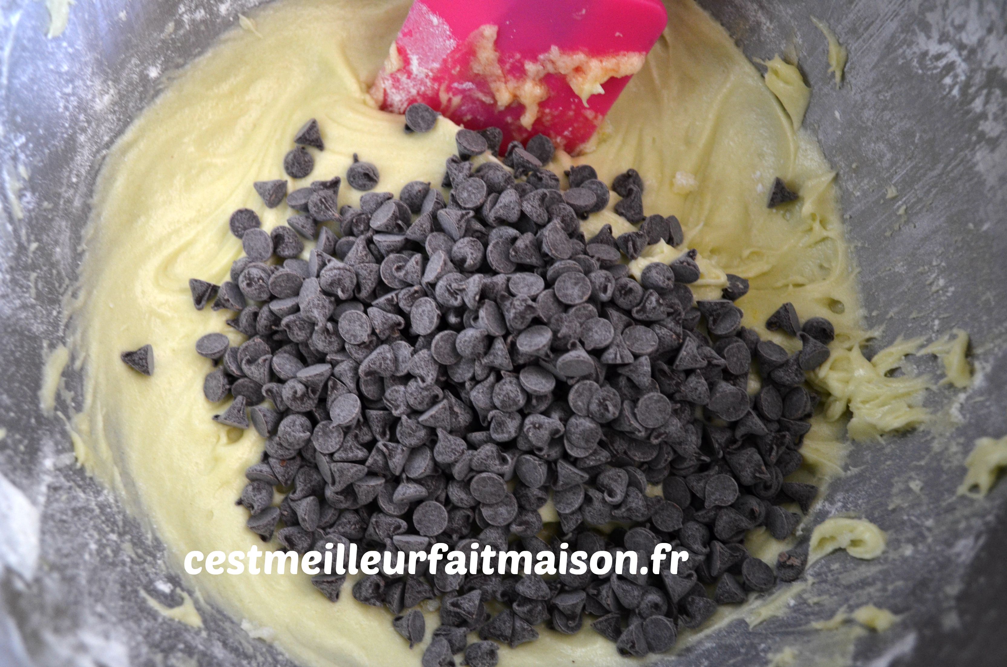 5- Ajouter les pépites de chocolat et mélanger à l’aide d’une spatule.