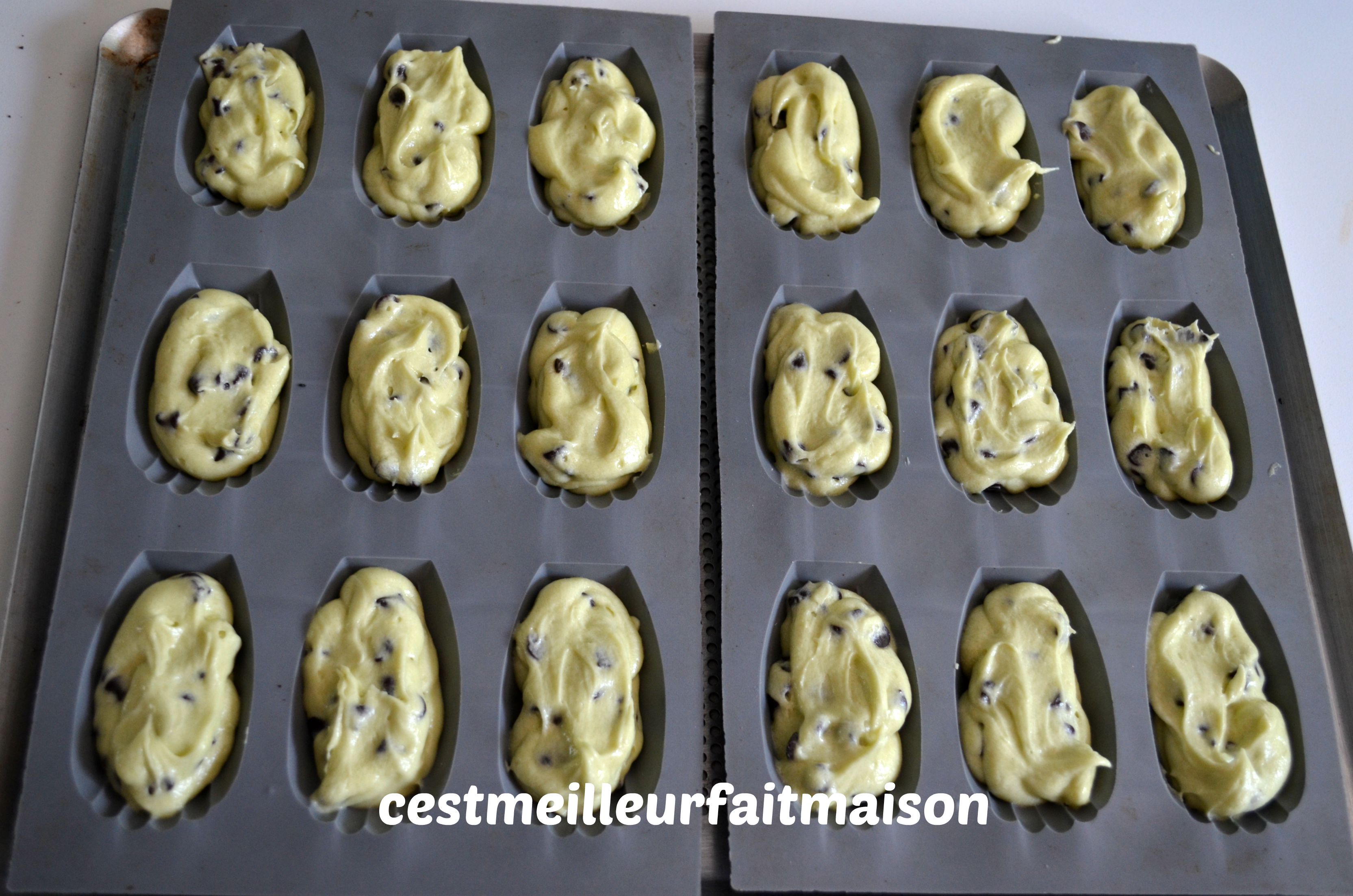 7- Remplir les empreintes à madeleines au 3/4.