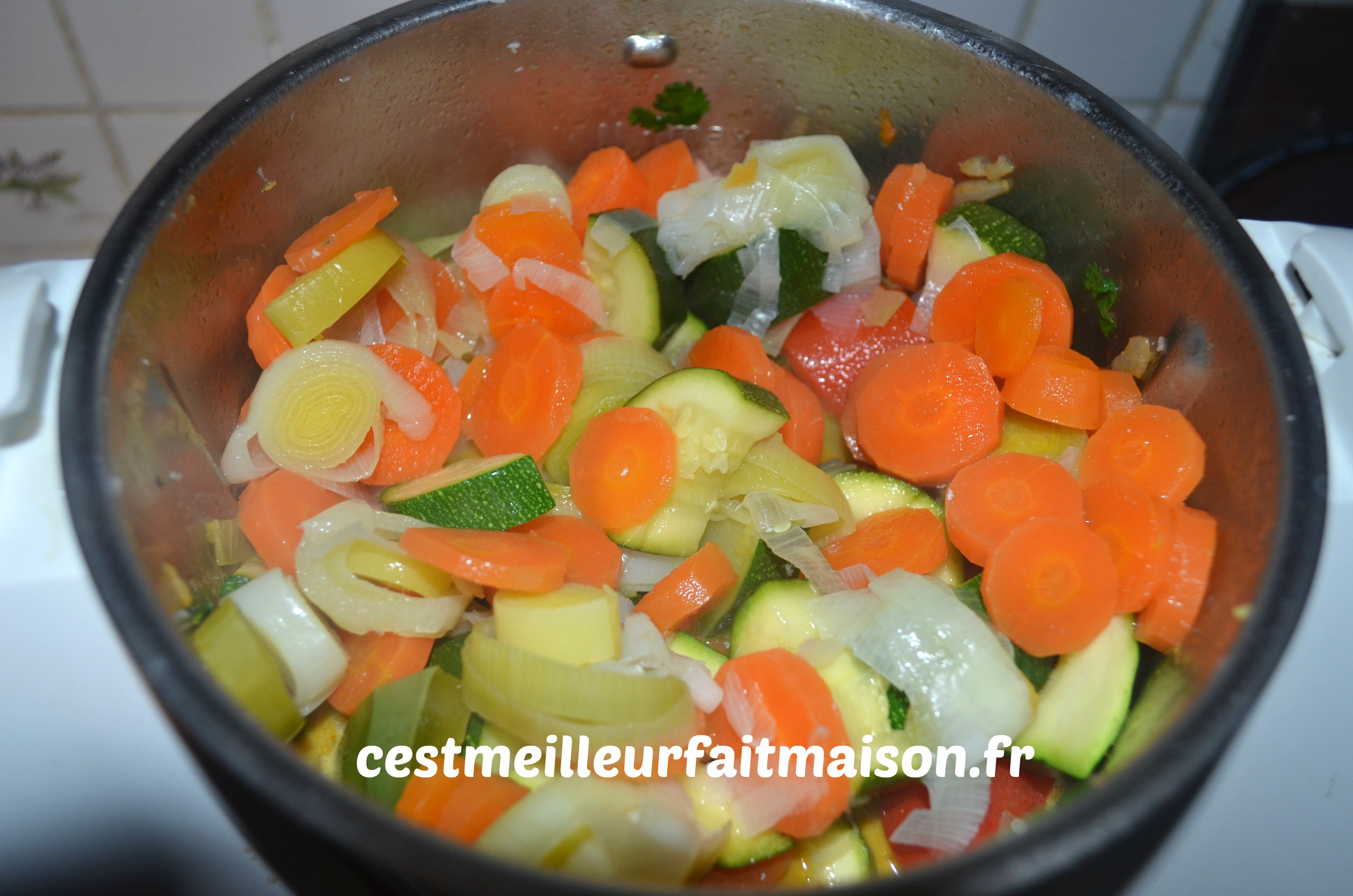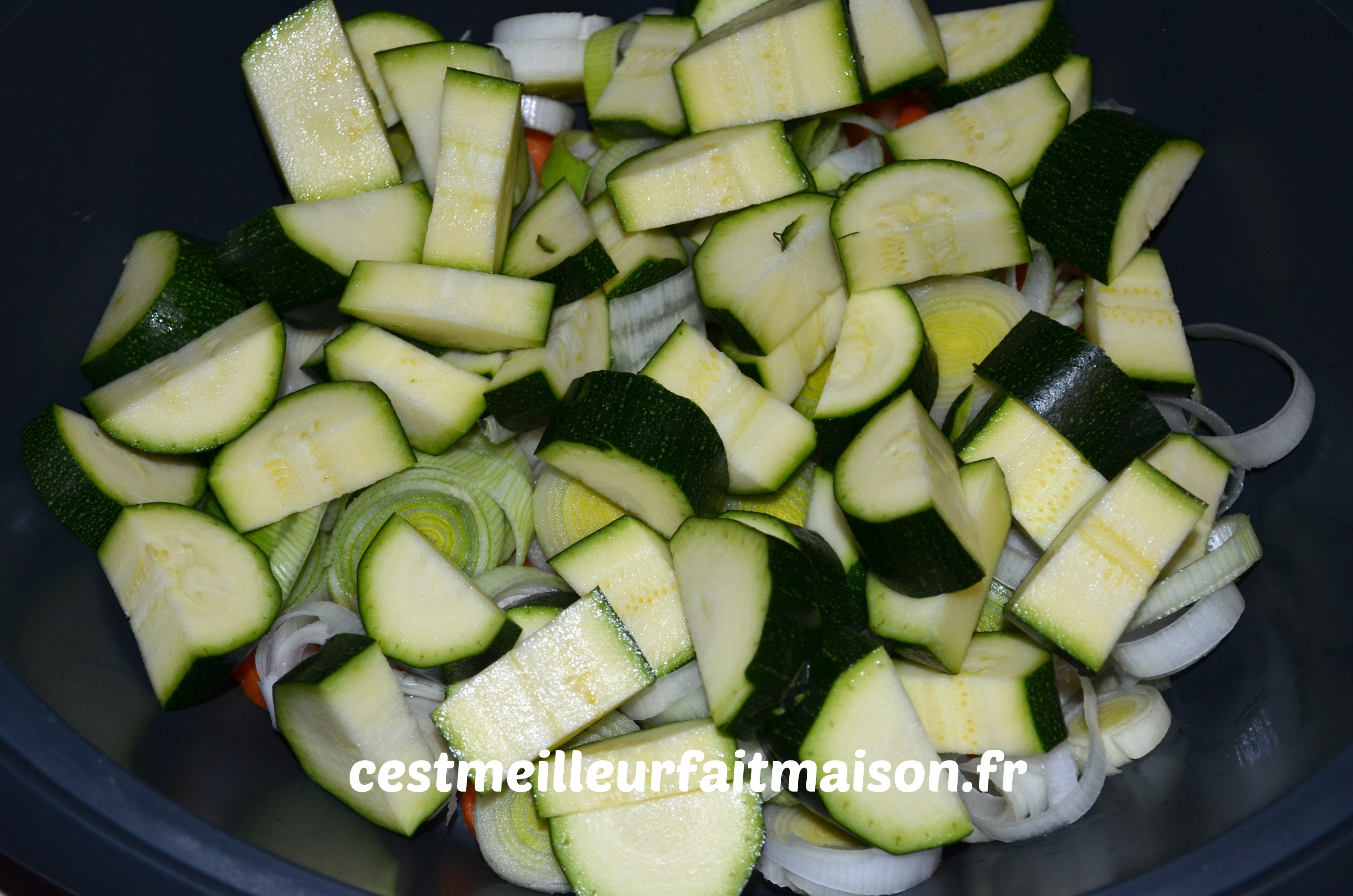 1- Couper les carottes et le poireau en rondelles et le reste des légumes en morceaux. Les mettre dans le Varoma.