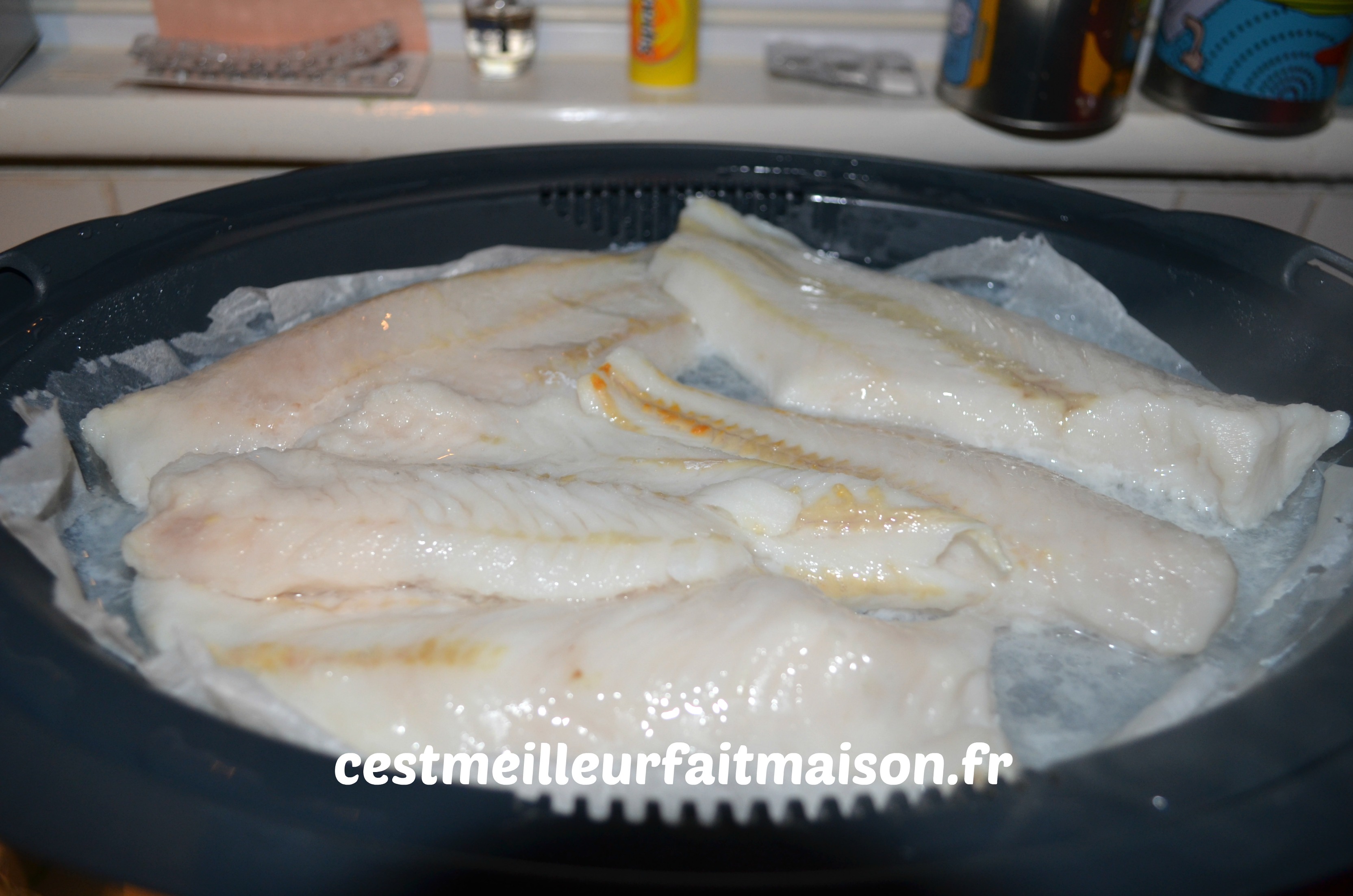 J’ai cuisiné du merlu parce que c’est ce que j’avais dans mon congélateur mais tout autre poisson blanc s’adaptera très bien.