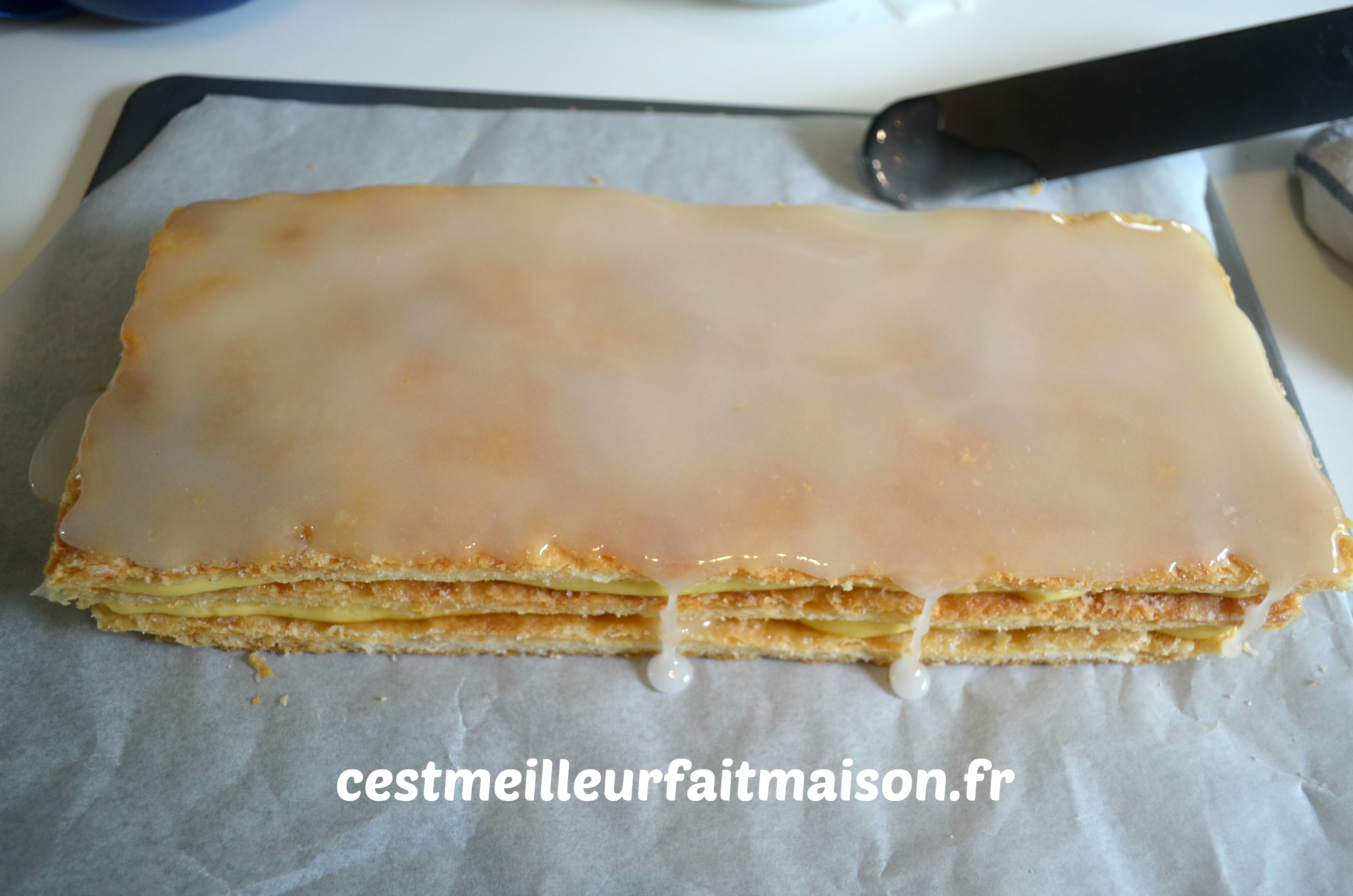 7- Verser le fondant sur le millefeuille. Le lisser avec une spatule.