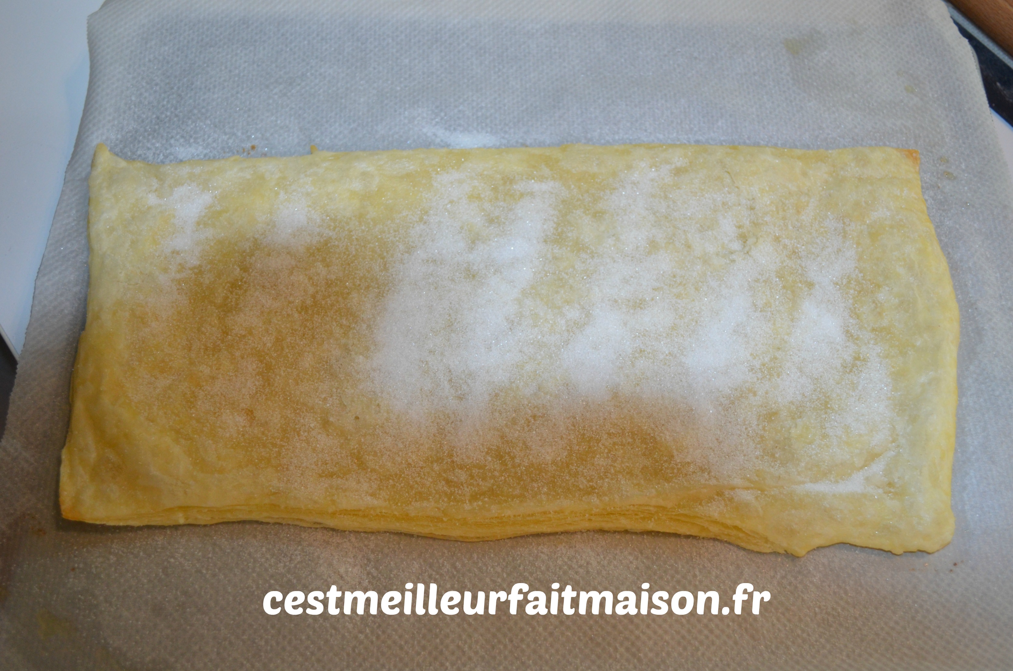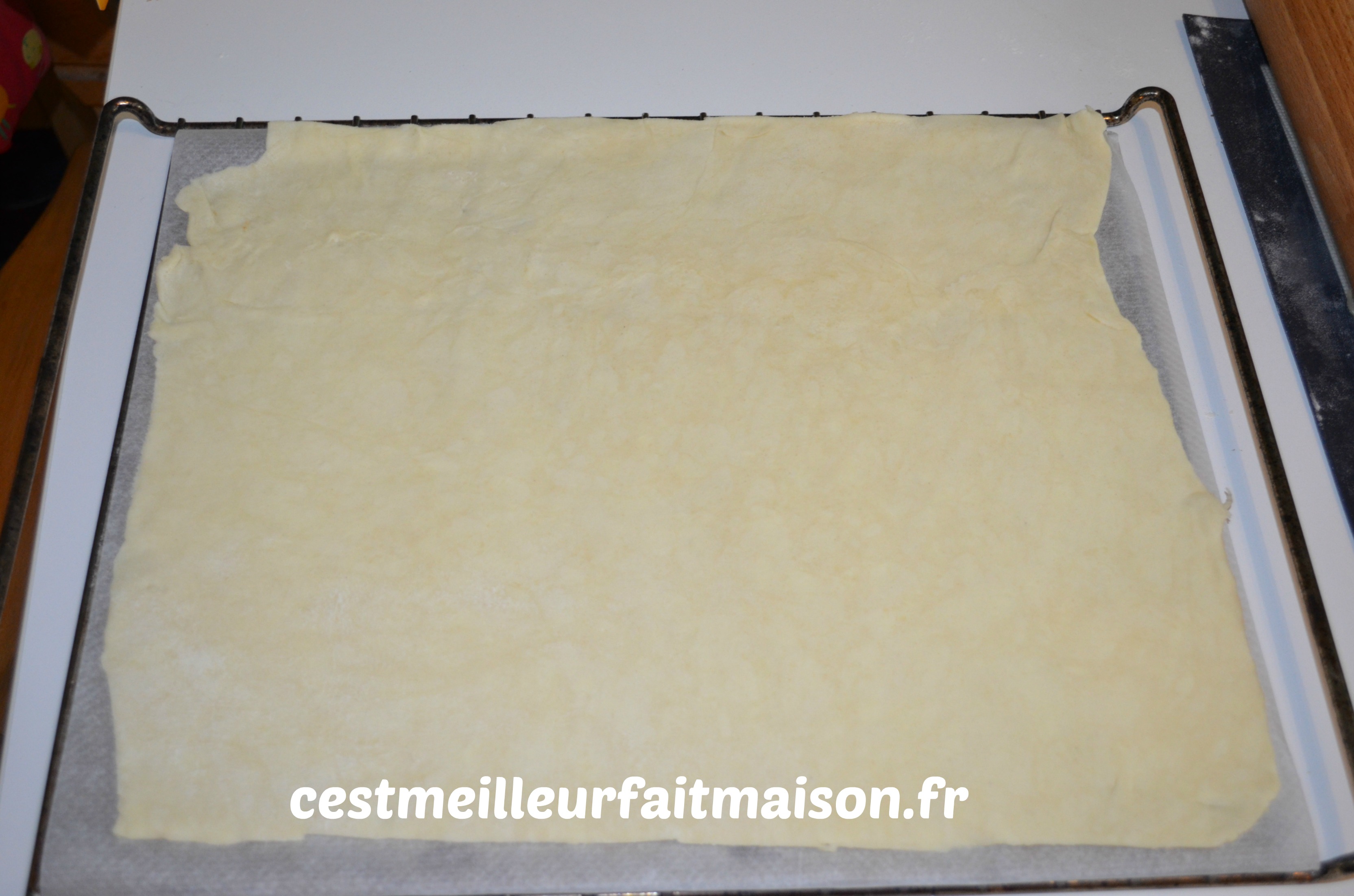 5- Découper 3 rectangles de pâte feuilletée de 30 x 13 cm environ.