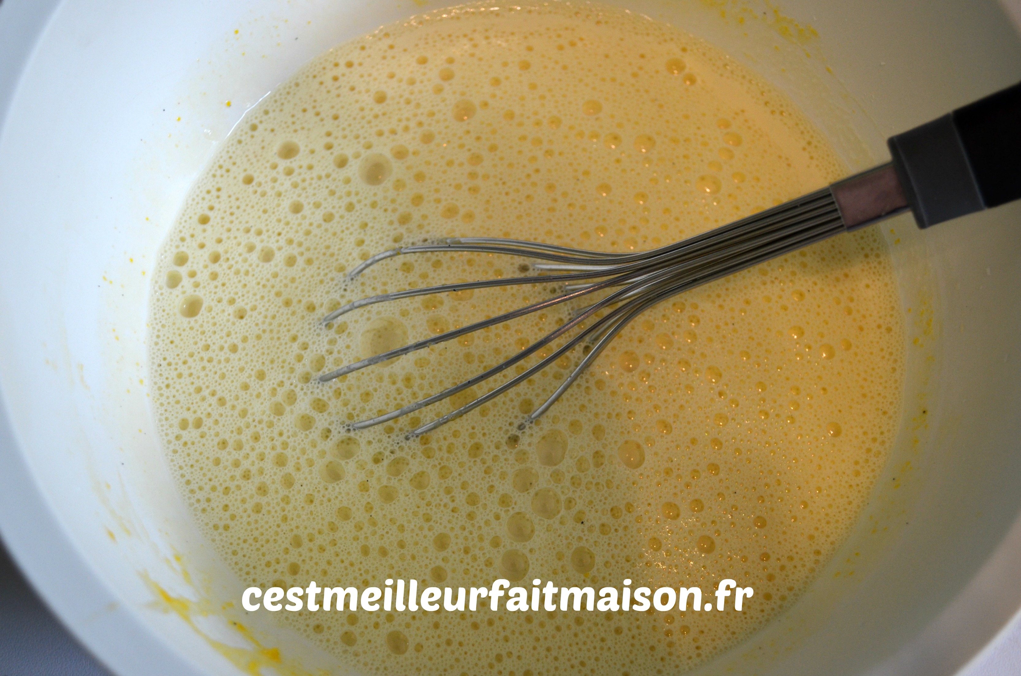 Fouetter les jaunes d’oeufs avec le reste de sucre et la Maïzéna.
