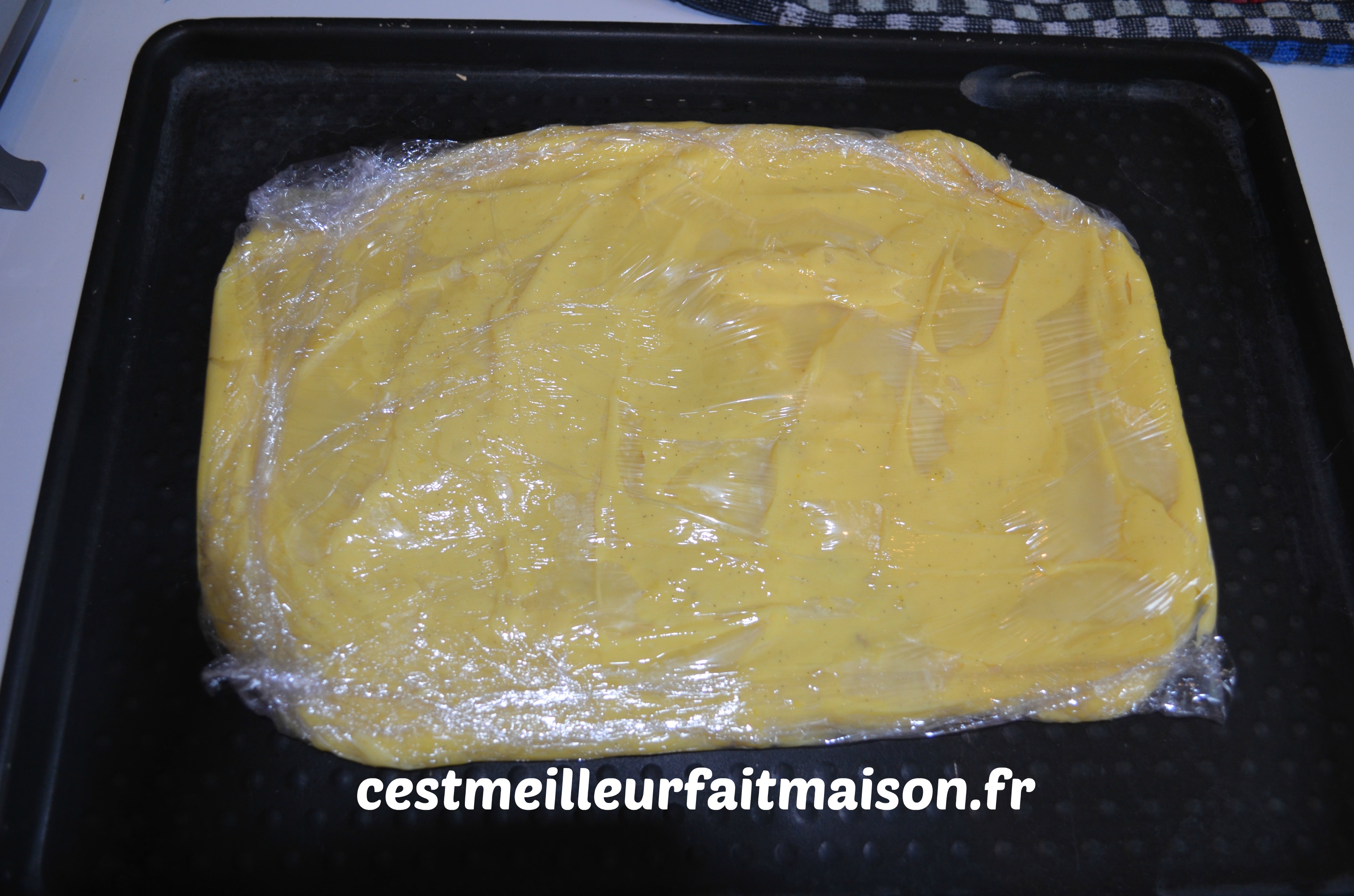 La verser dans un plat recouvert de film alimentaire et filmer la crème complètement. La laisser au réfrigérateur plusieurs heures. Elle doit être complètement froide avant utilisation.