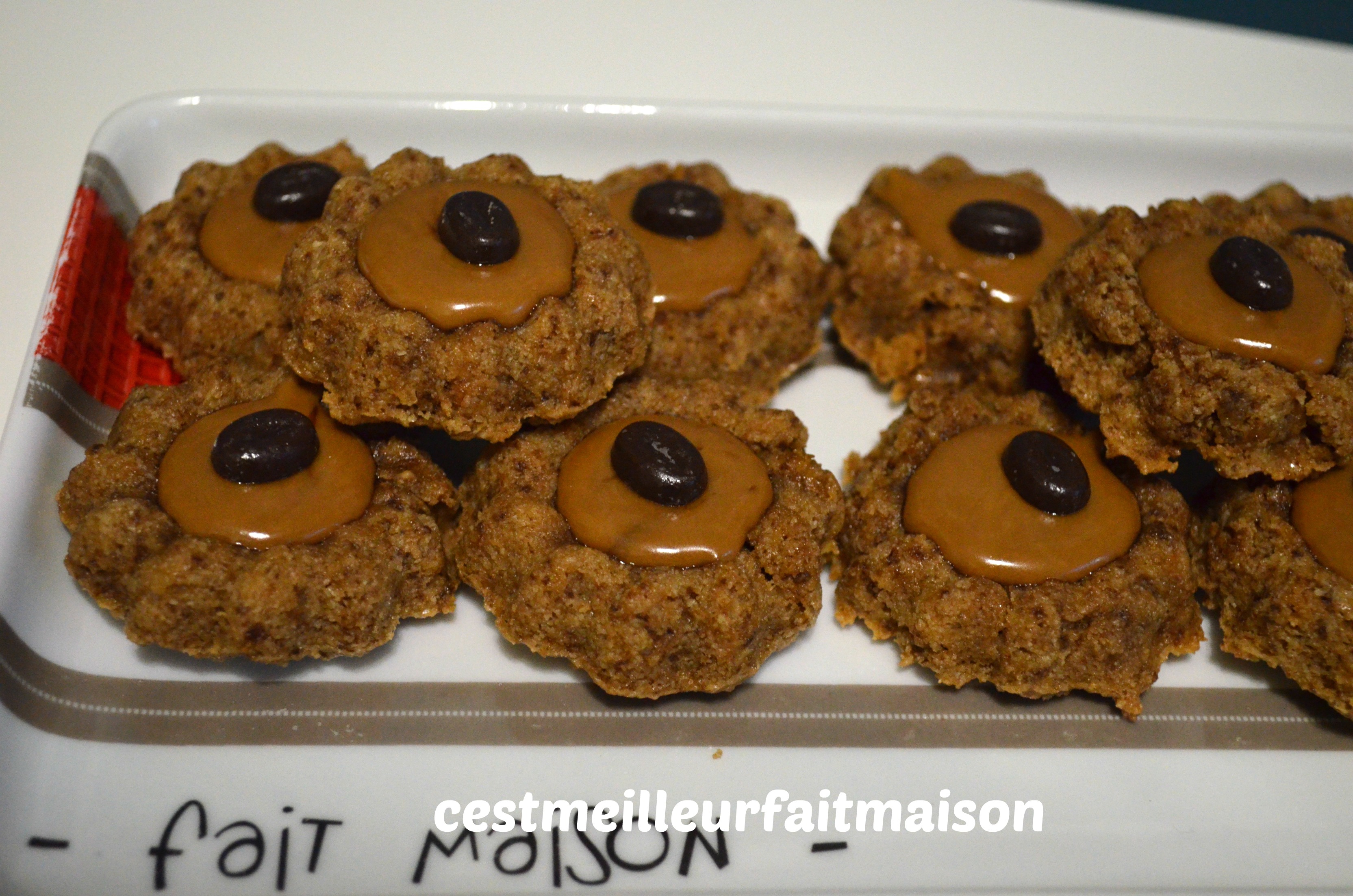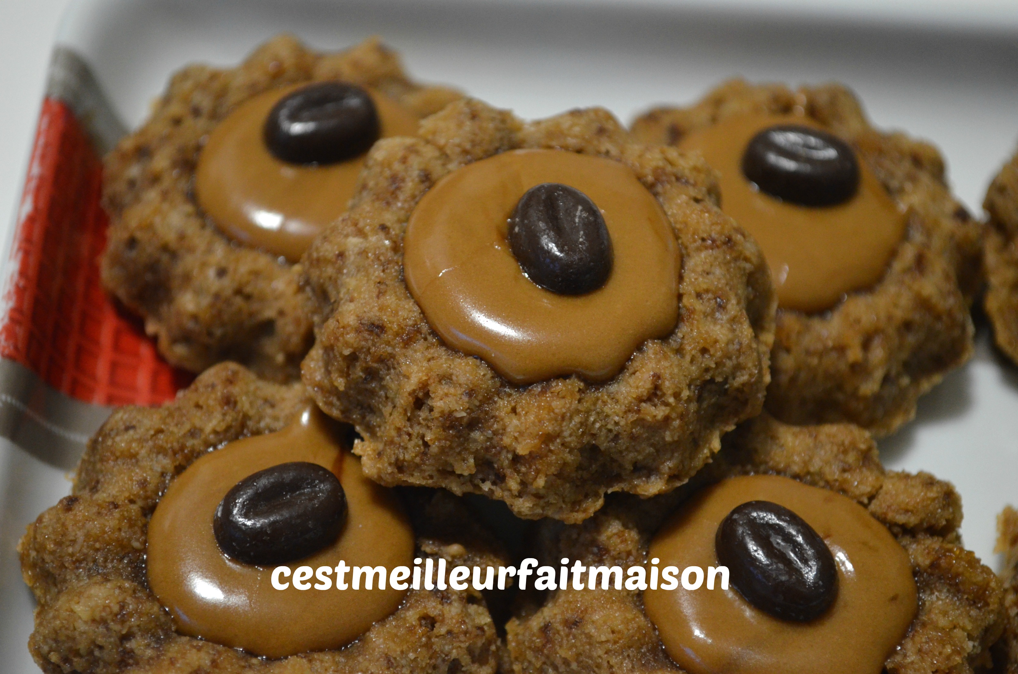7- Lorsque les petits fours sont froid, verser le glaçage par-dessus et ajouter un grain de café. Laisser sécher avant de déguster.