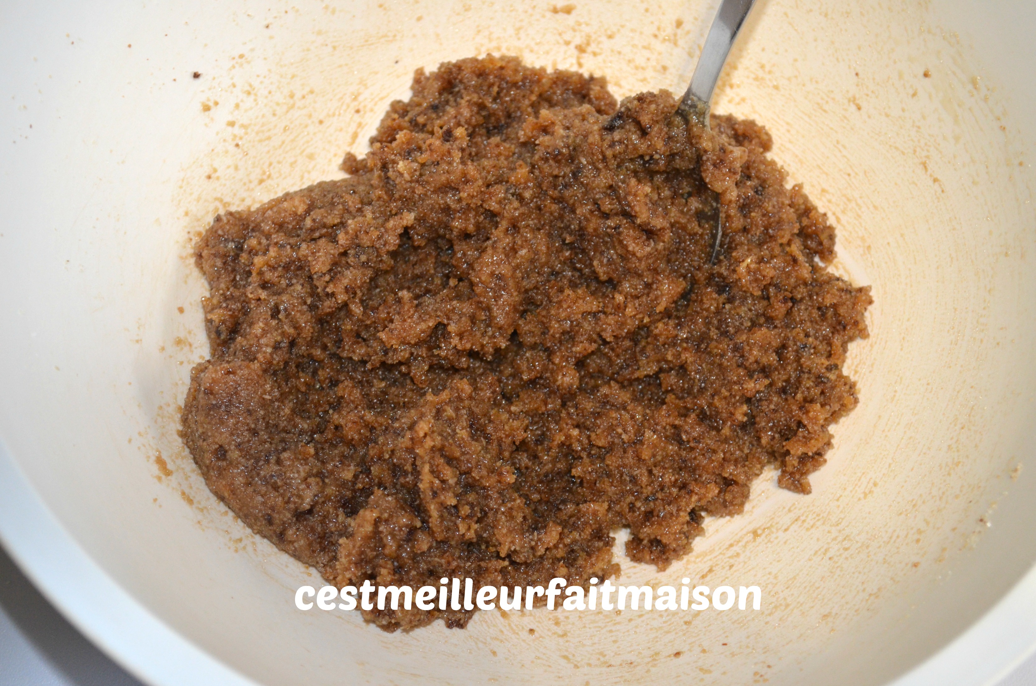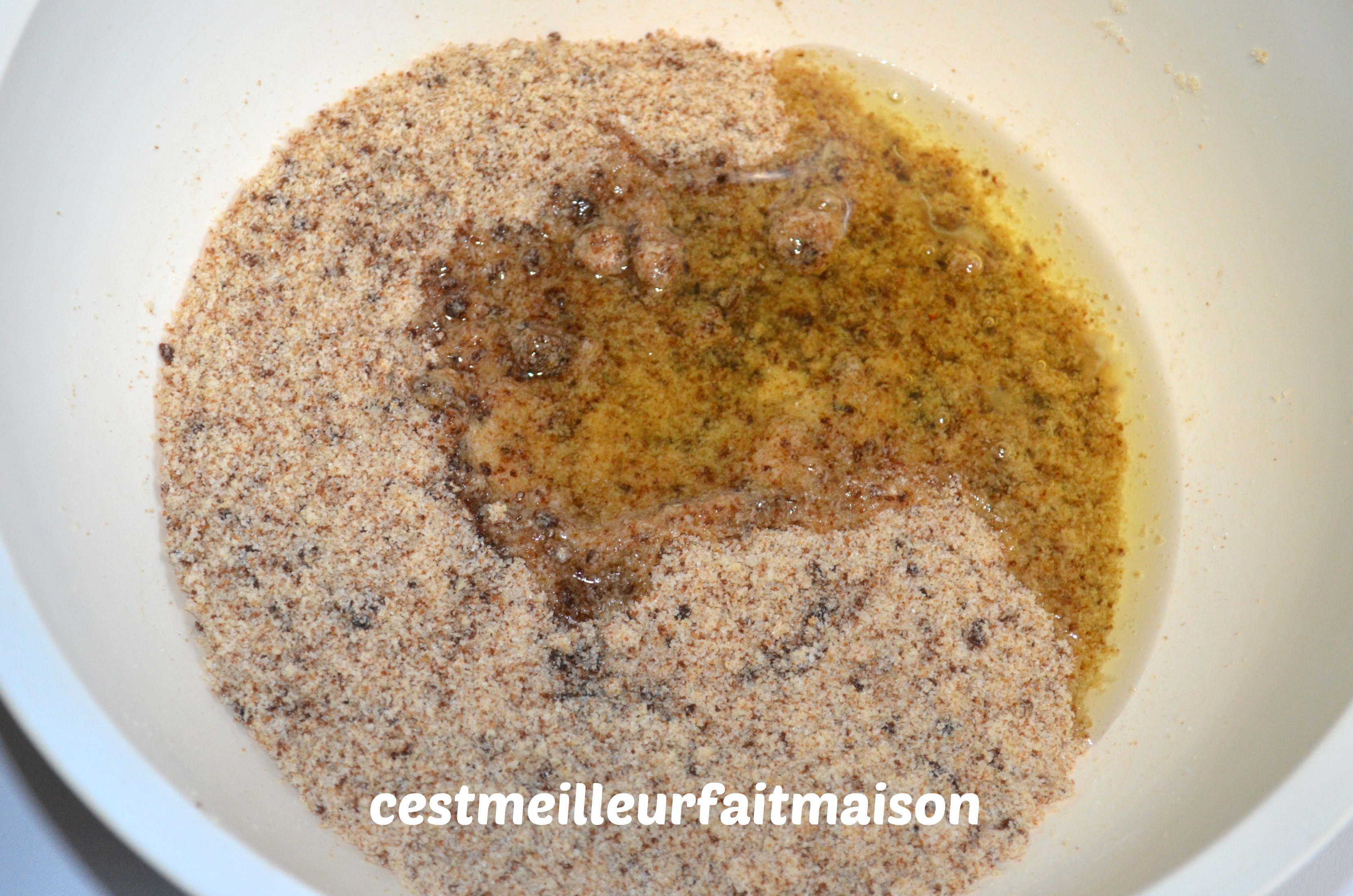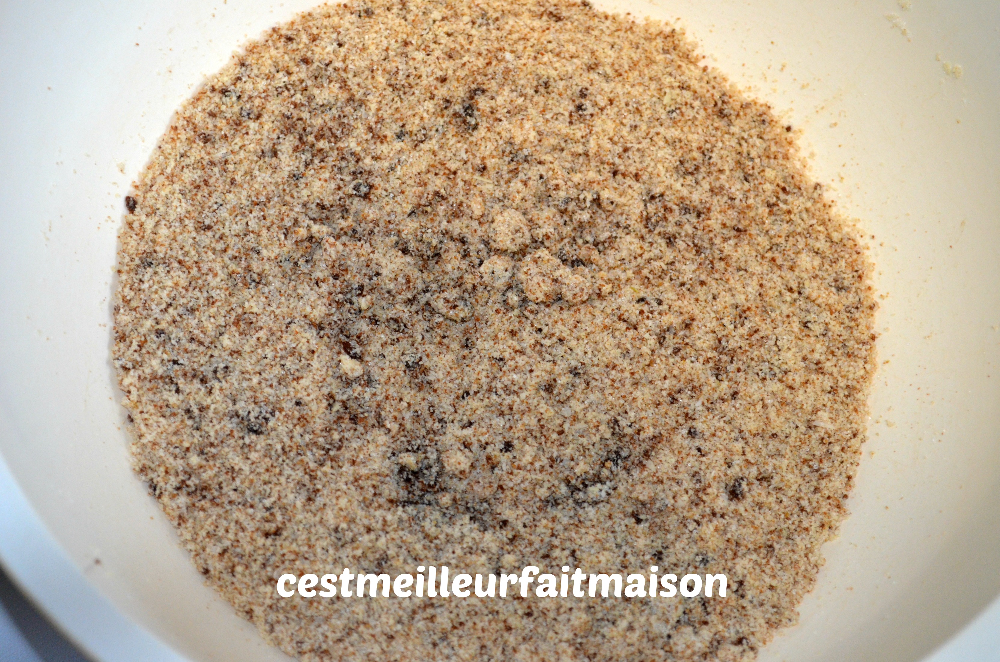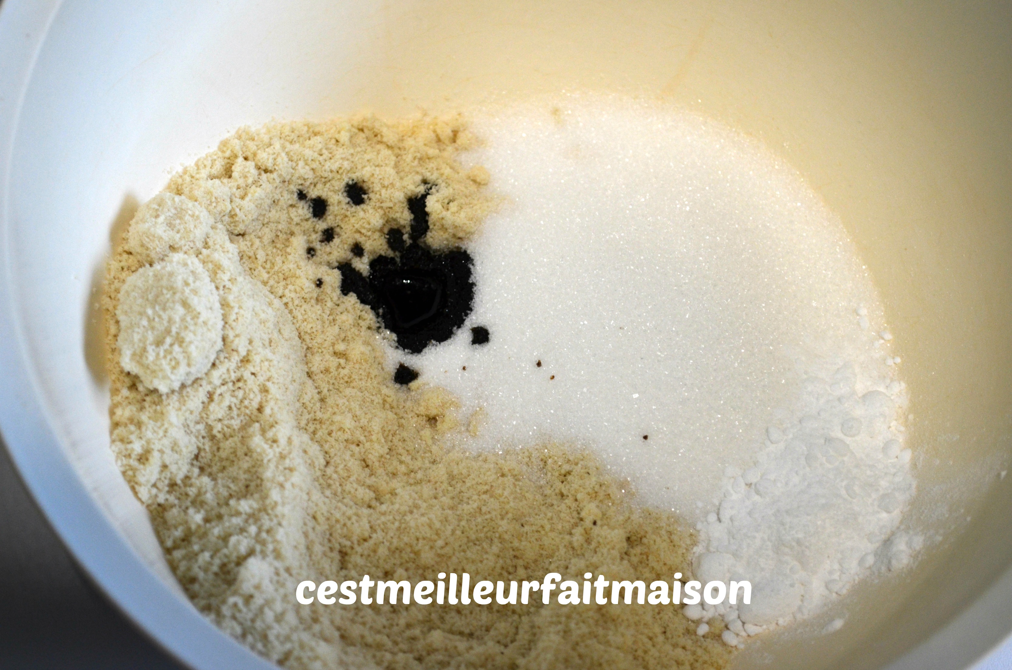 1- Mélanger la poudre d’amande, le sucre et 1 cc d’extrait de café. Bien sabler.
