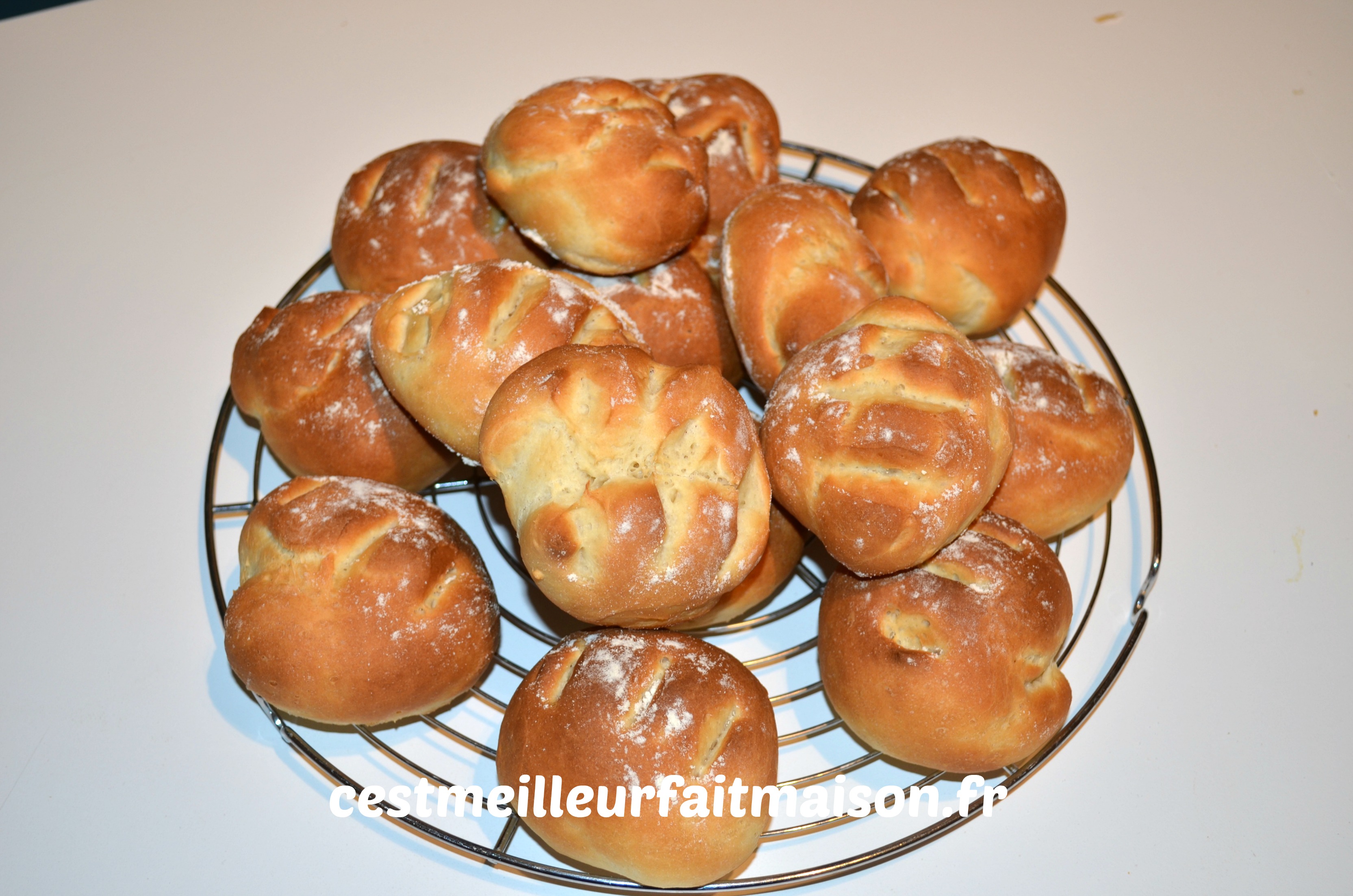 Encore une recette de C’est ma Fournée. Je fais ces pains très souvent car ils sont très moelleux et super bons. Je varie la forme en fonction de ce que je vais en faire. Je fais des petits pains pour le goûter ou le petit déjeuner, des pains plus grands de formes allongées pour faire des sandwiches pour le train. J’ai adapté la recette au Thermomix mais avant de l’avoir je faisais sans, à la casserole et au robot comme sur la recette initiale.