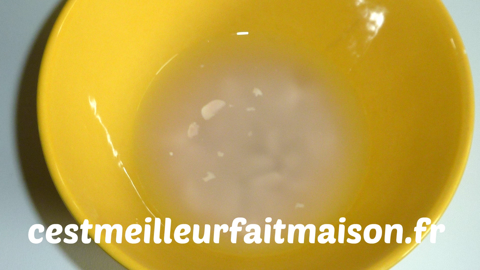 2- Émietter la levure dans un bol. Ajouter l’eau tiède et mélanger.