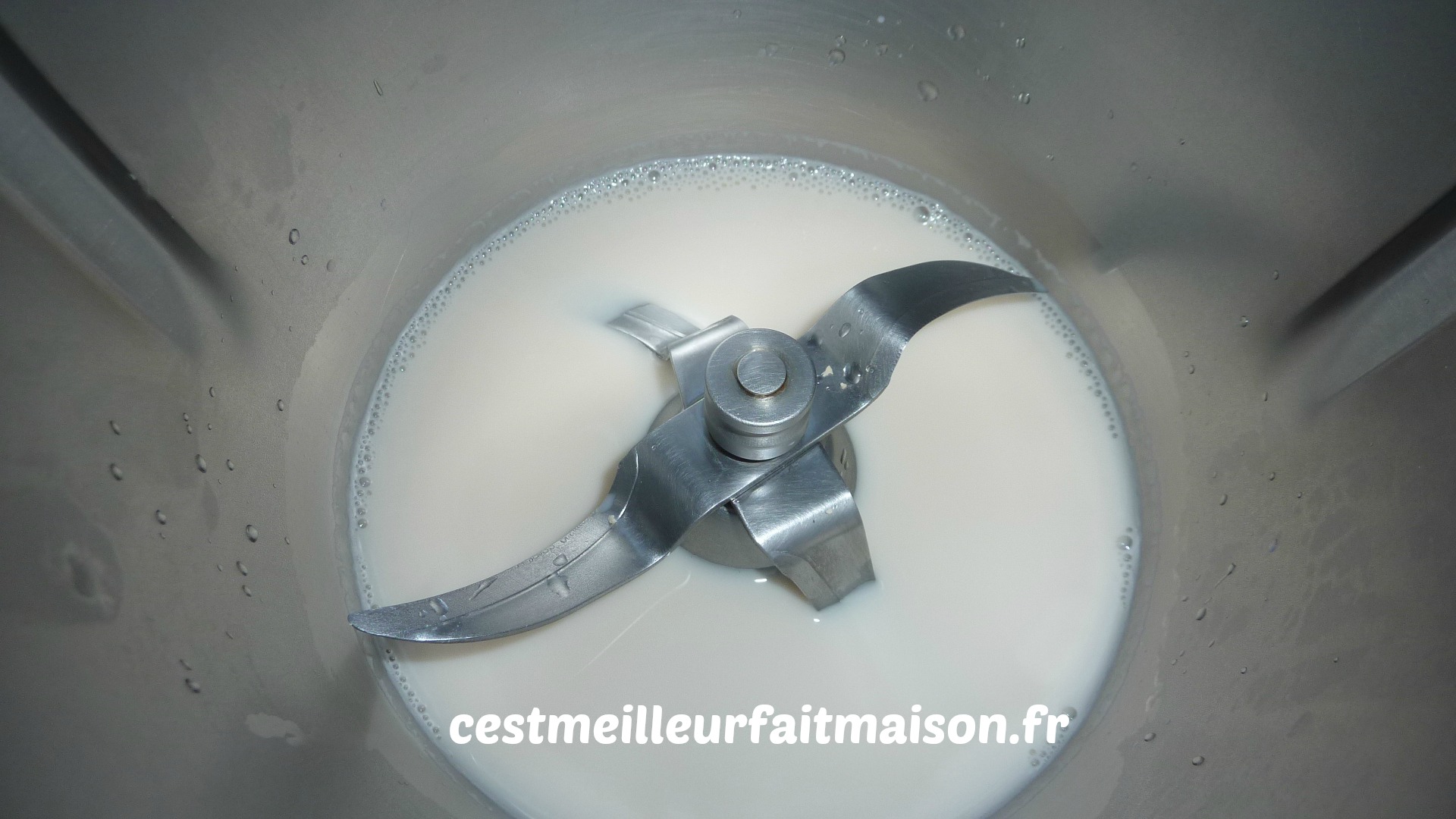 1- Mettre dans le bol du Thermomix la levure, 50g d’eau et 50 g de lait. Programmer 1.30 min/37°C/Vit 2.