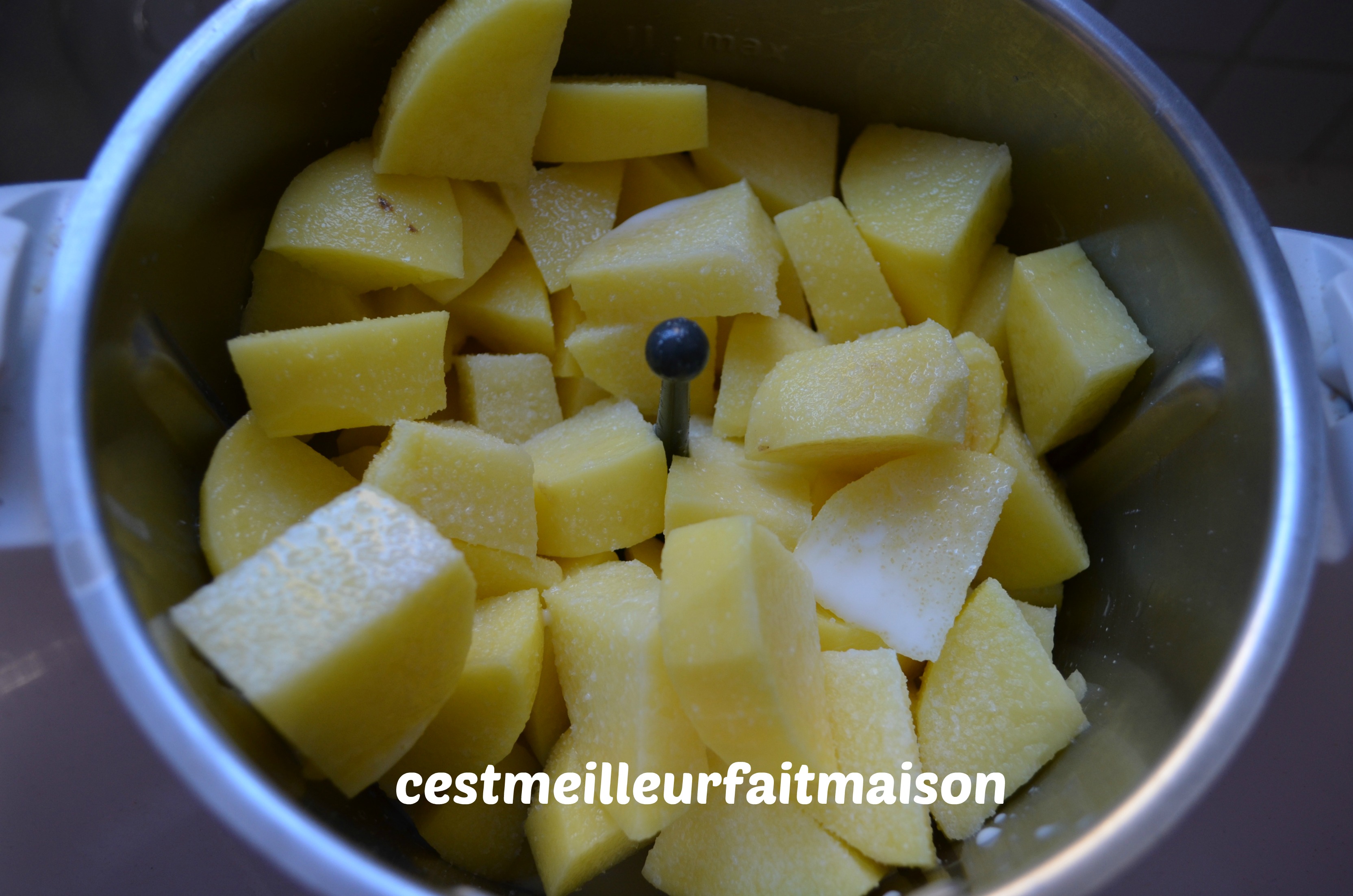 Rien de plus facile et rapide qu’une purée au Thermomix. Le plus long, c’est l’épluchage 🙂 . Une fois que vous l’aurez goûtée, vous n’aimerez plus du tout celle en sachet déshydratée !