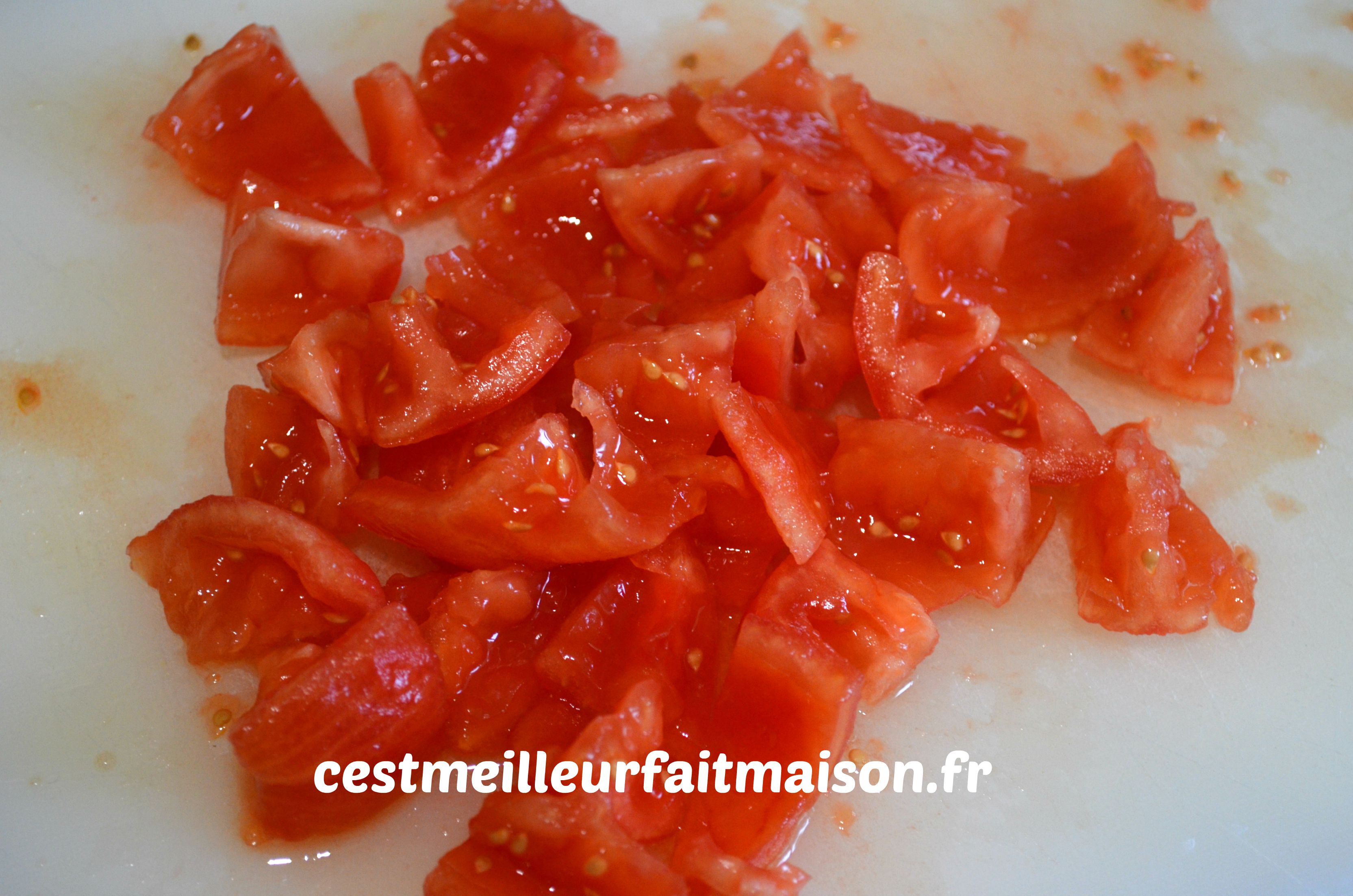 Éplucher les tomates, les épépiner et les couper en morceaux.