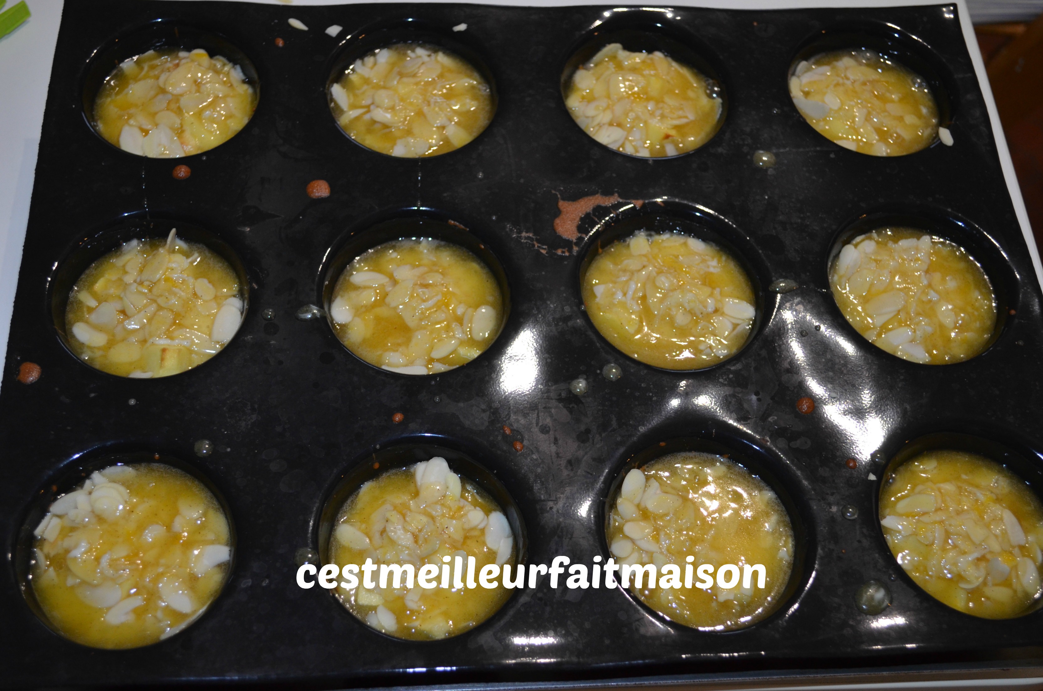 3- Remplir à moitié les empreintes à muffins et enfourner pour 20 min (30 min si vous faites ce gâteau dans un grand moule).