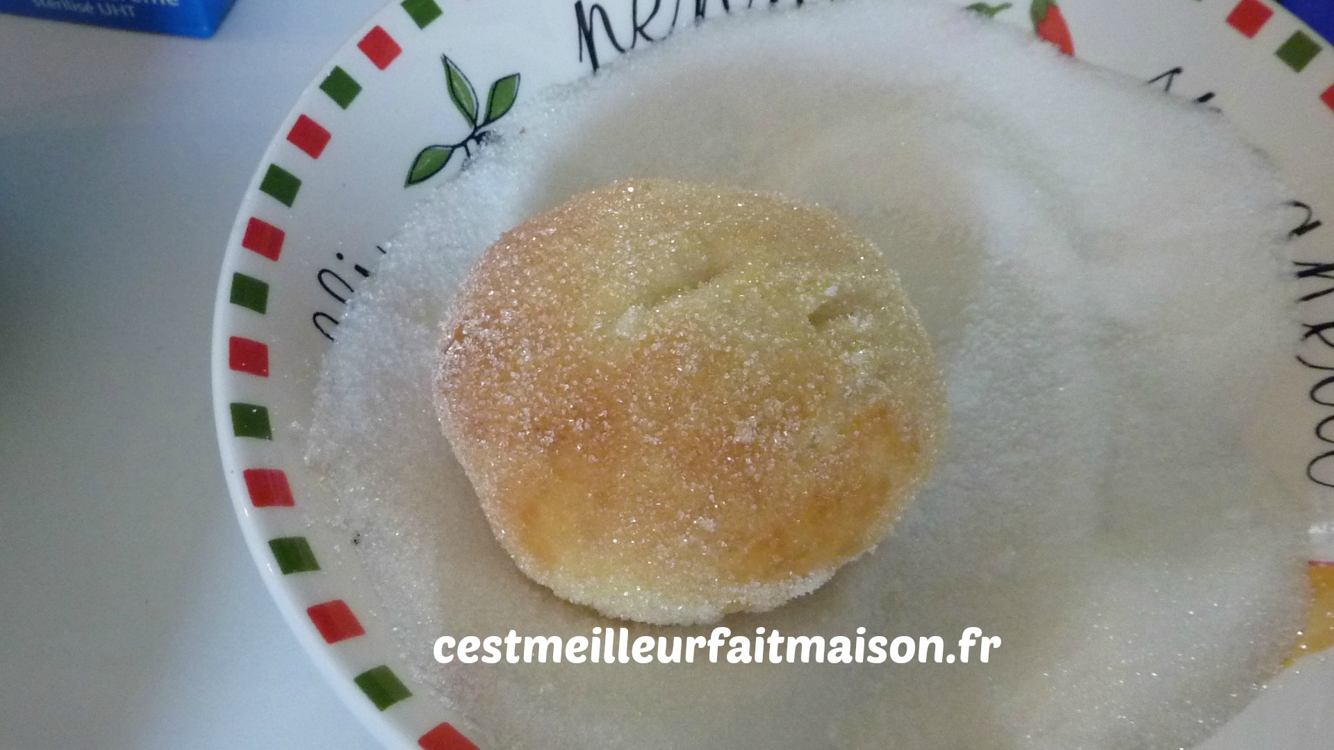 8- A la sortie du four, badigeonner les beignets de beurre fondu et les rouler dans du sucre.