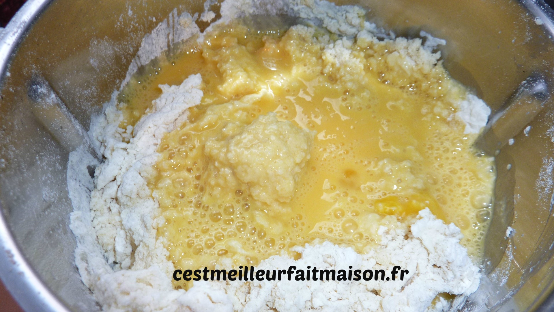 3- Battre les oeufs et les ajouter dans le bol. Mixer 15 sec/ Vit 4.