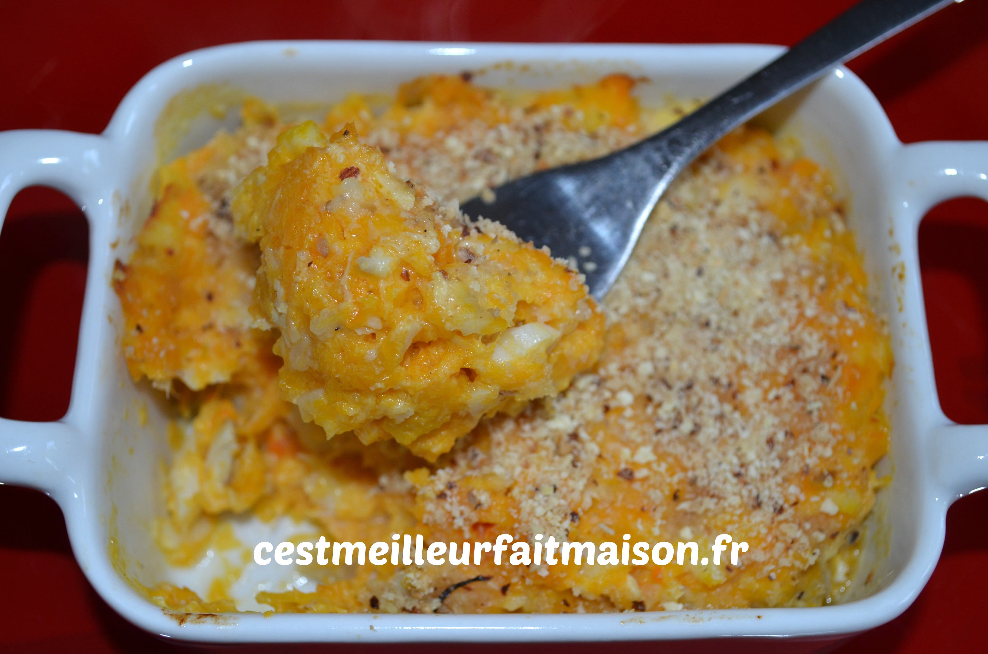 Bien que je ne sois pas fana de plat de poisson, j’en cuisine tout de même de temps en temps. Alors quand je trouve une recette qui me plait je la garde 🙂 Cette brandade est une recette Picard améliorée par Valérie de C’est ma fournée! C’est une façon originale de manger du poisson. Je l’ai faite plusieurs fois et la seule chose que j’ai changé c’est la quantité de potiron. Je mets 600 g au lieu de 400 g.