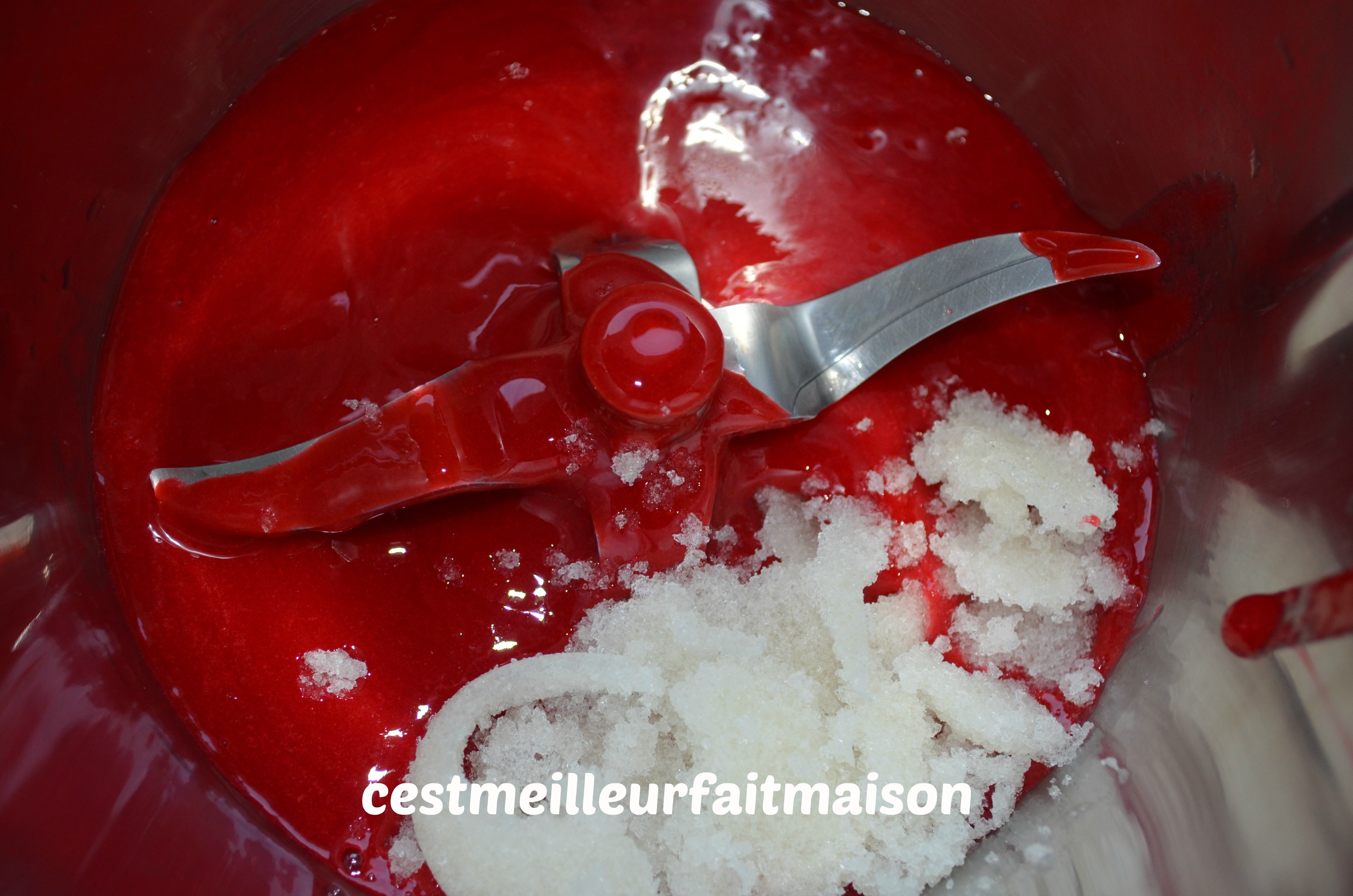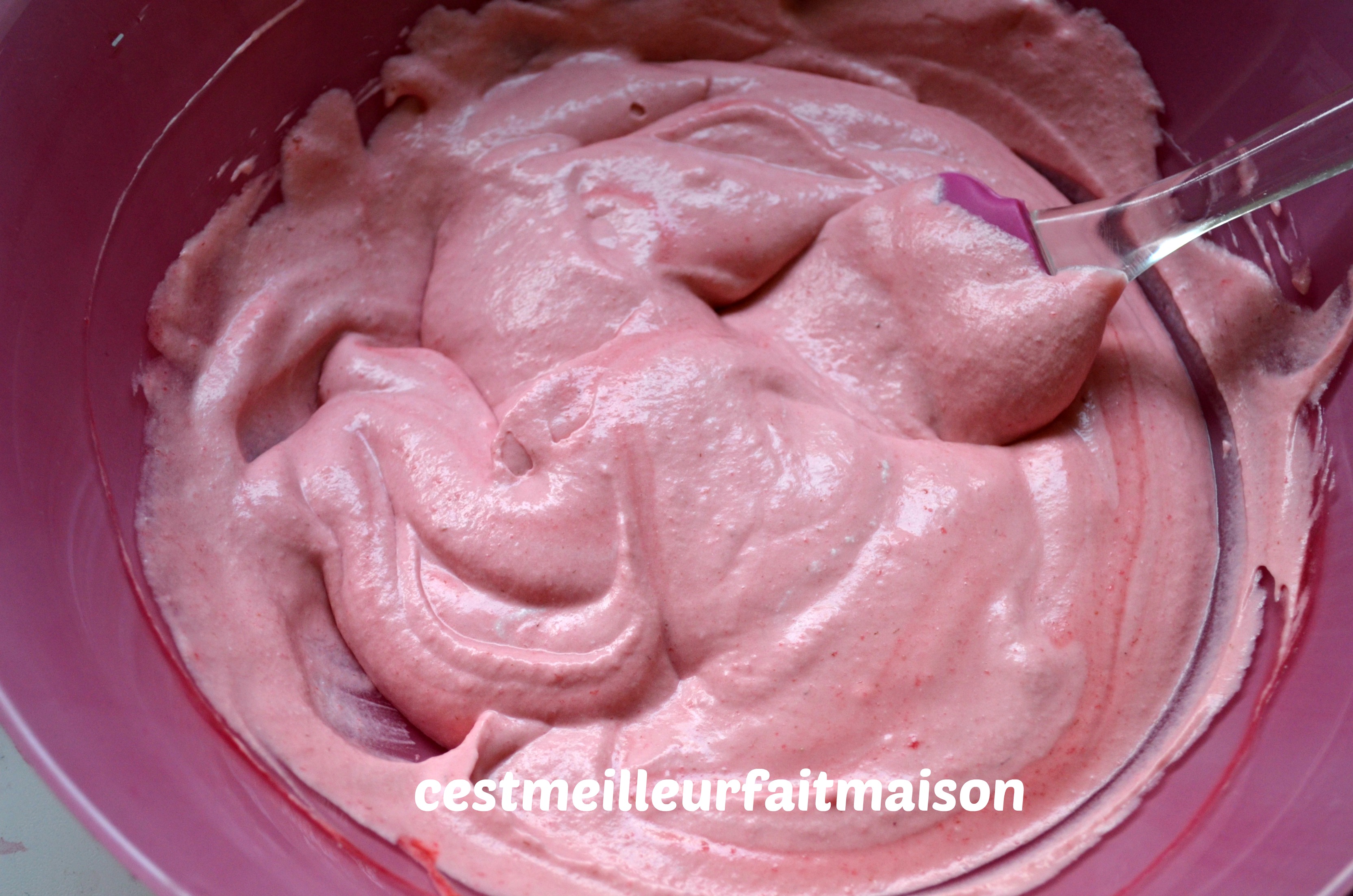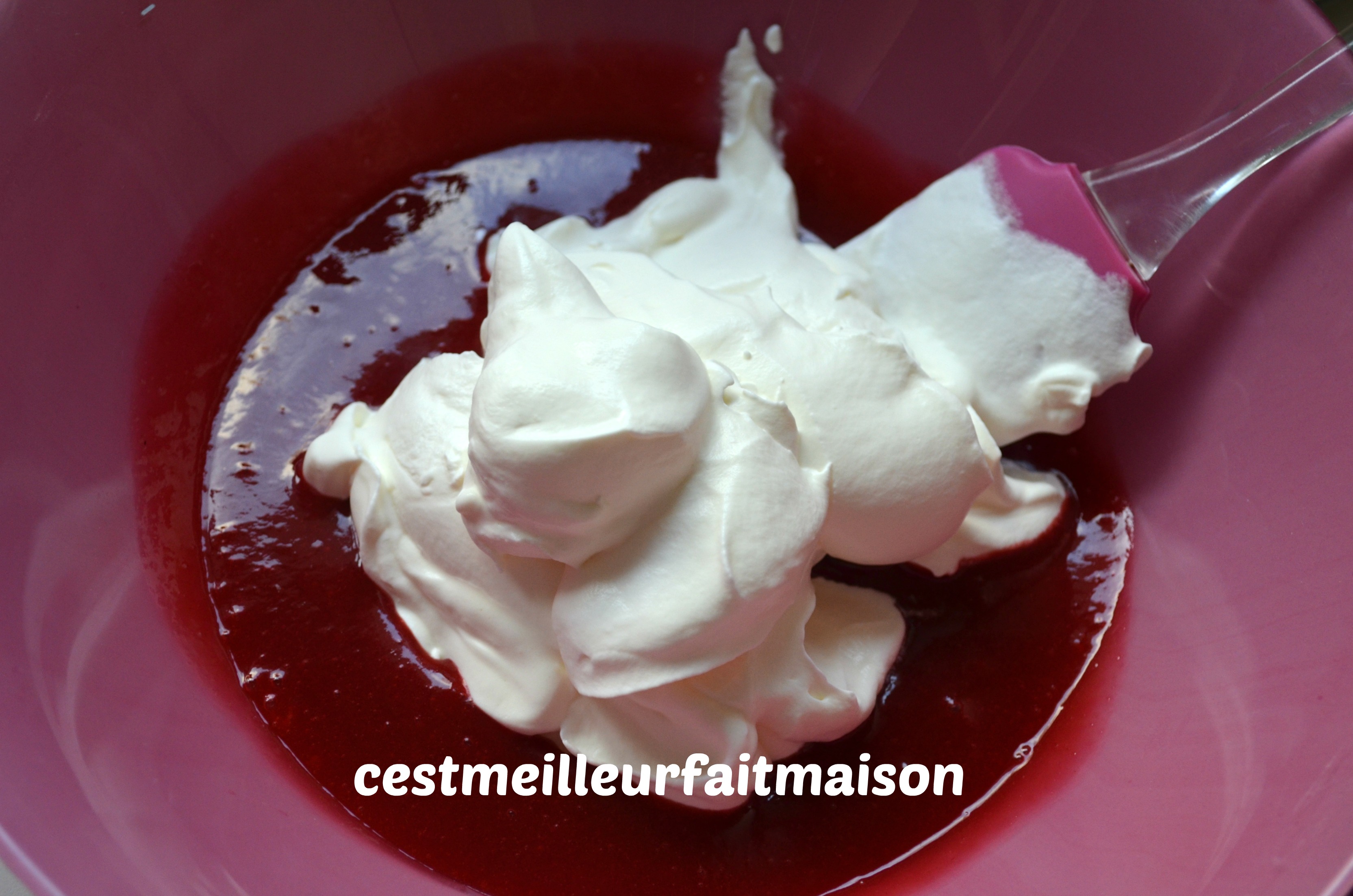 2- Mettre à gonfler, dans 3 cs d’eau, la gélatine pour la mousse rose.