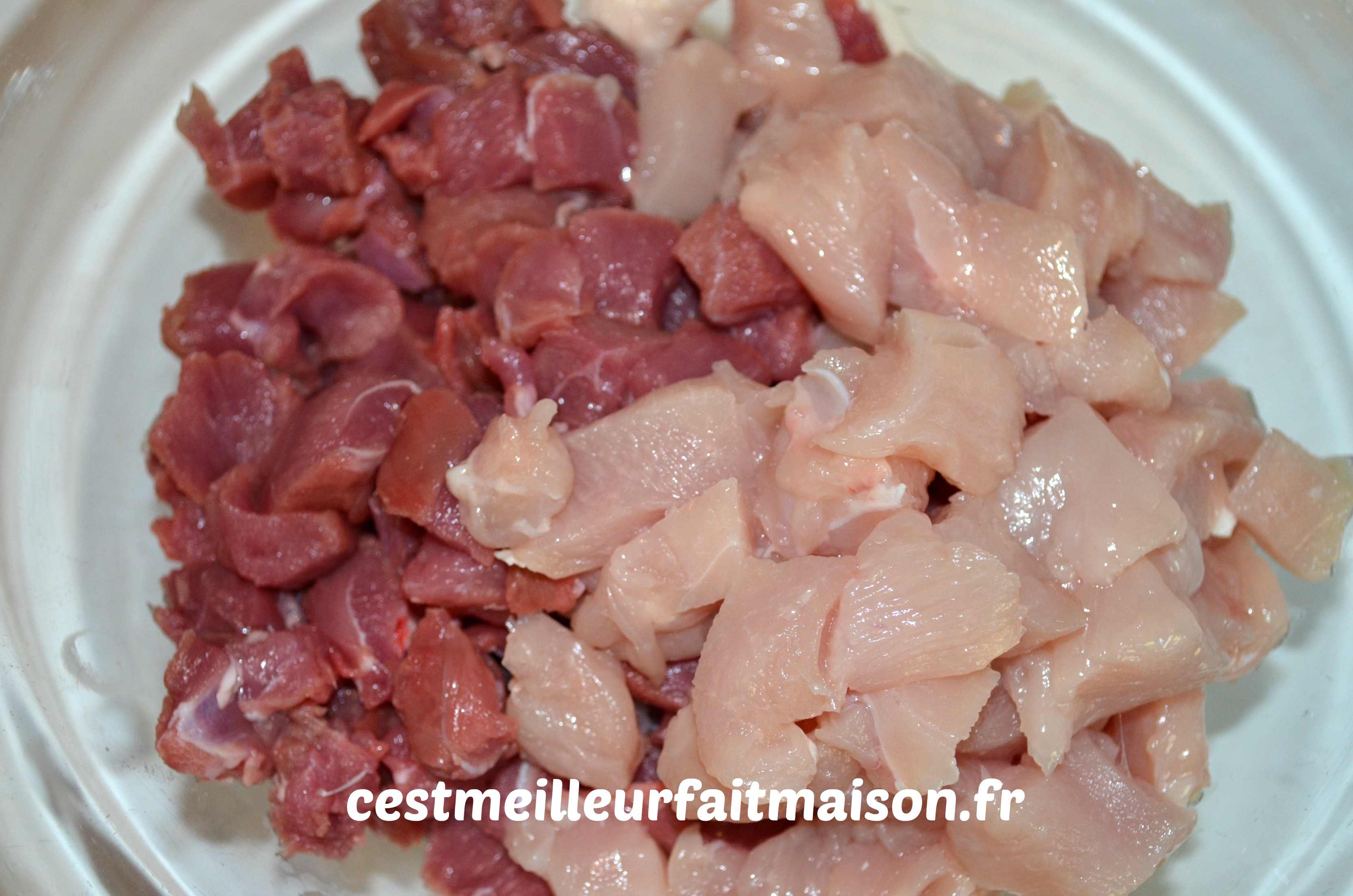 ou 4/5 tranches de gigot d’agneau et 3 filets de poulet ou de cuisses