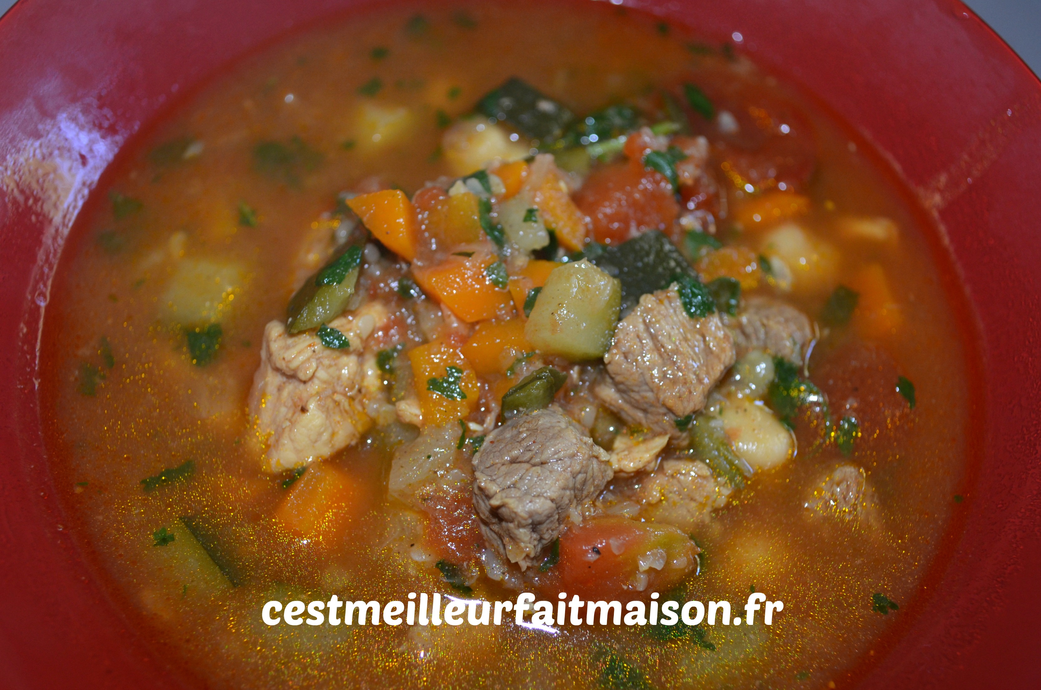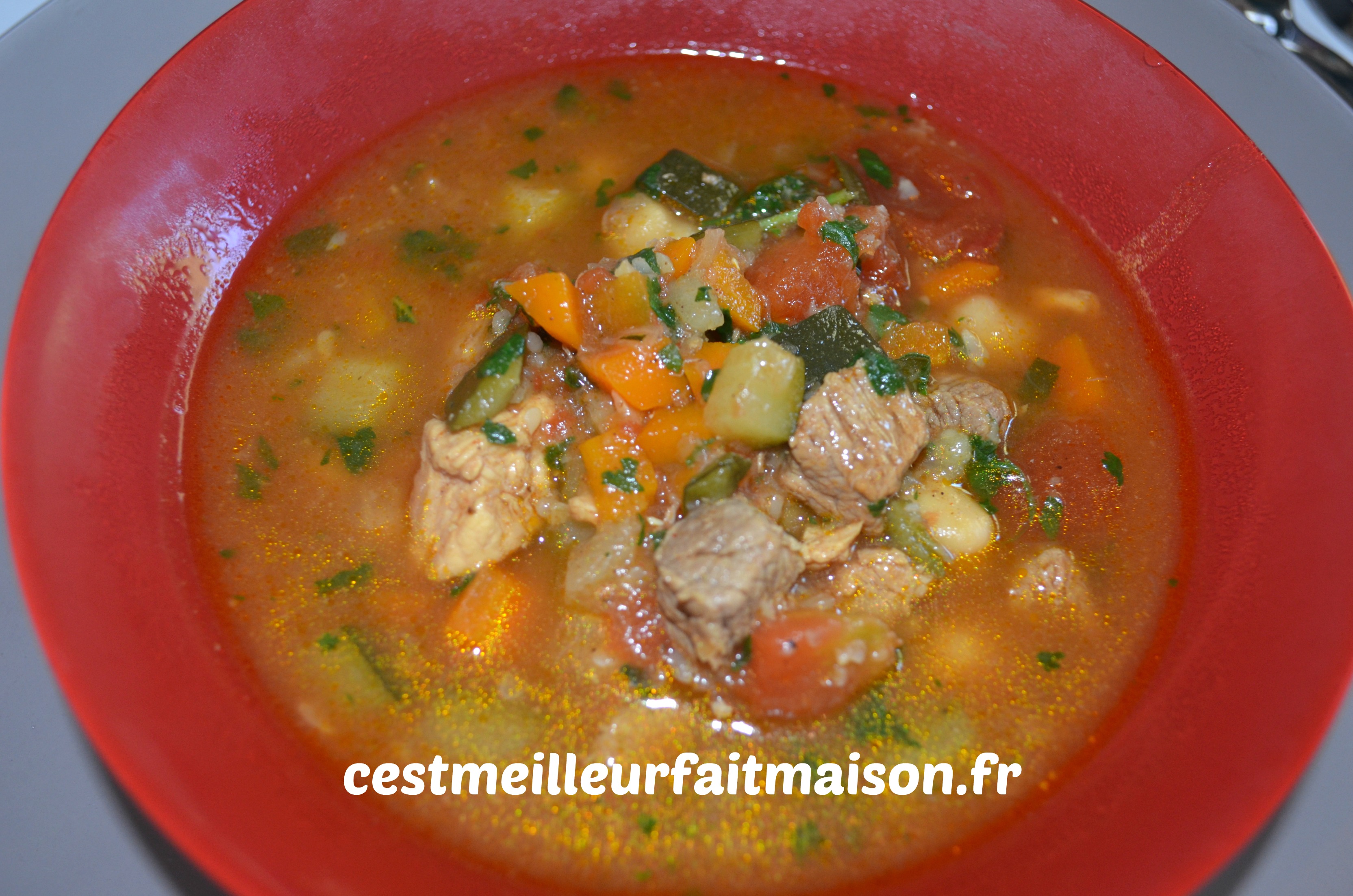 Le froid commence a arriver alors ça donne envie de faire des soupes. Cette chorba est une recette parmi tant d’autres. Comme le couscous ou la paella, il y a autant de recettes de chorba que de cuisiniers. Celle-ci, je l’ai prise dans un livre de cuisine algérienne mais je l’ai modifiée au fur et à mesure de mes essais. On peut la faire qu’à l’agneau, qu’au poulet ou mélanger les deux viandes. C’est ce que j’ai fait dans la recette que je publie aujourd’hui.