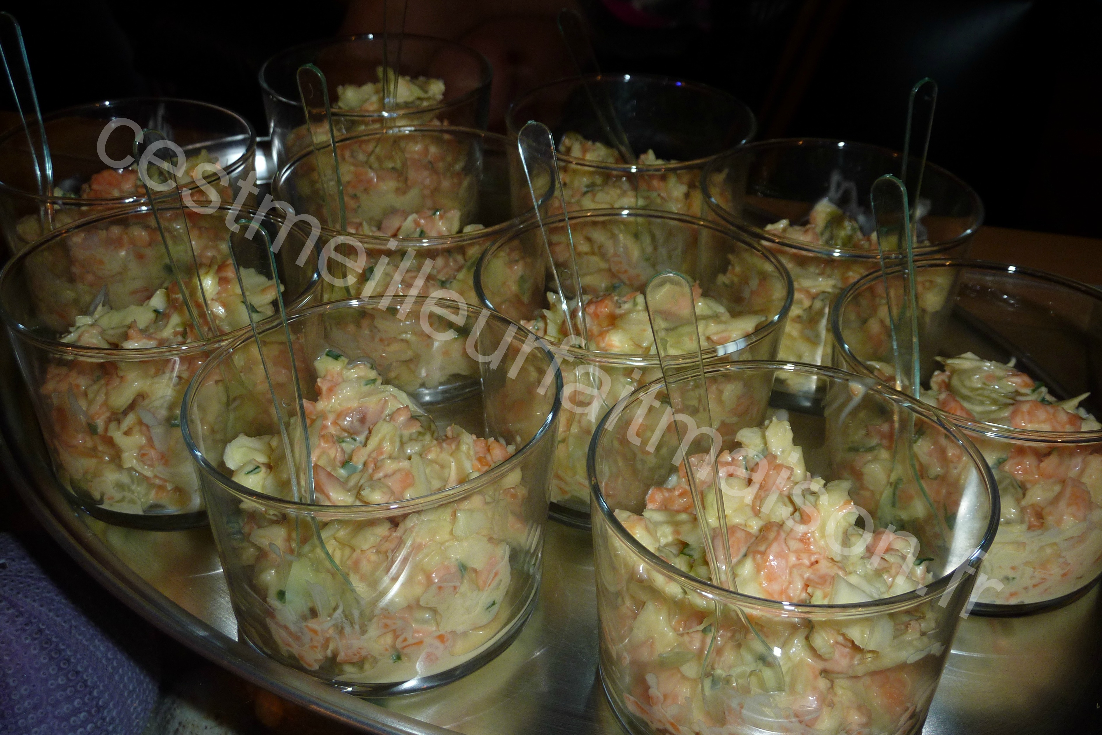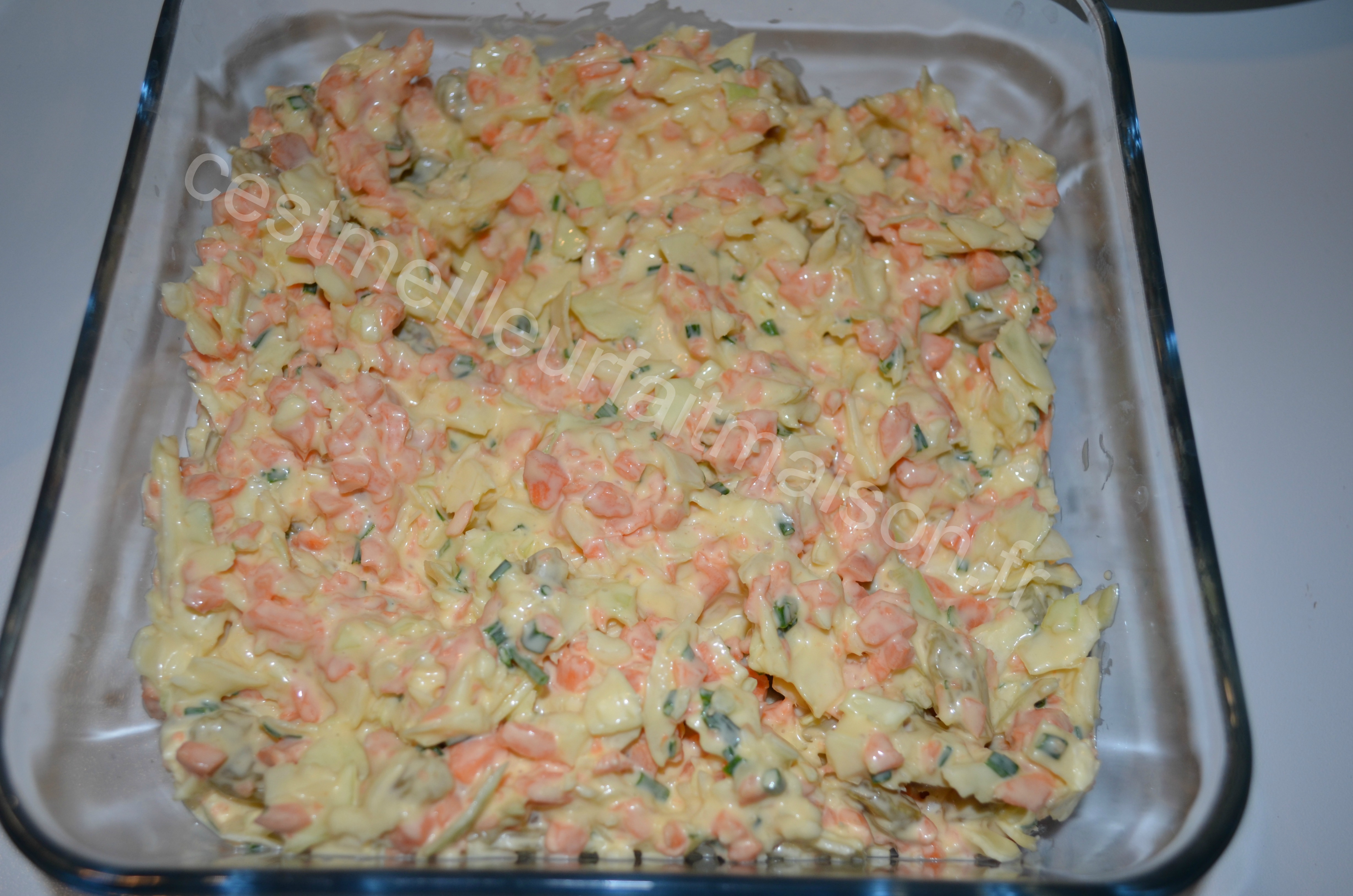 J’adore cette salade. J’ai trouvé une recette formidable sur le blog C’est ma fournée . Elle est parfaite, rien n’est à modifier à part les quantités. J’ai tout multiplié par deux !