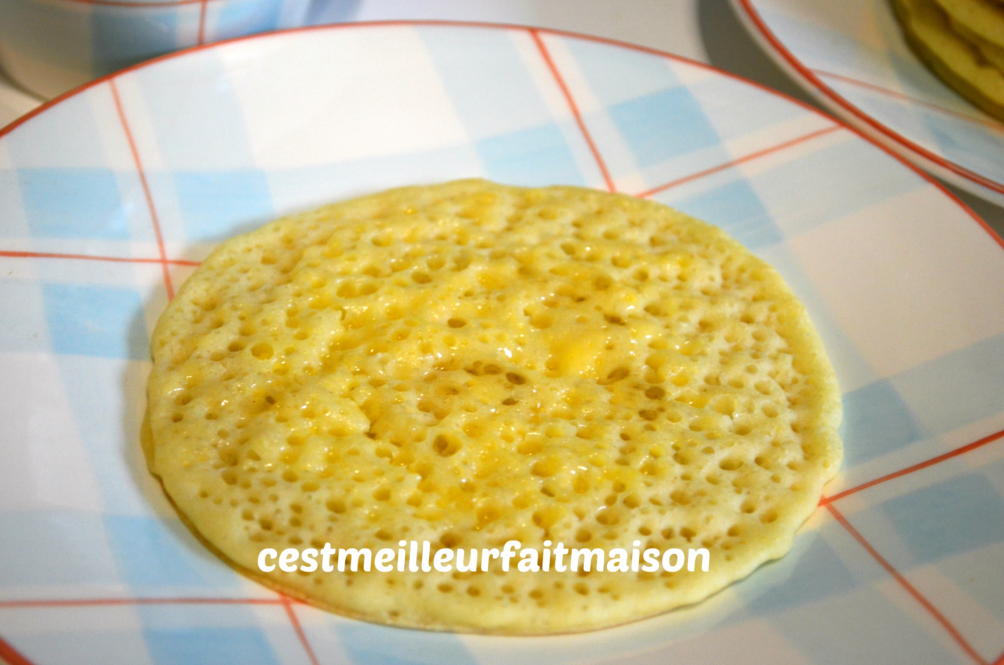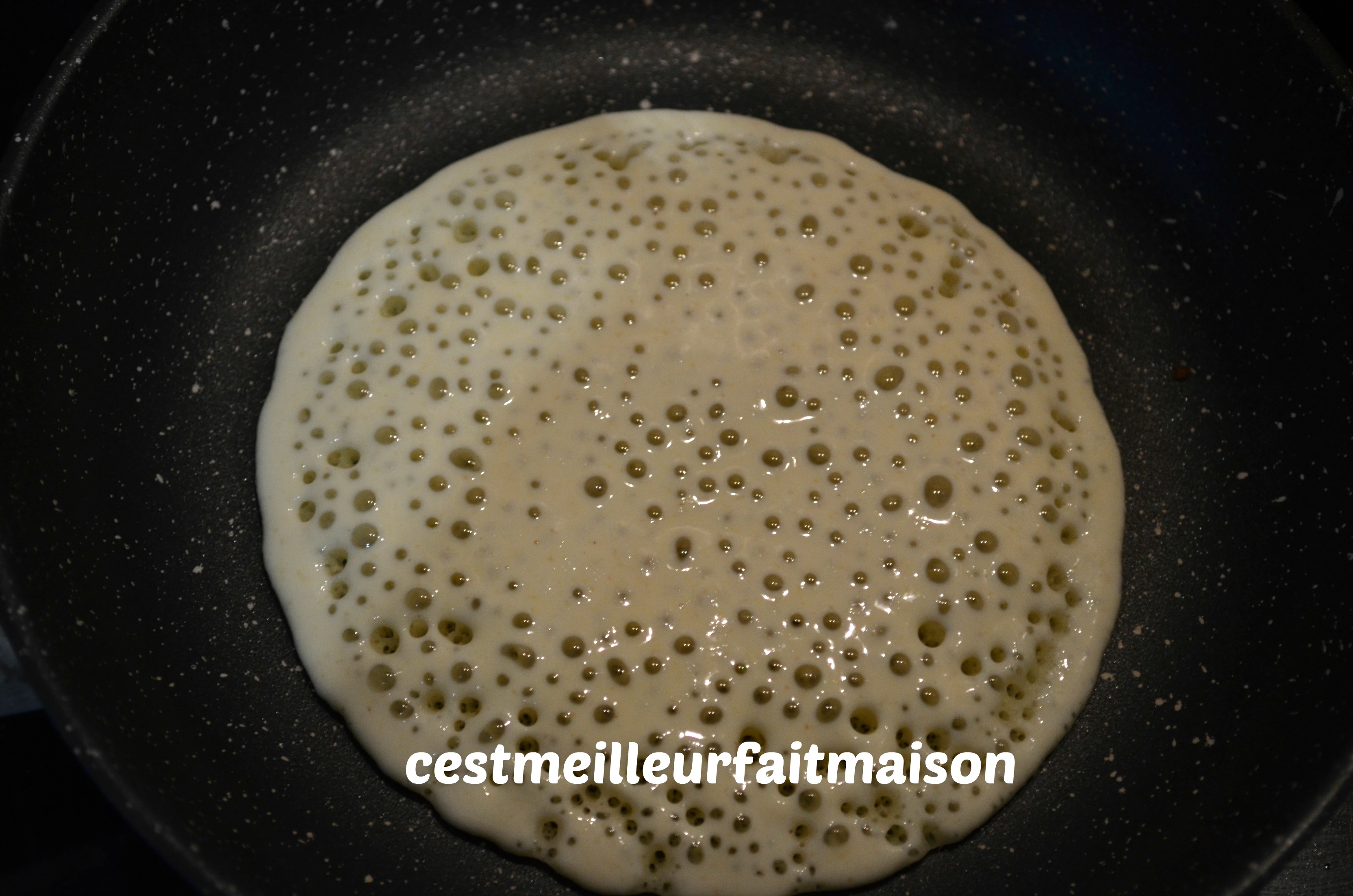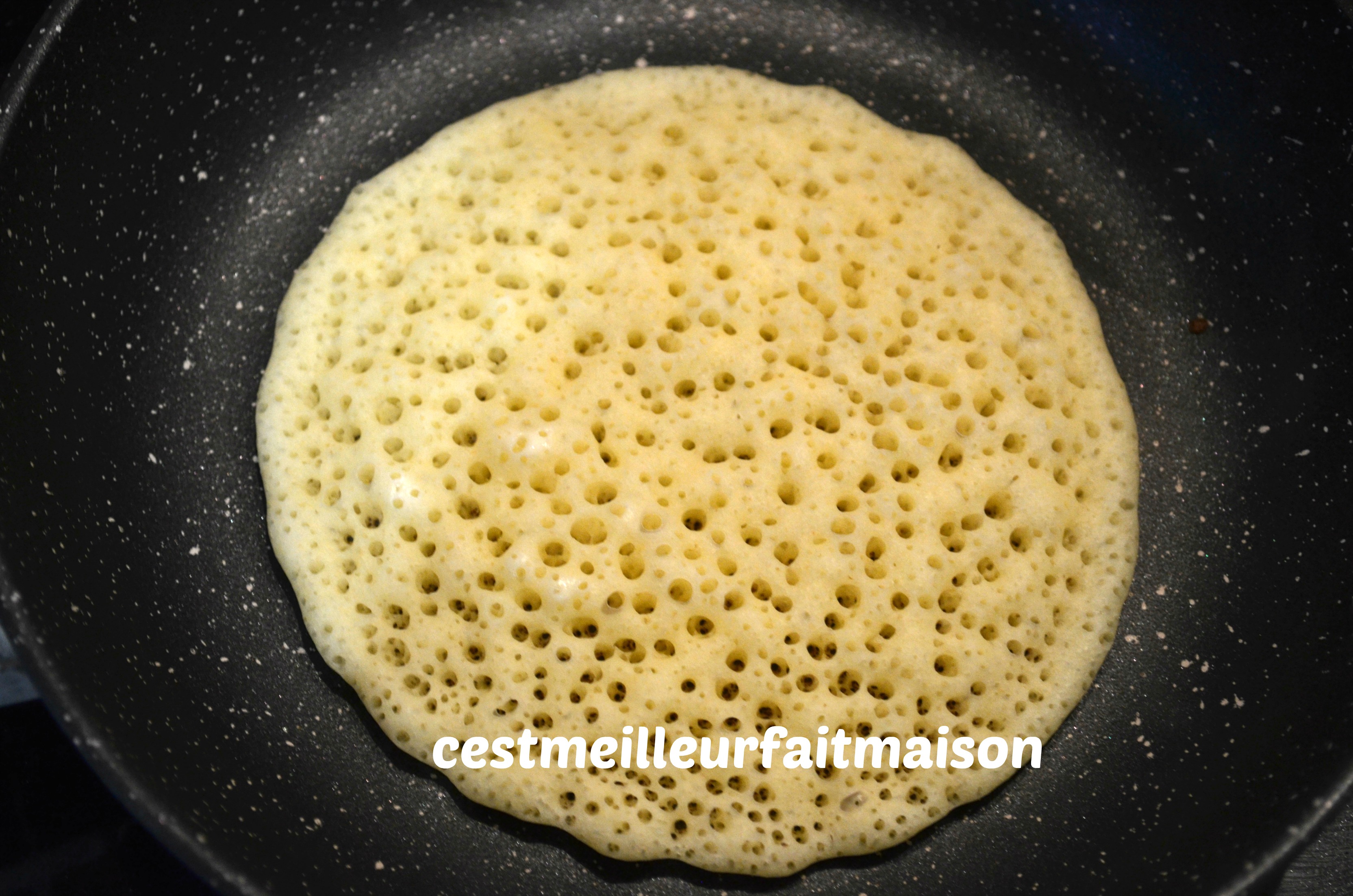 Pour changer des crêpes et des pancakes, j’ai tenté les mille trous. J’ai pris la recette chez La Cuisine de Bernard et j’ai adapté la recette au Thermomix.