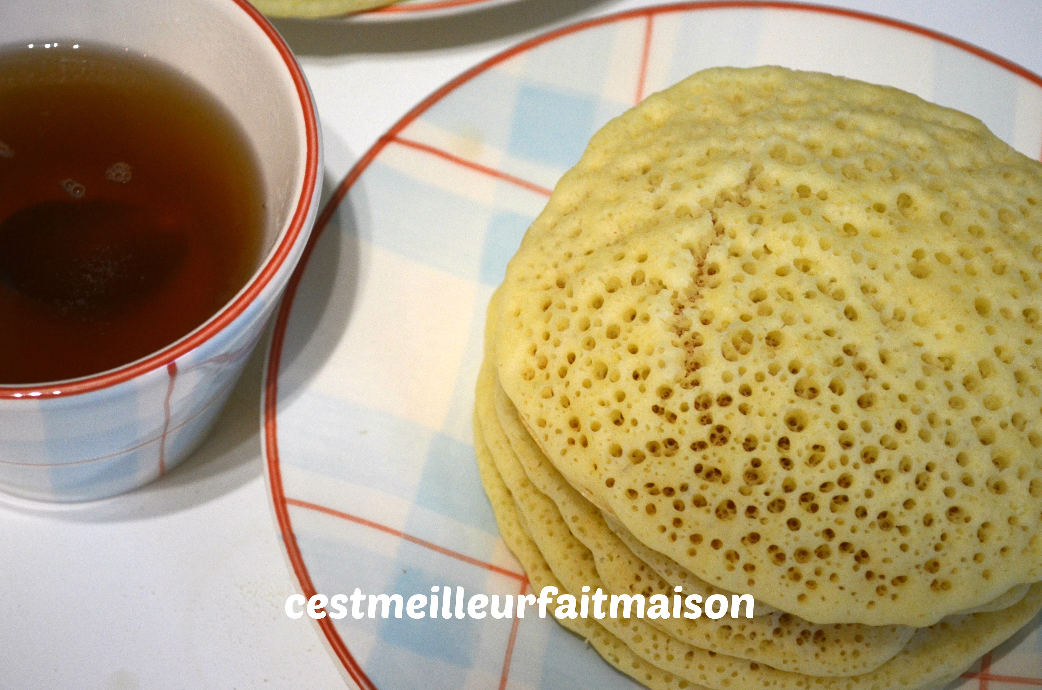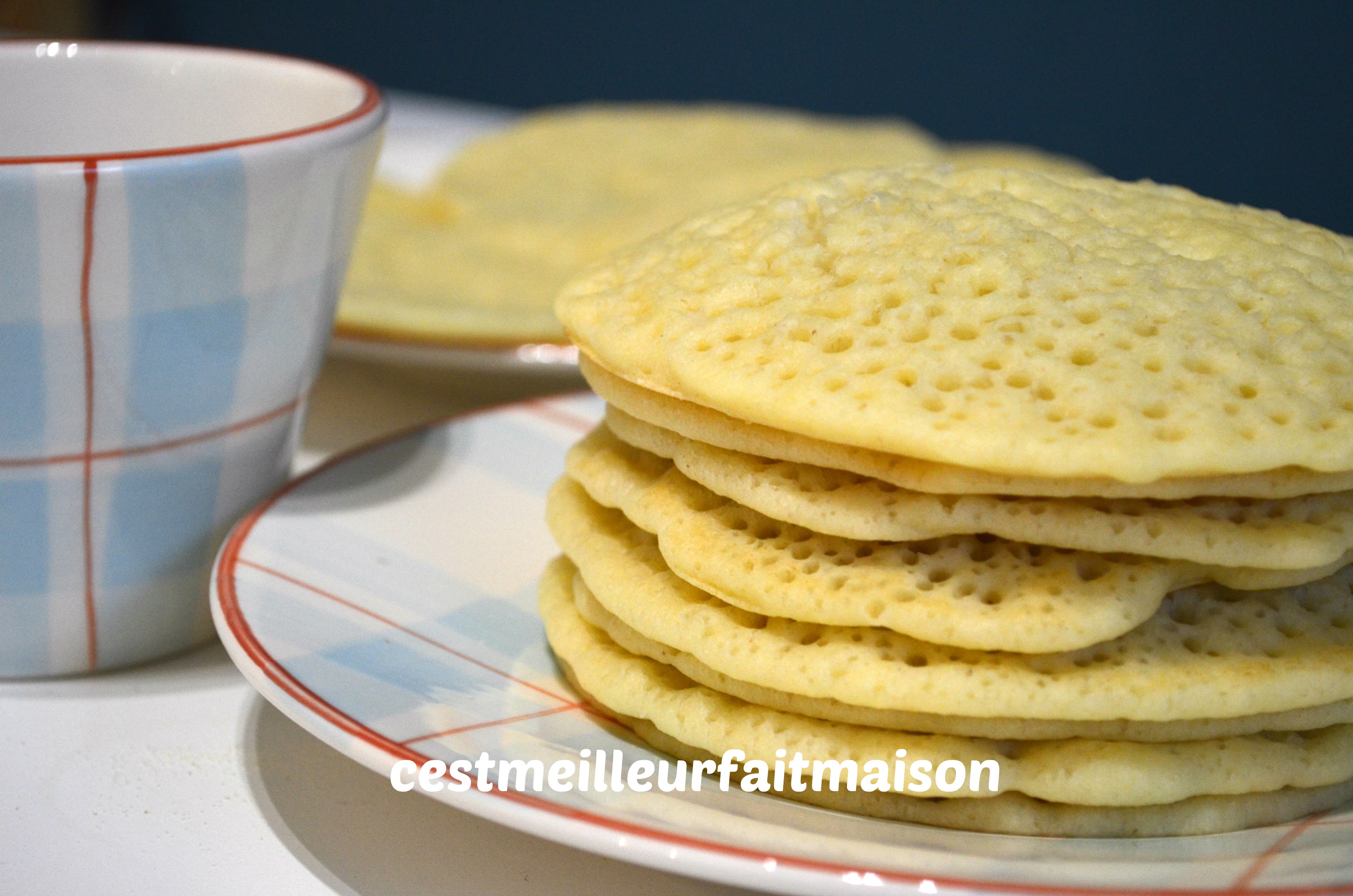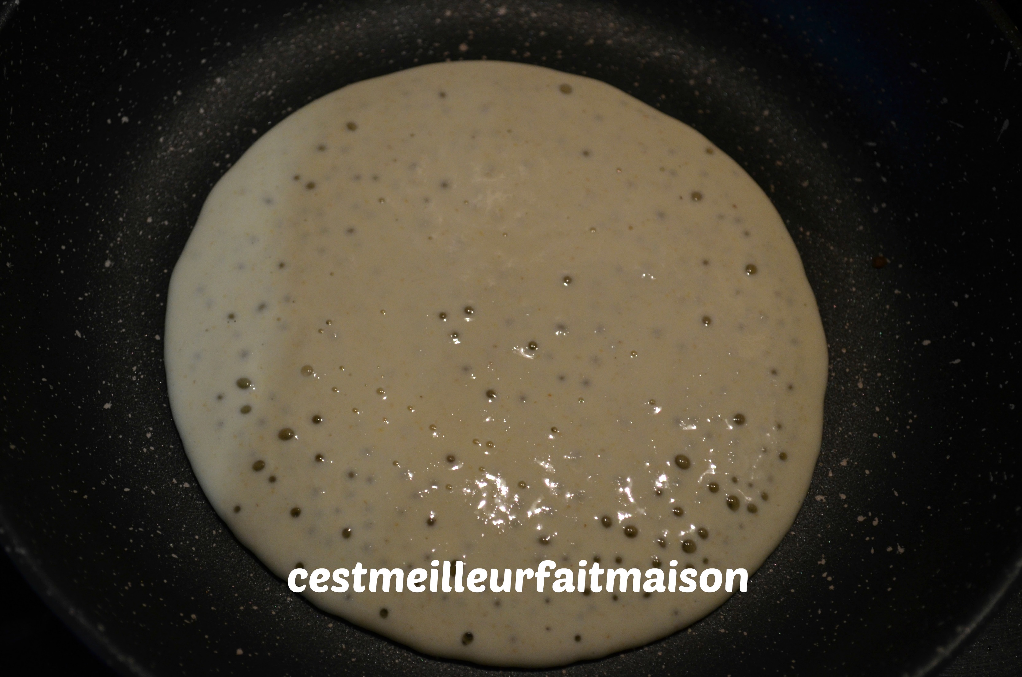 Pour changer des crêpes et des pancakes, j’ai tenté les mille trous. J’ai pris la recette chez La Cuisine de Bernard et j’ai adapté la recette au Thermomix.