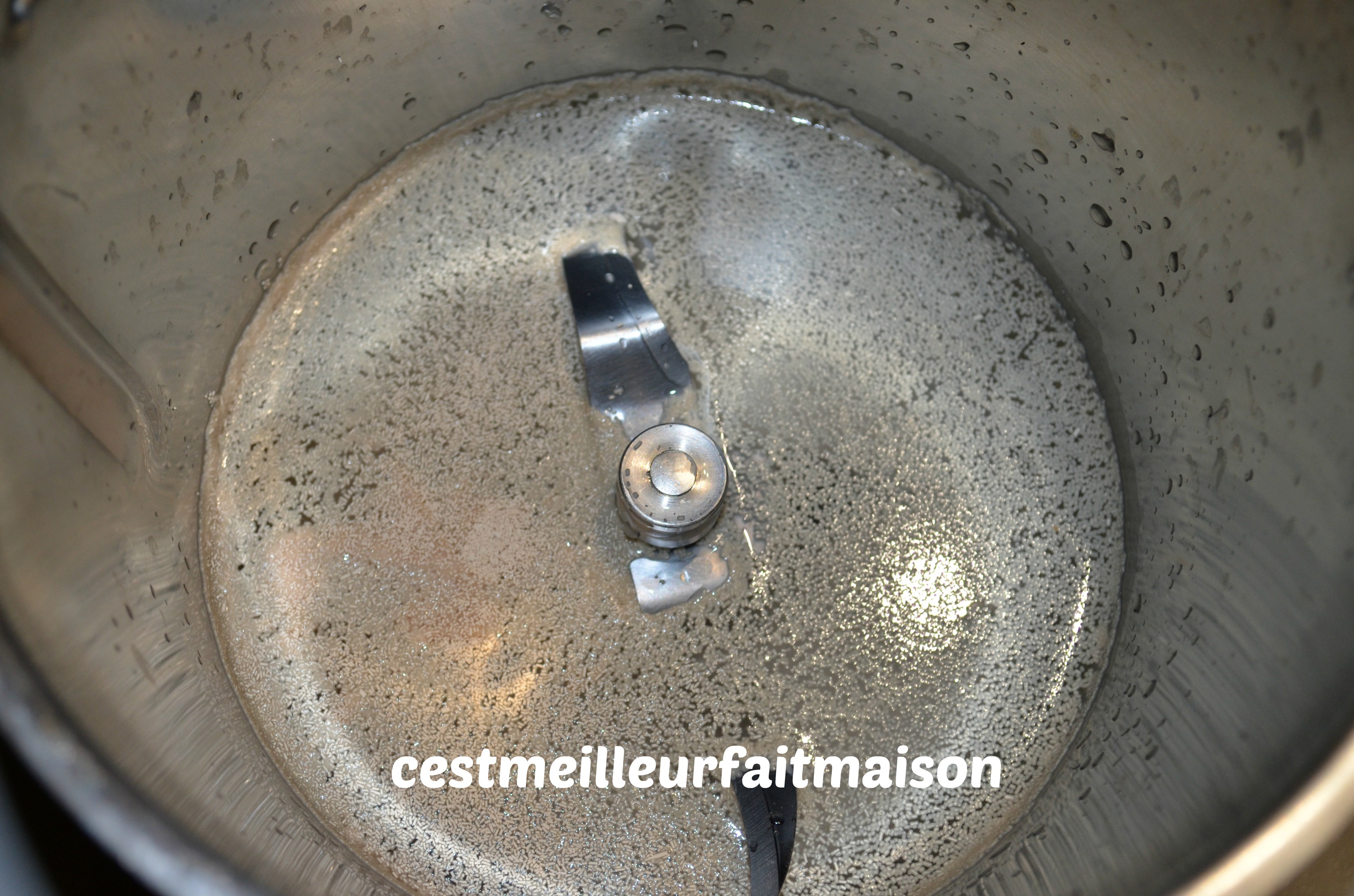 2- Laisser la pâte reposer pendant 15 min. Ajouter la levure chimique et mélanger 20 sec/Vit 6.