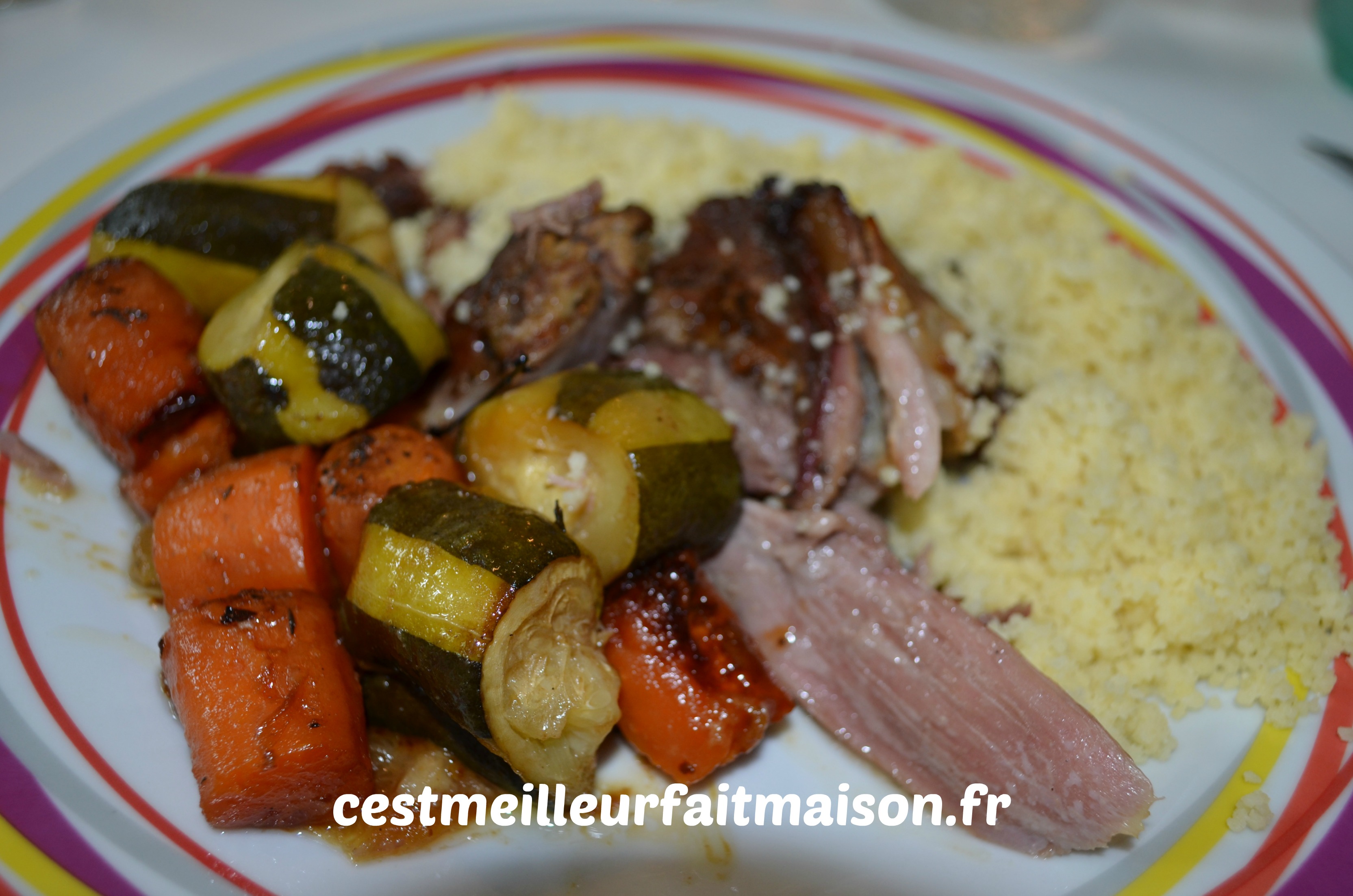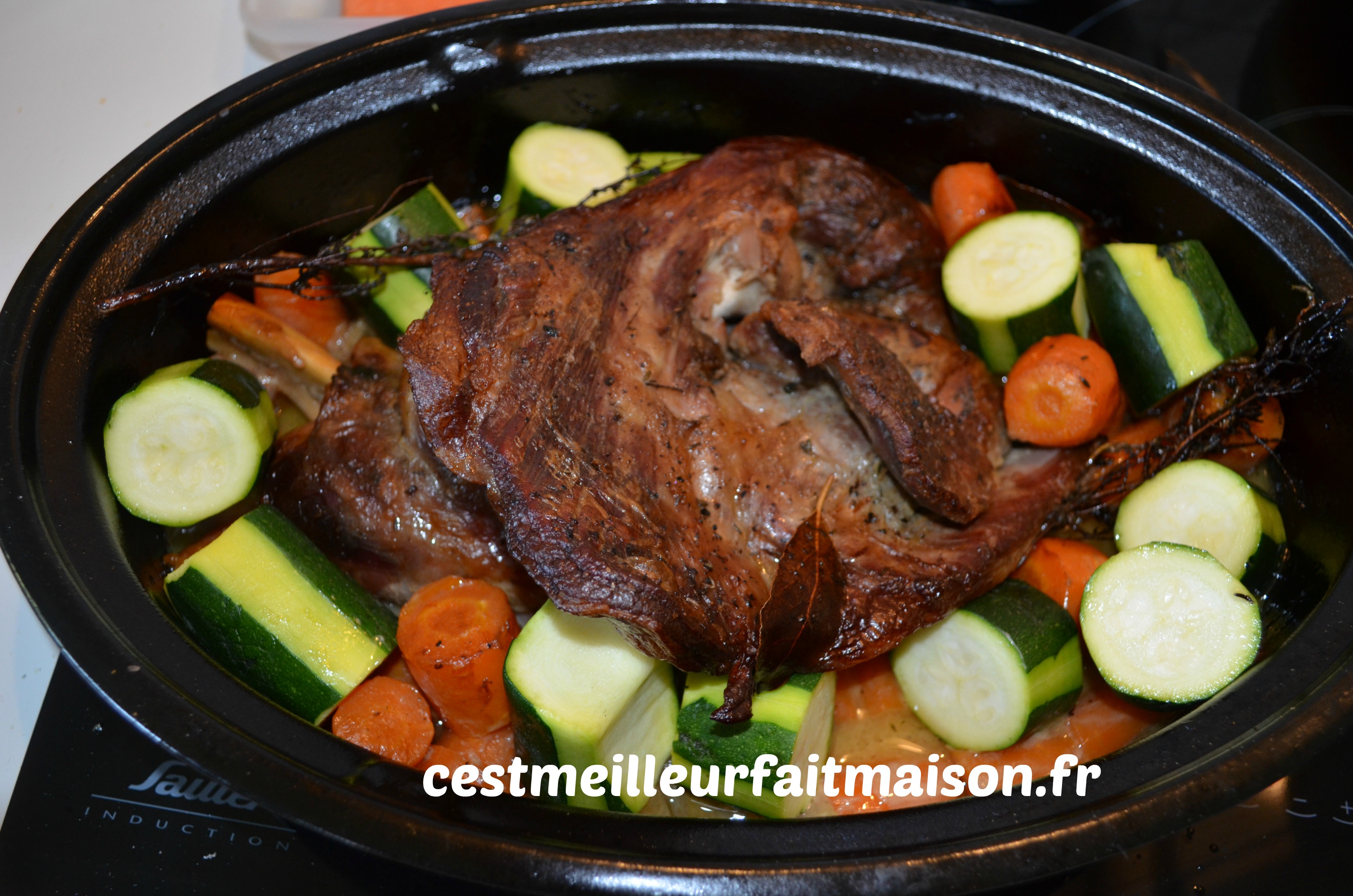 Super recette quand on n’a pas le temps de cuisiner. On met tout dans une cocotte et hop au four pour 5 heures. La viande est super fondante ainsi que les légumes. J’ai mis des carottes et des courgettes mais on peut mettre d’autres légumes comme des haricots verts ou des champignons. Pour un plat plus complet, on peut servir l’épaule avec de la semoule ou des pâtes.
