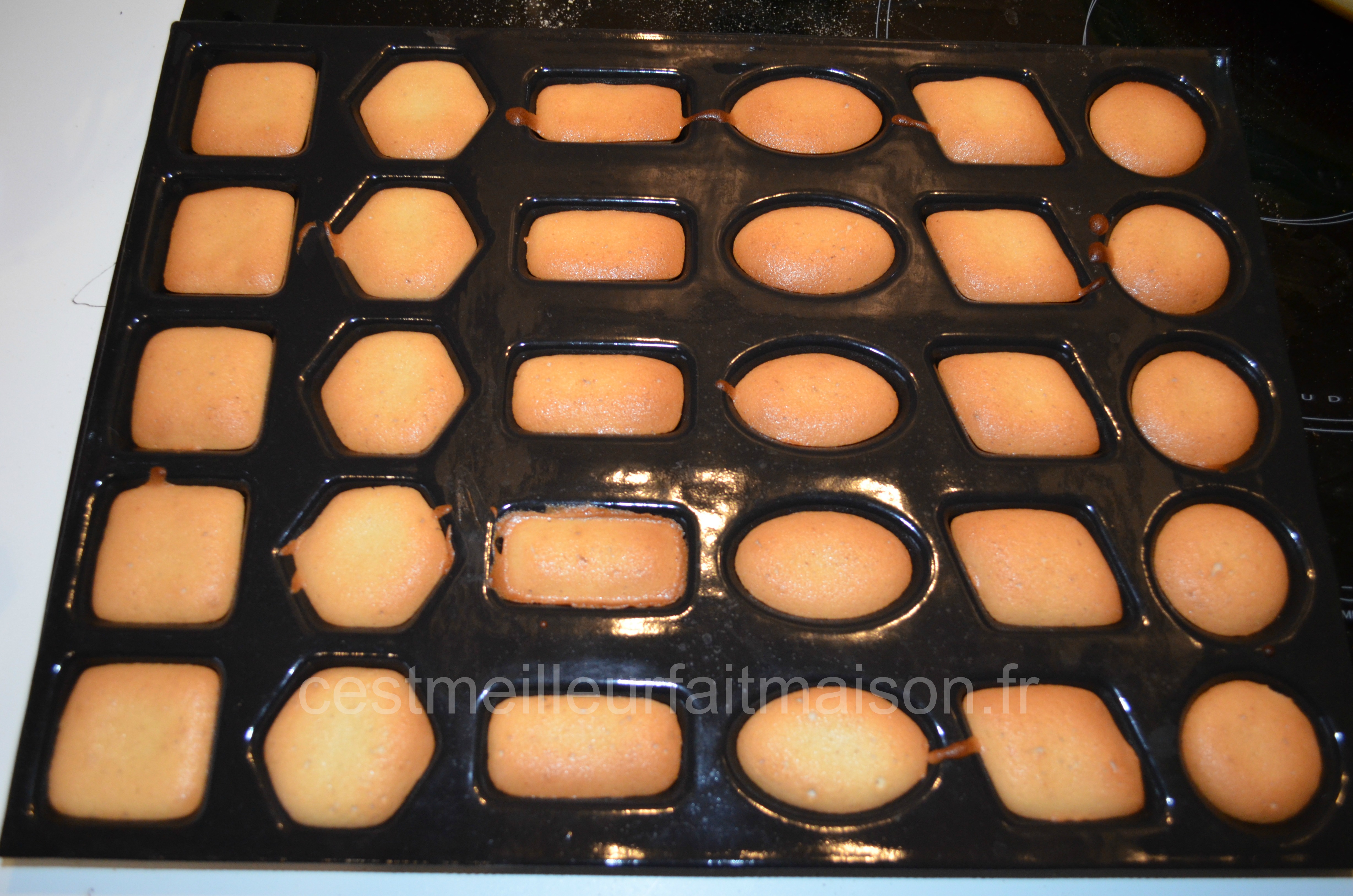4- Enfourner à 200°C pendant 12 min. Temps de cuisson à ajuster en fonction des empreintes que vous utilisez. Démouler et faire refroidir sur une grille.