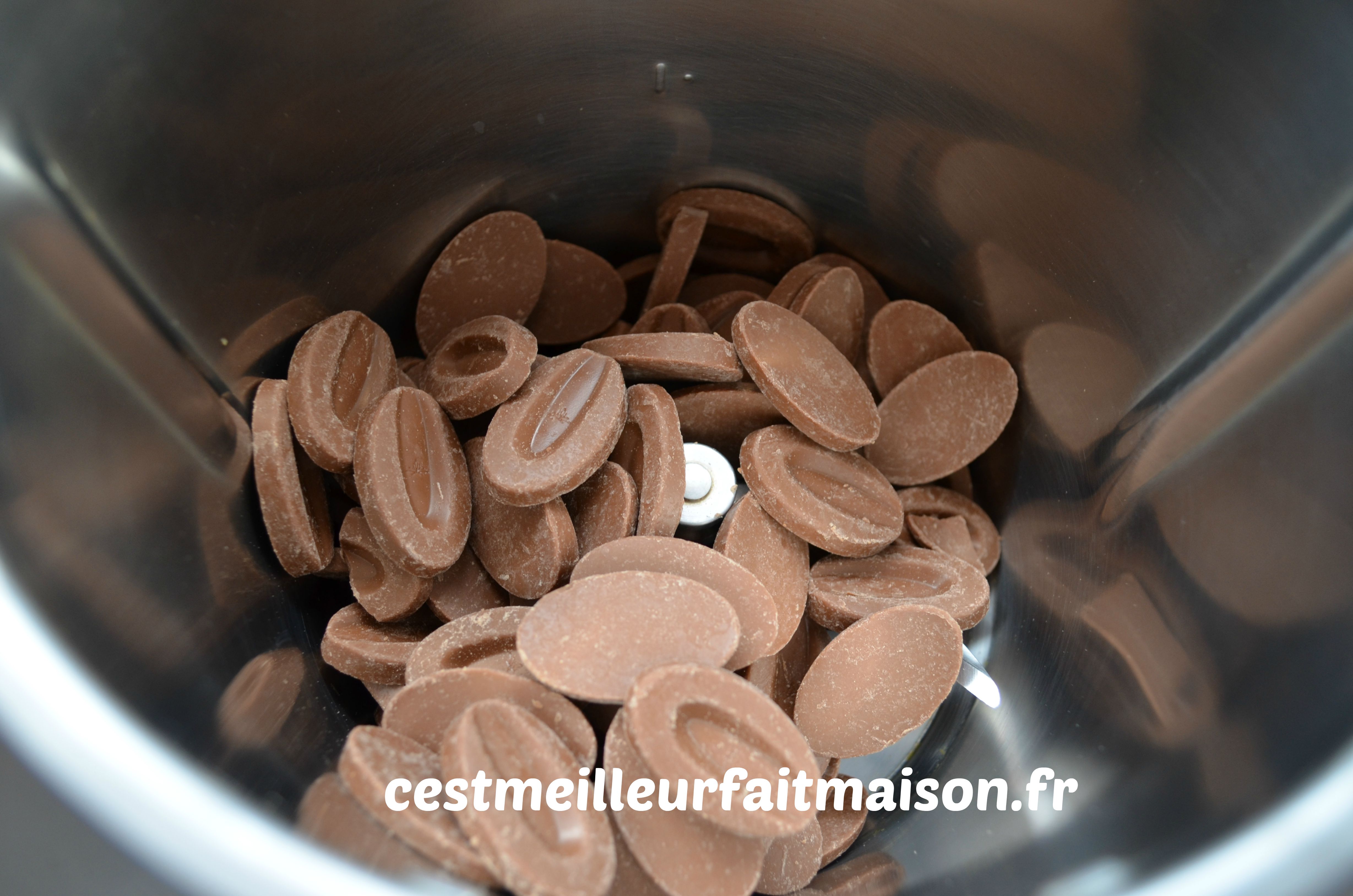 Mettre le chocolat dans le bol du Thermomix et mixer 7 sec/ Vit 7.