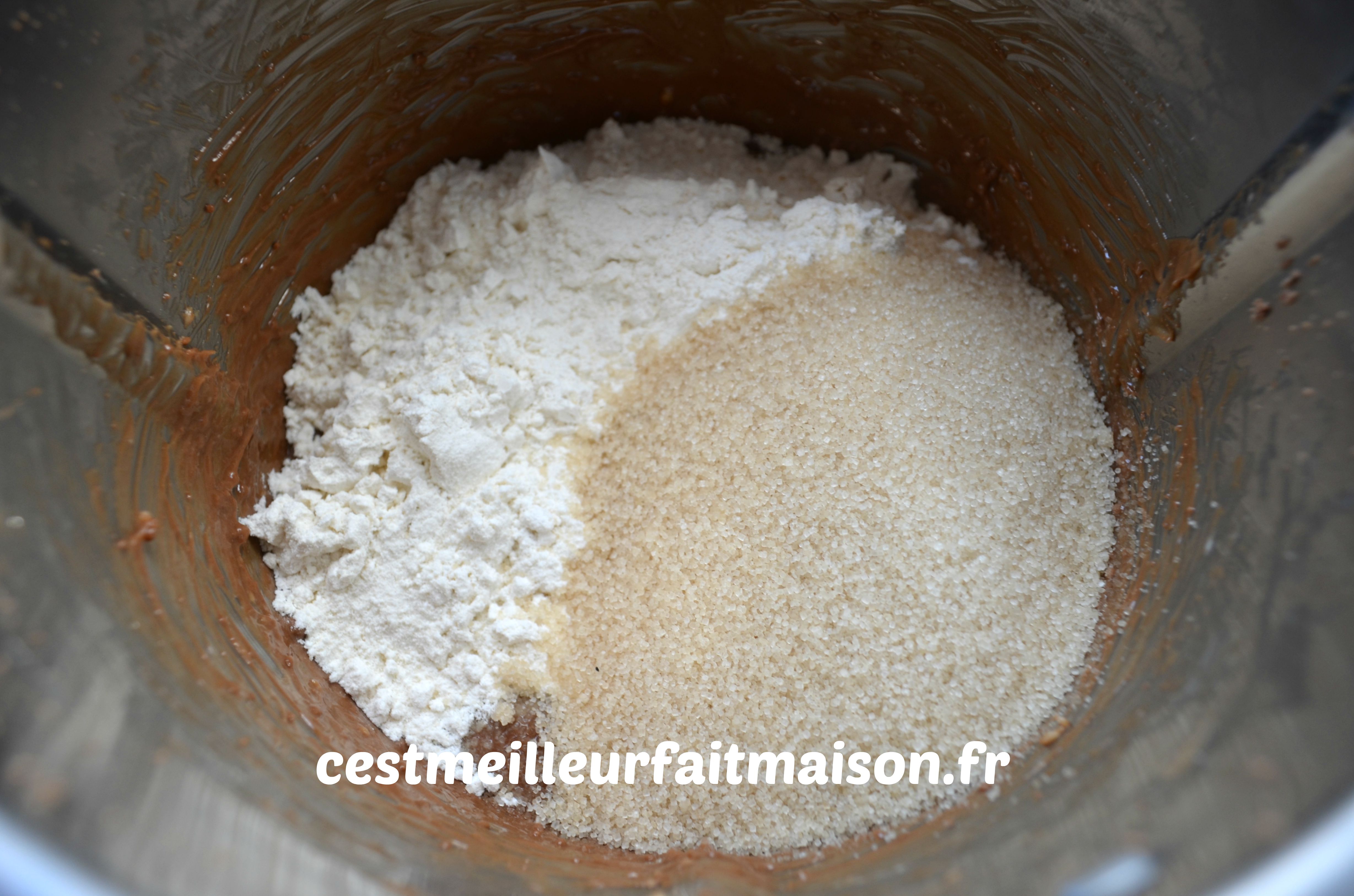 3- Ajouter la farine et le sucre et mixer 20 sec/ Vit 5.