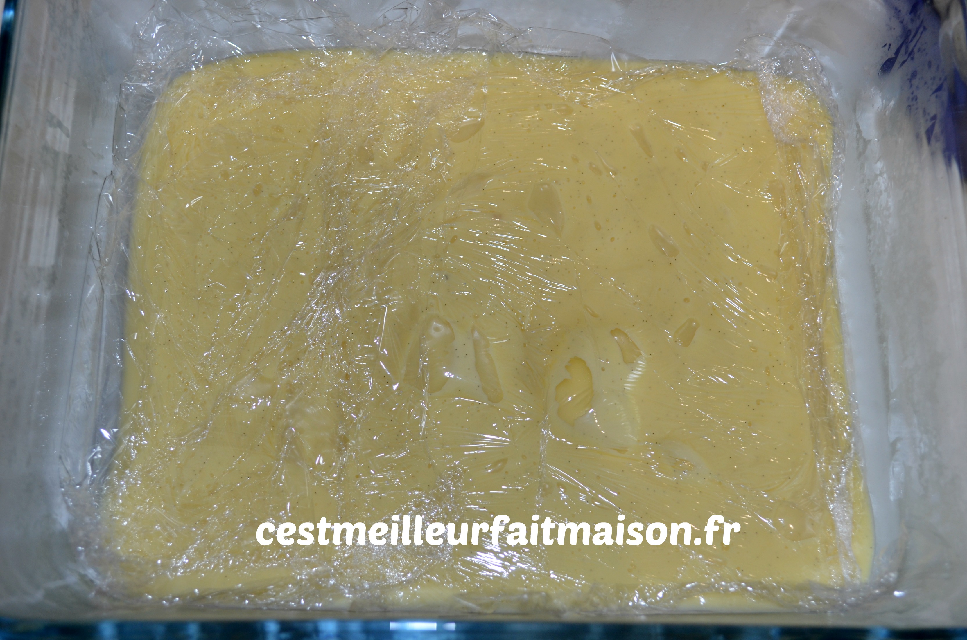 Verser la crème dans un récipient et filmer au contact. La laisser refroidir.