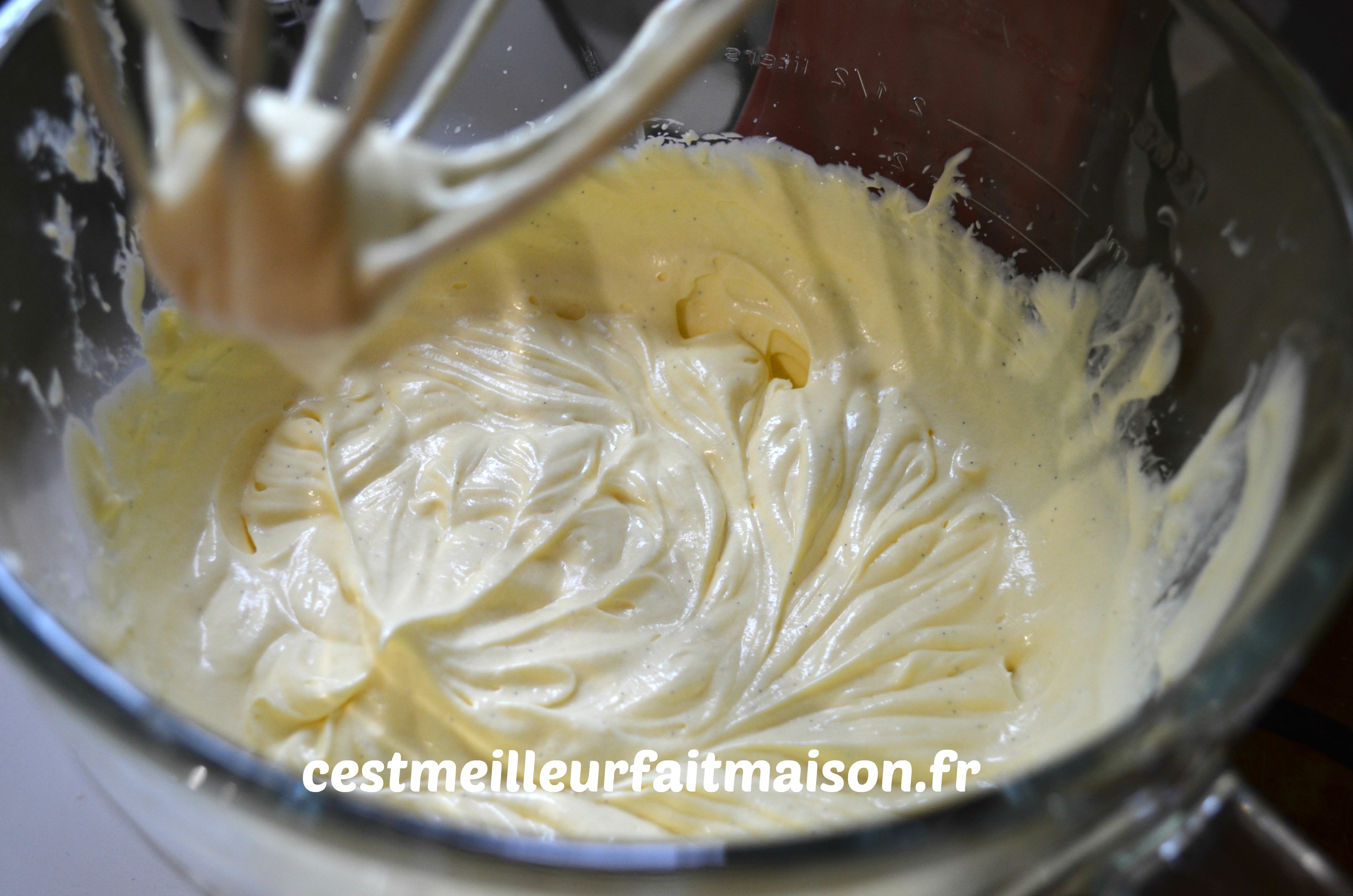 4- Finir la crème mousseline: il faut que le beurre et la crème pâtissière soit à la même température.