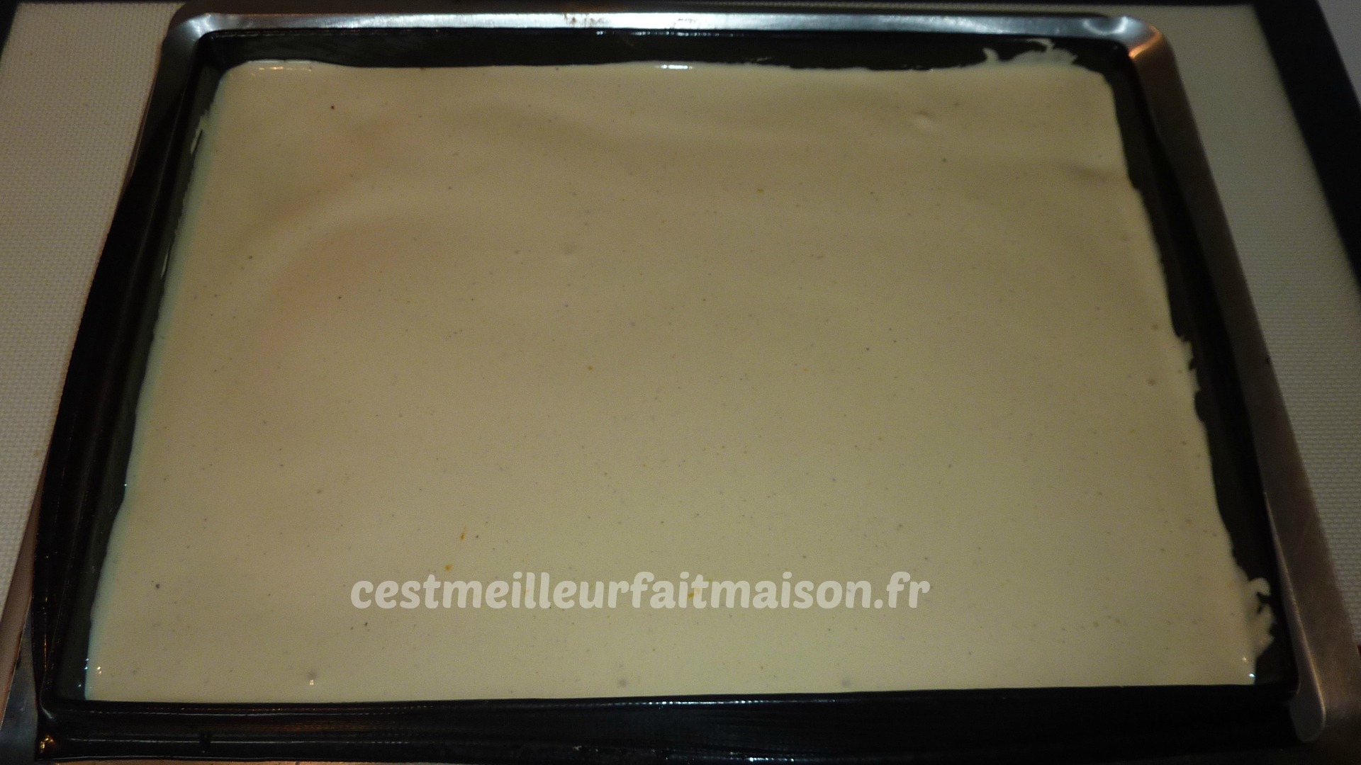 Verser dans le moule Flexipan plat et enfourner à 200°C pendant 8 min.