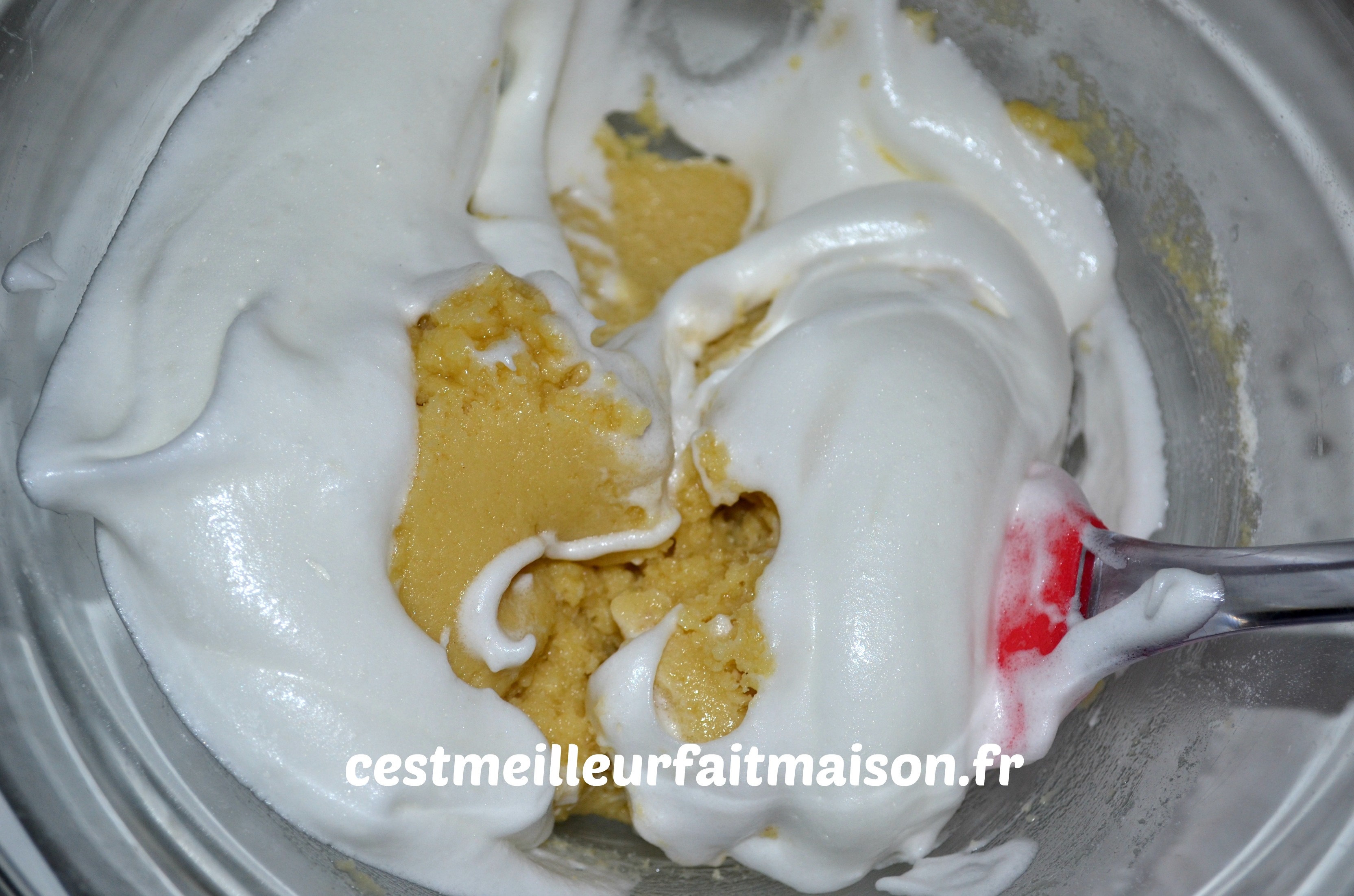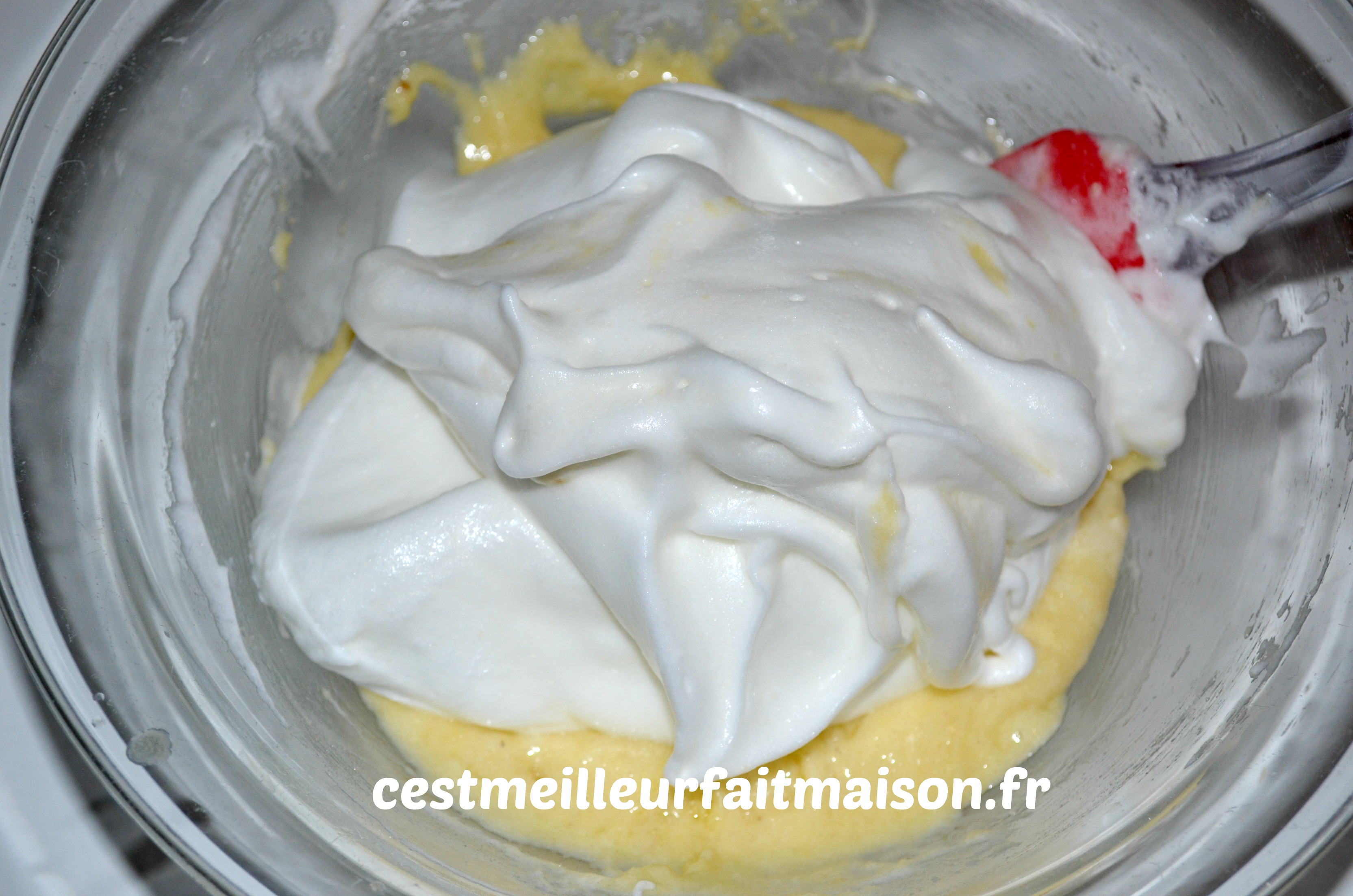 Ajouter le reste des blancs et mélanger délicatement cette fois.