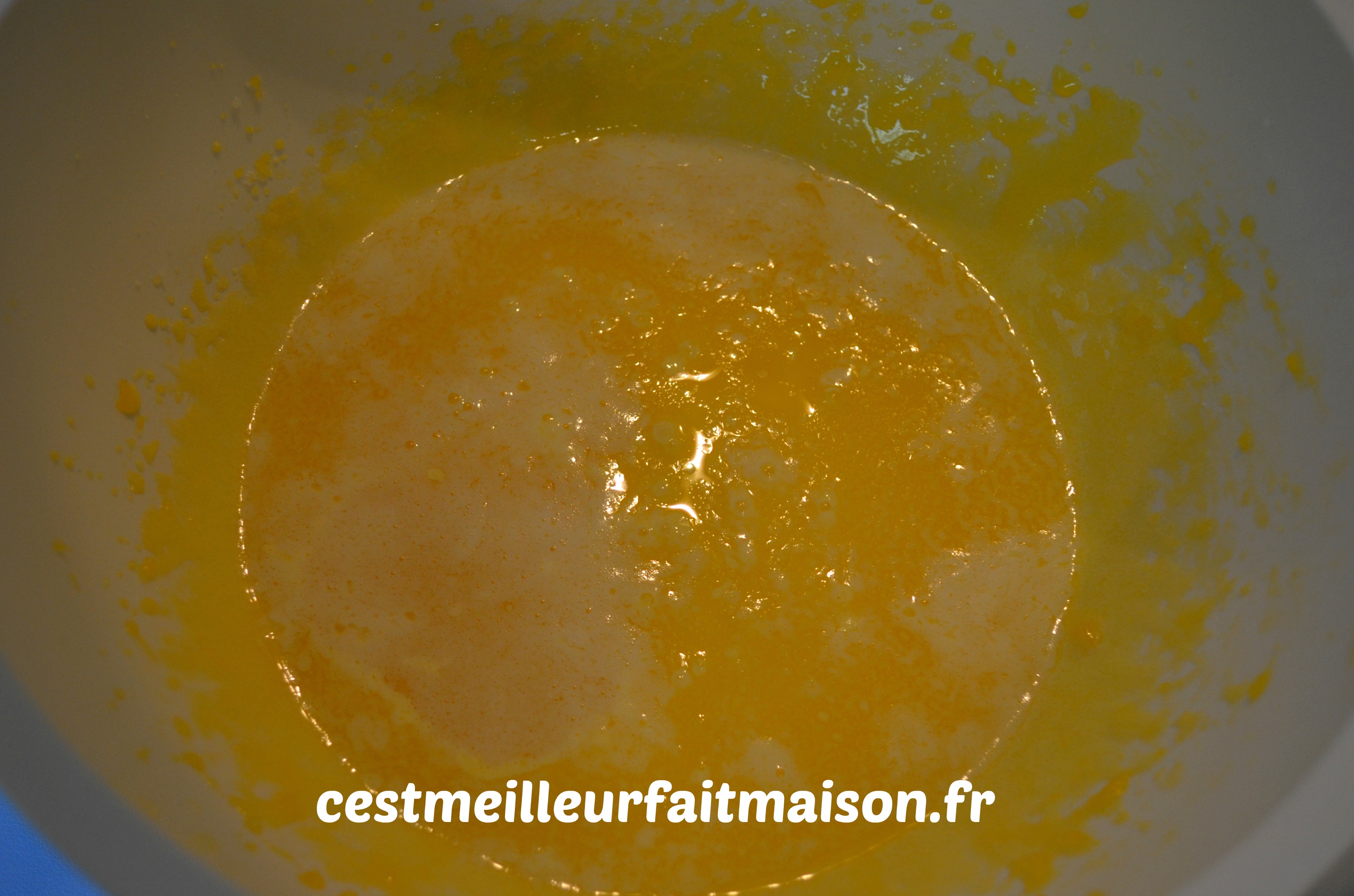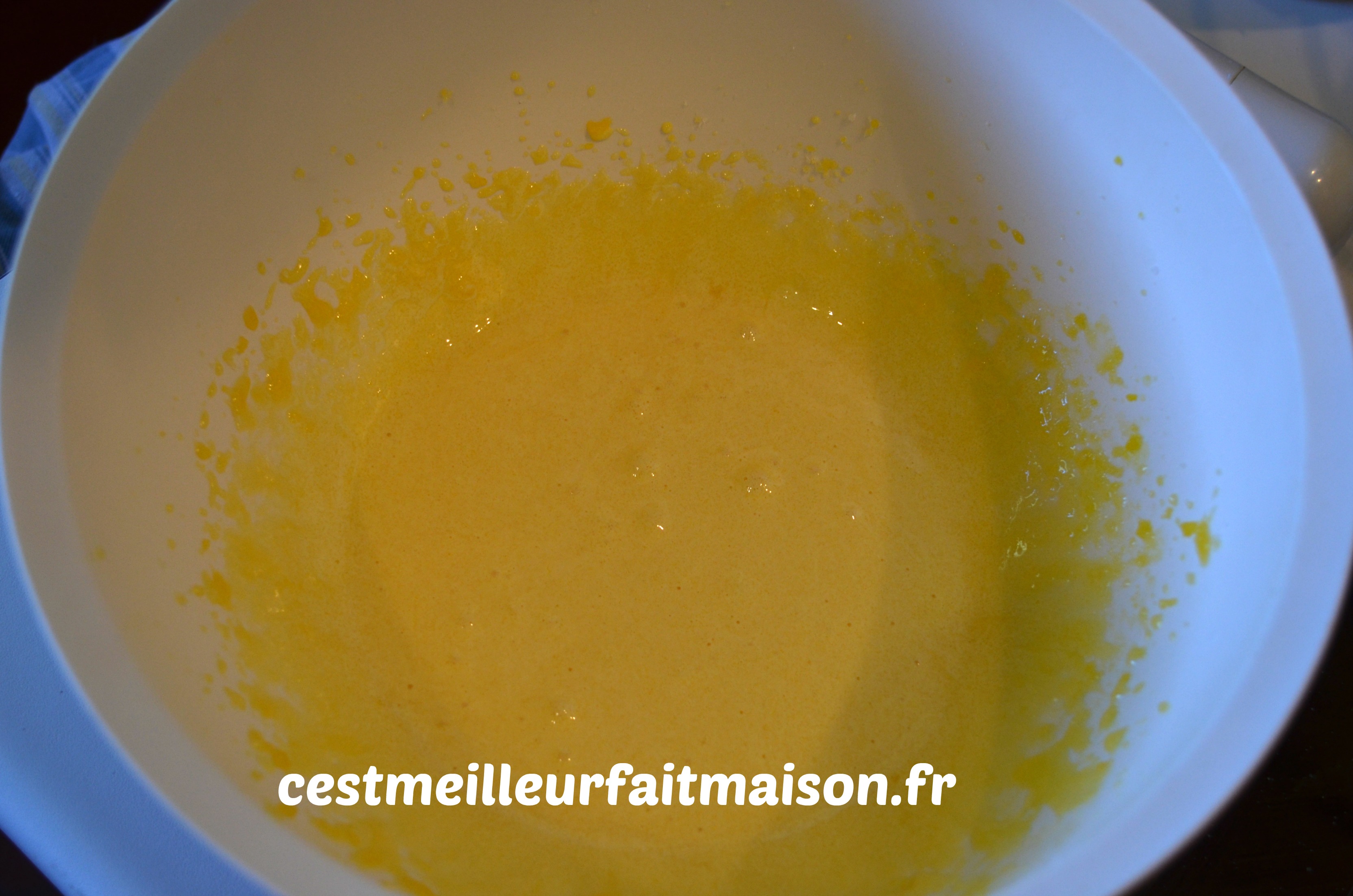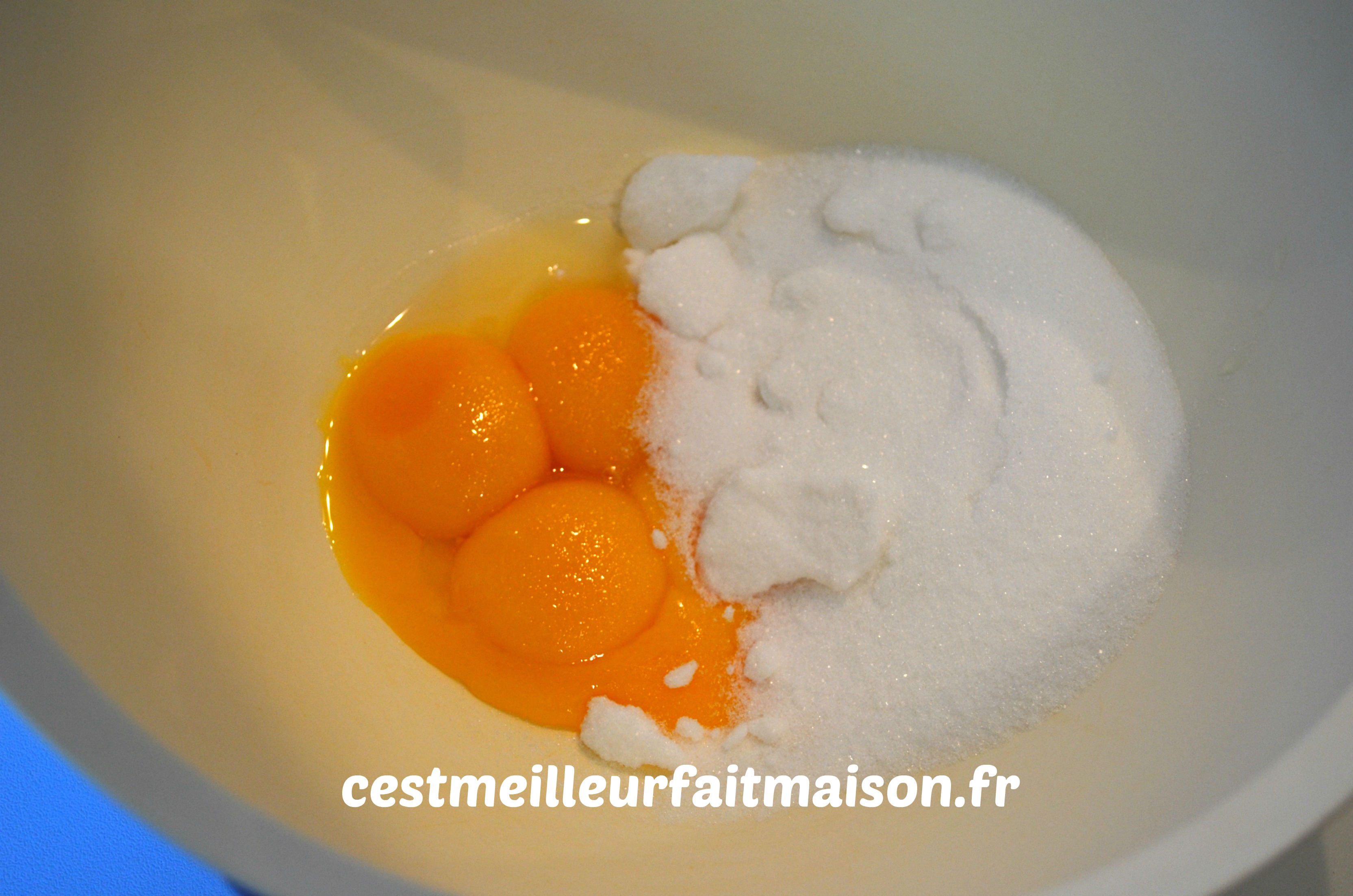 2- Séparer les blancs des jaunes. Fouetter les jaunes et le sucre.