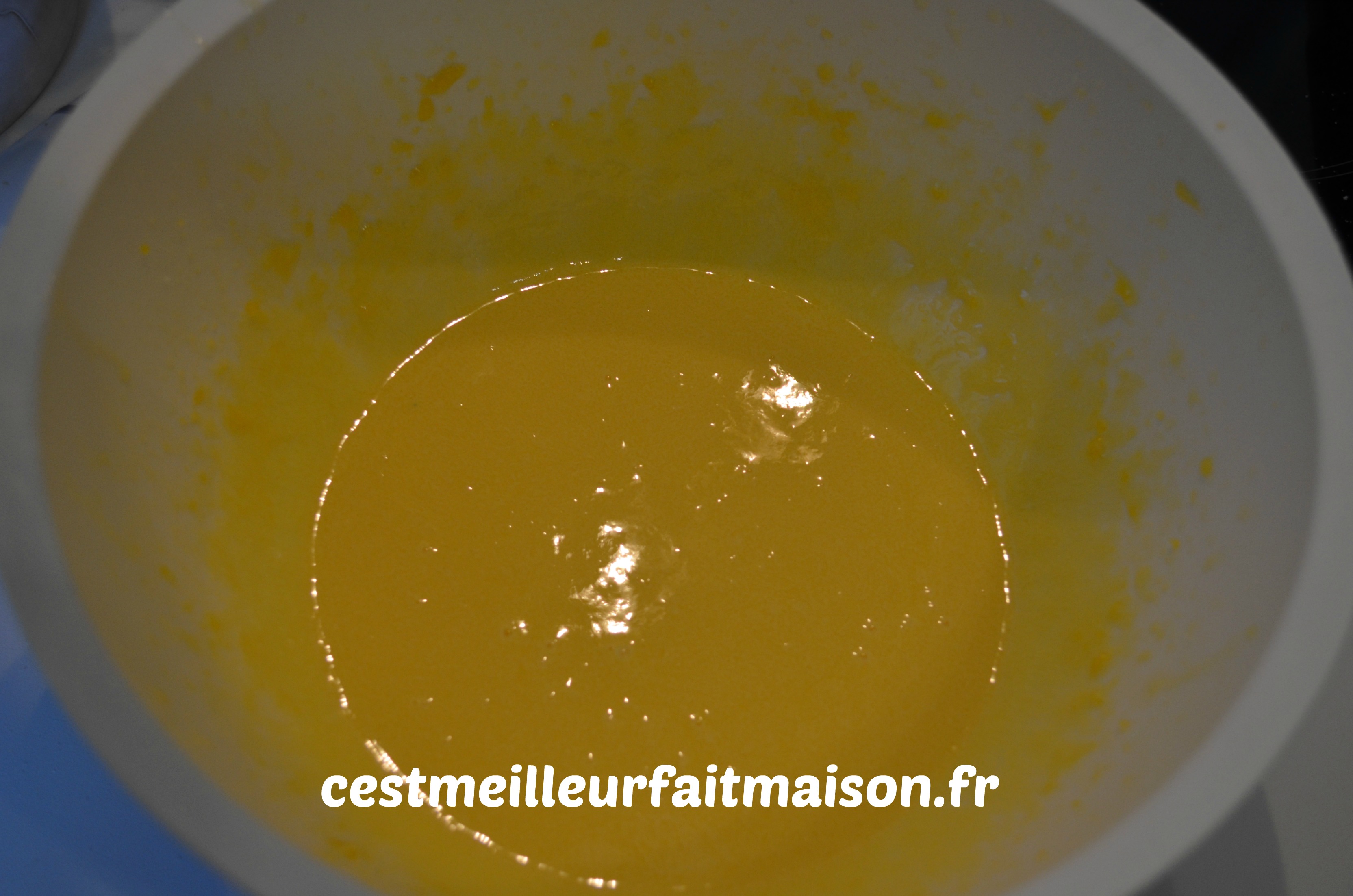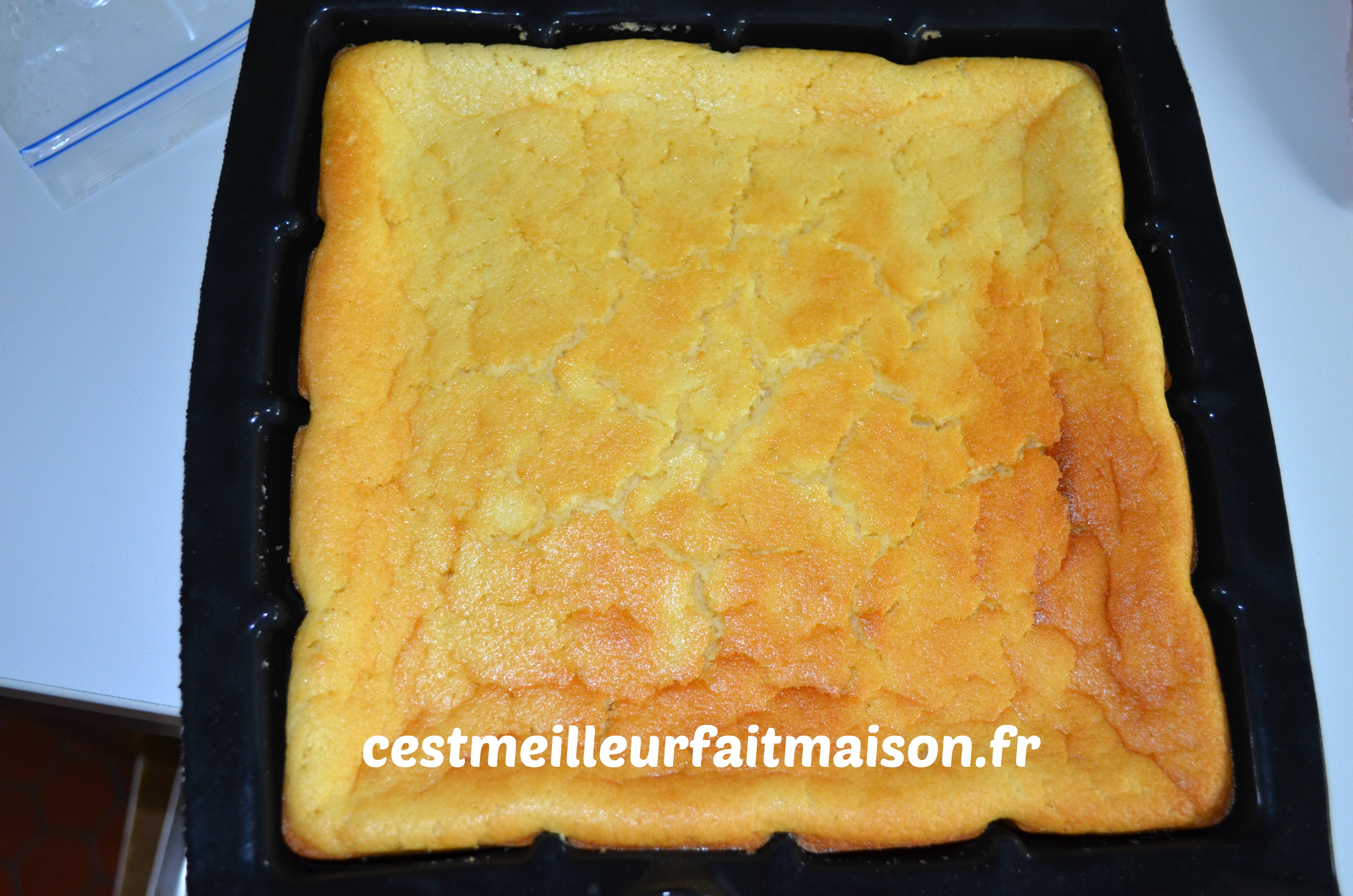 5- C’est très liquide mais tout est normal. Verser dans un moule, le moule tablette de Guy Demarle pour moi, et enfourner pour 50 min.
