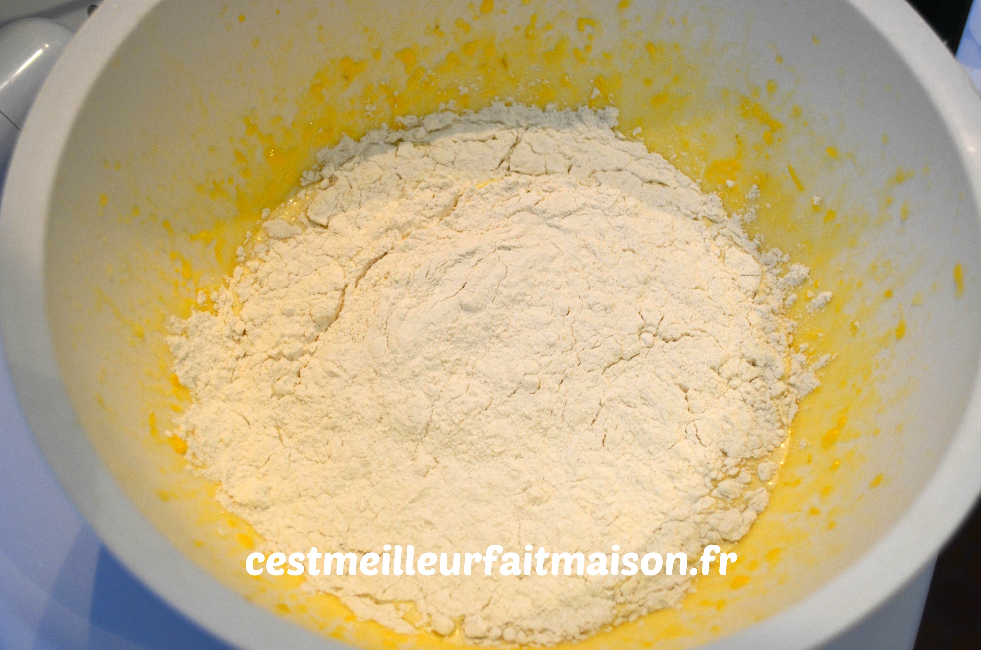 Ajouter les zestes, le jus de citron et la farine.
