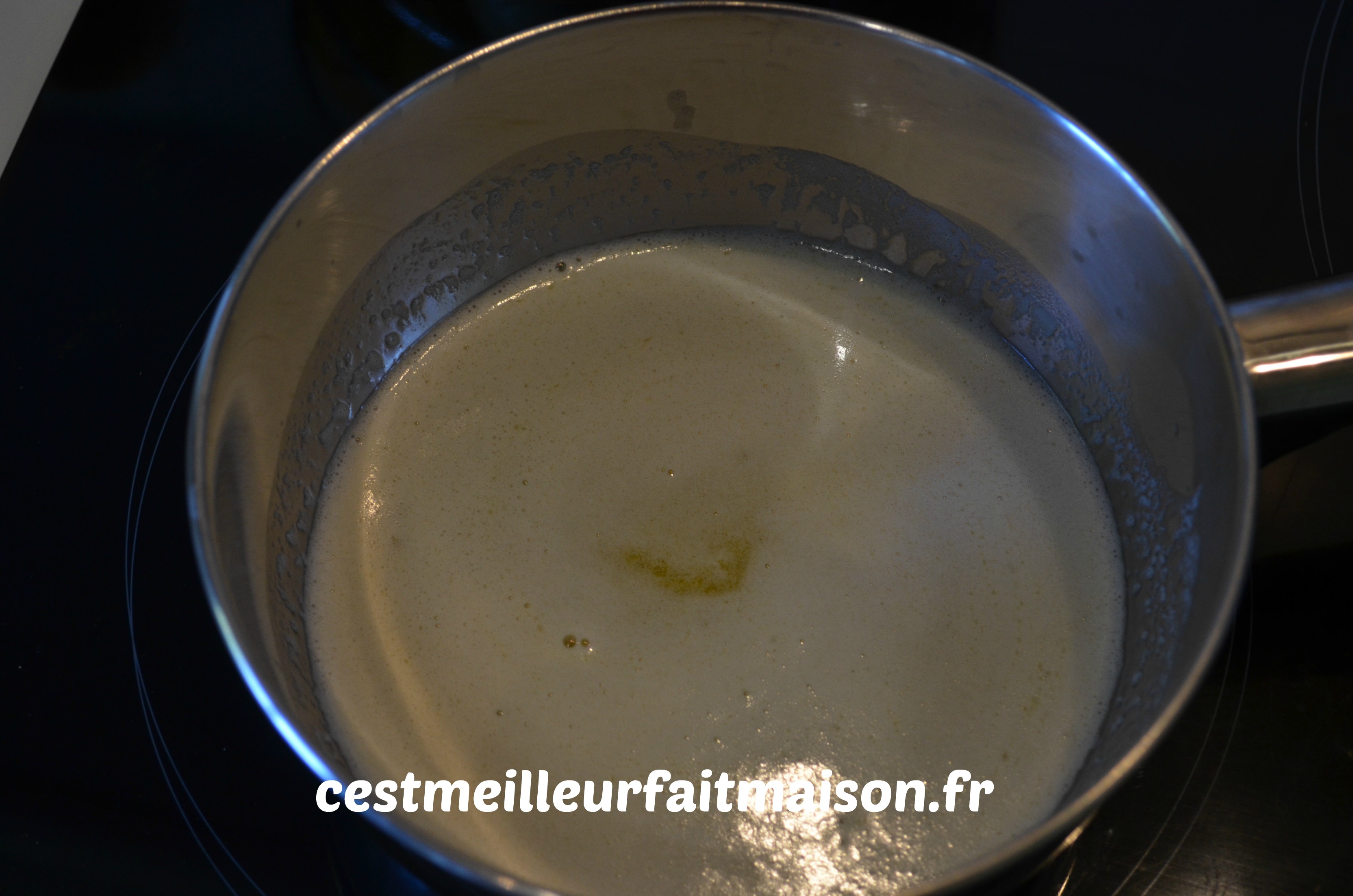 Et le lait. Bien mélanger.