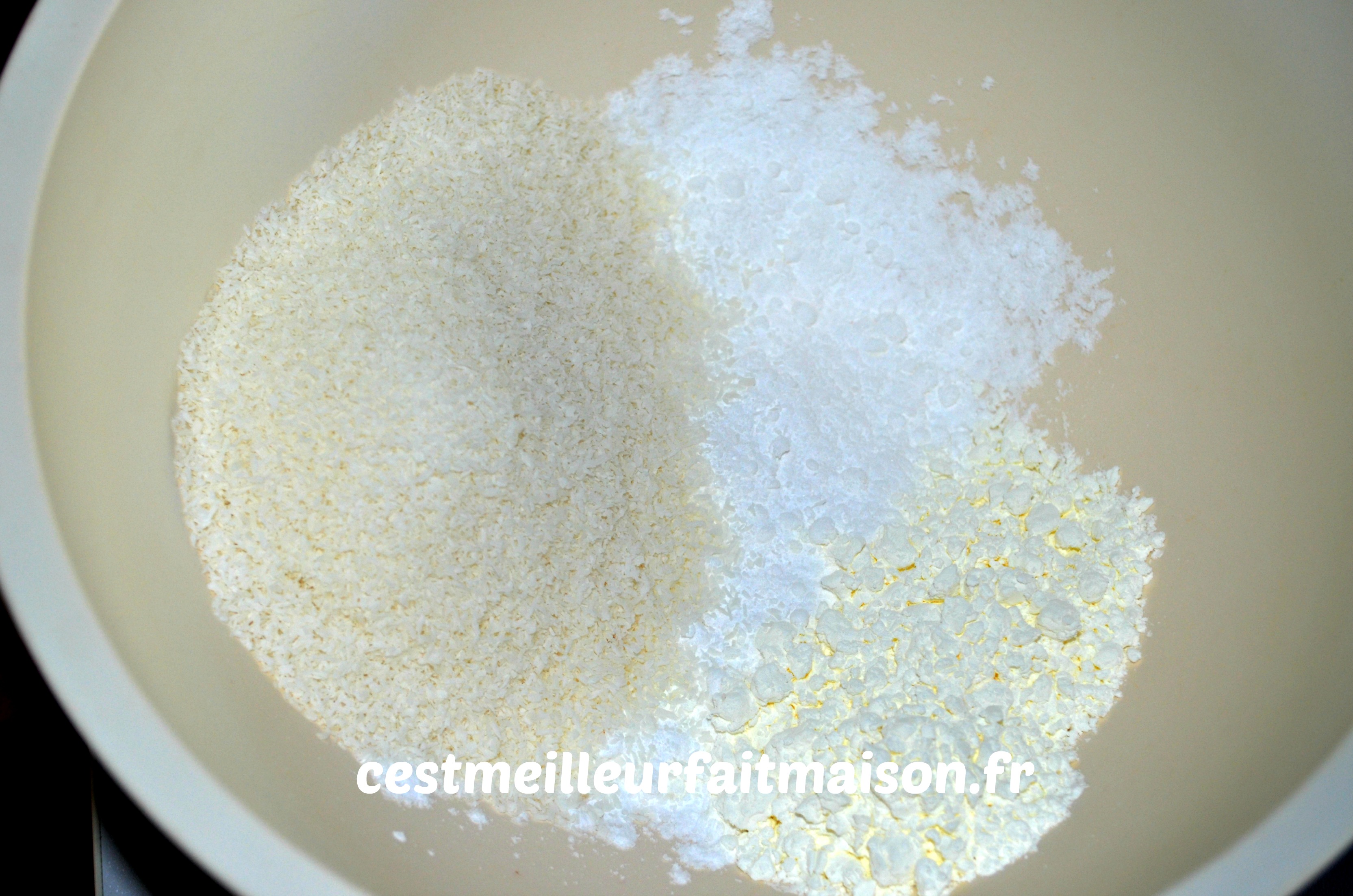 Dans un petit saladier mélanger le sucre glace, la Maïzéna et la noix de coco. Réserver.