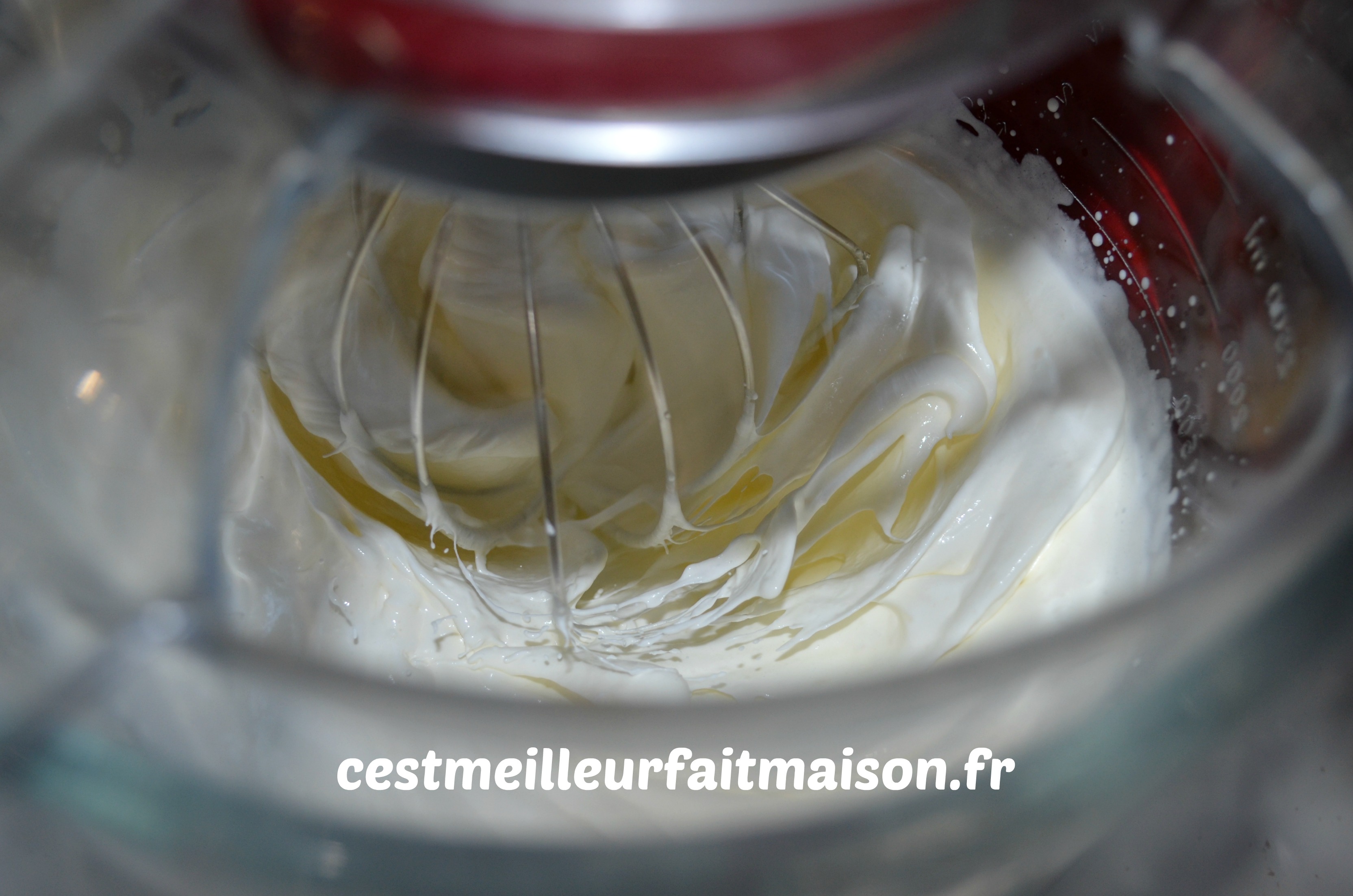 Essorer la gélatine et la faire fondre au bain marie. L’ajouter à la crème en train de monter.