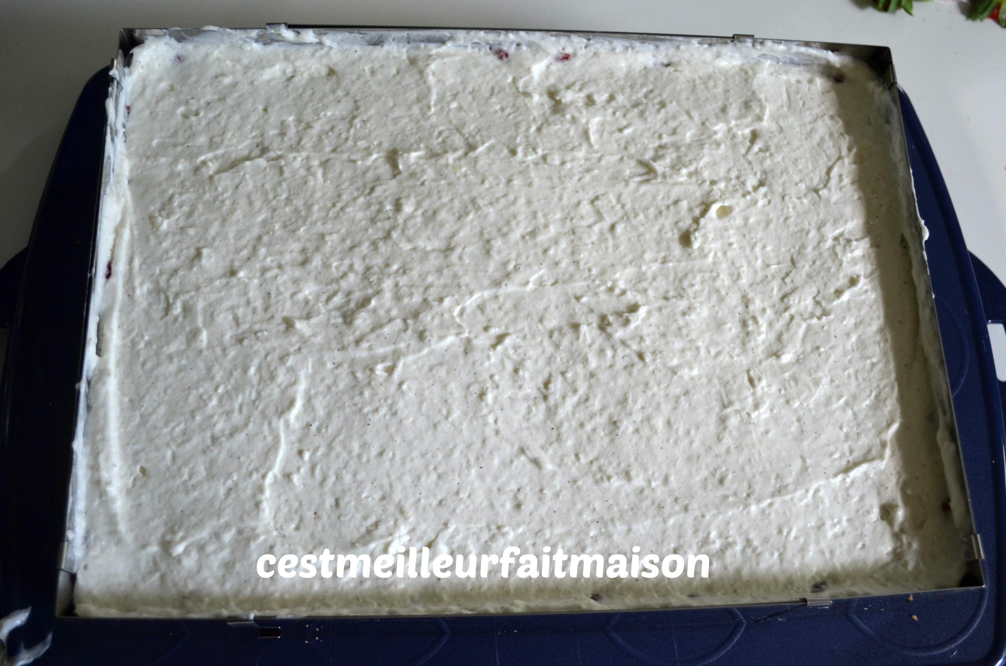 Recouvrir avec la crème, lisser et saupoudrer de noix de coco.